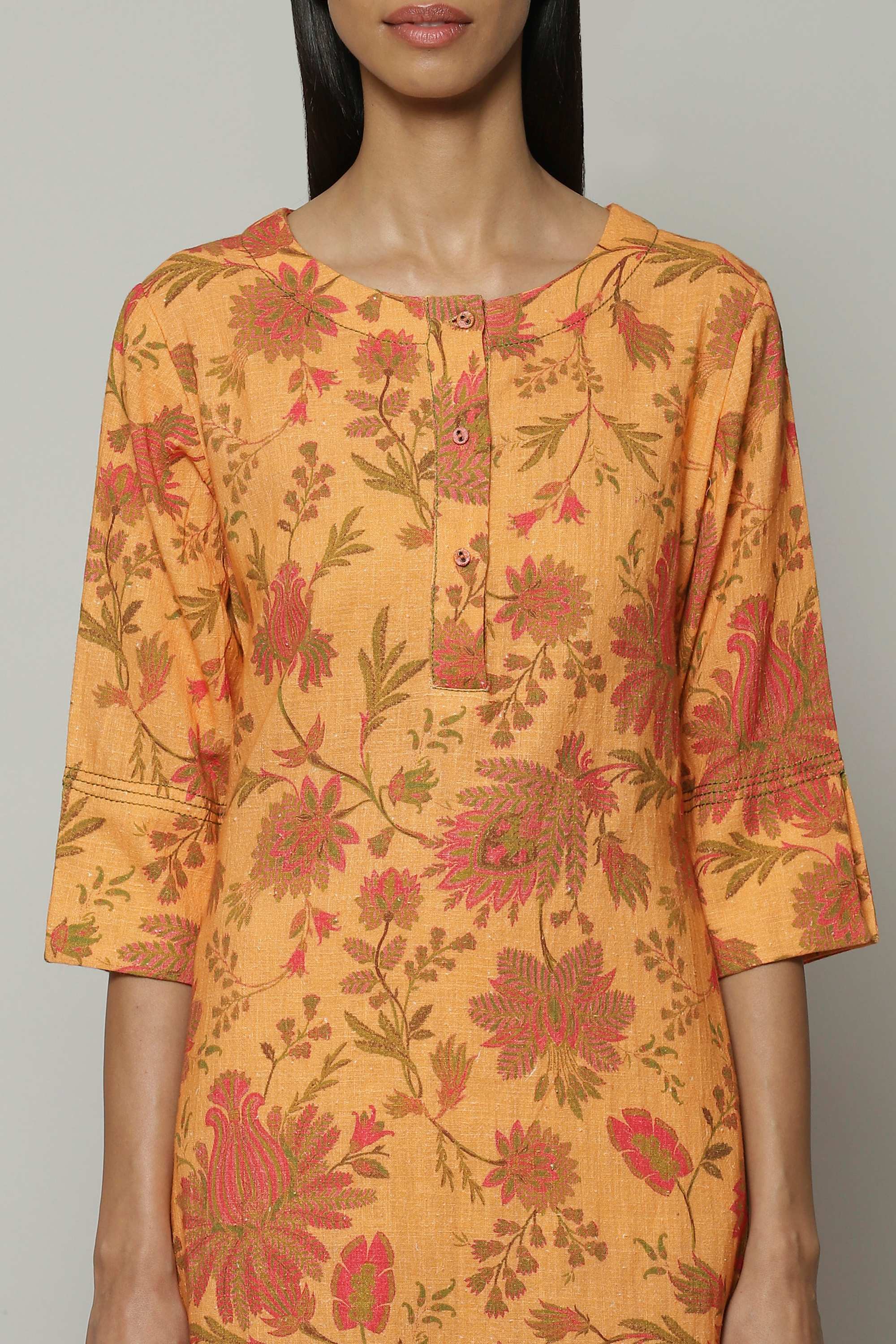 A floral kurta coloured in the hues of an early sunset. Printed Chintz motifs adorn the rustic cotton fabric. Keeps you comfortable from dusk to dawn.