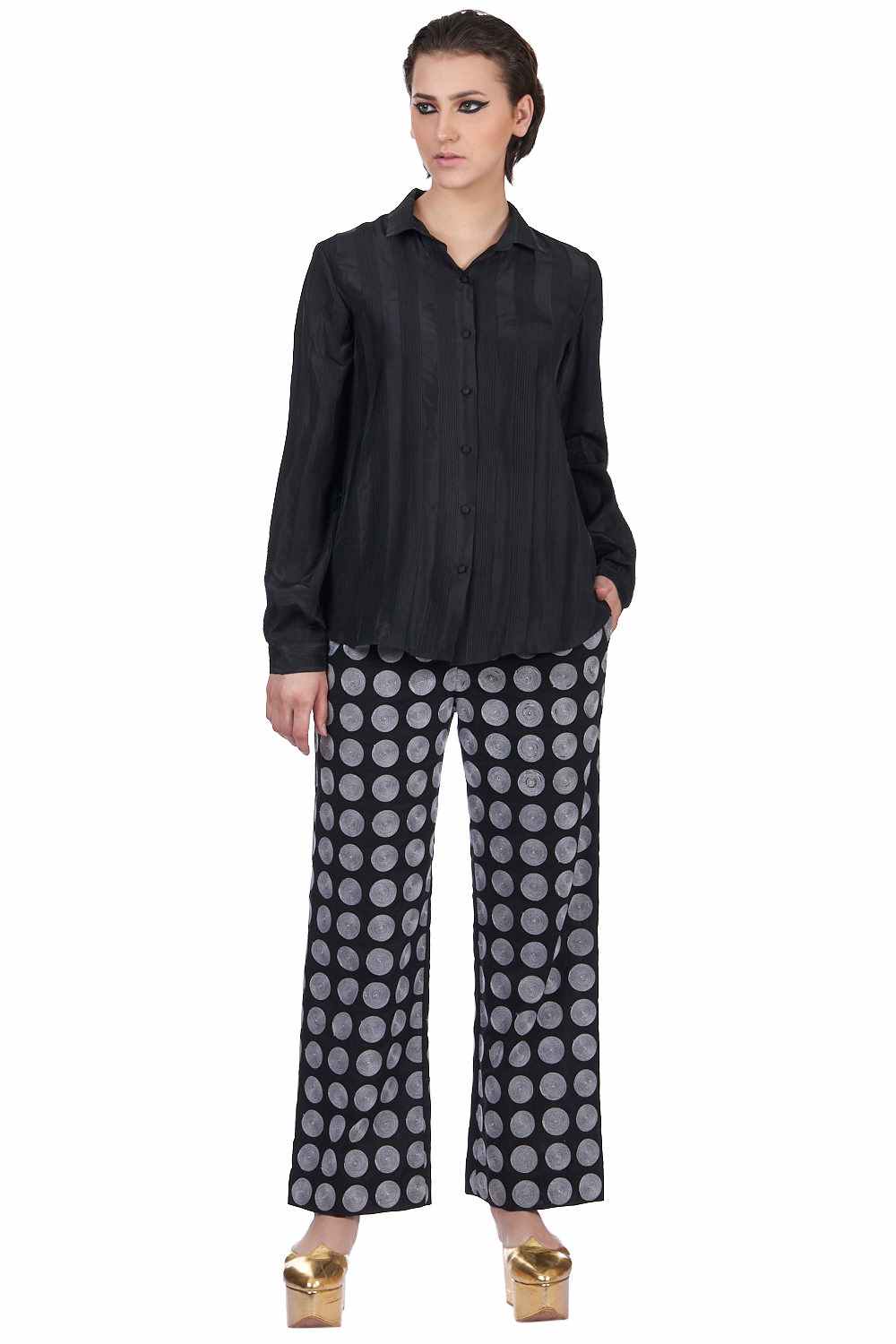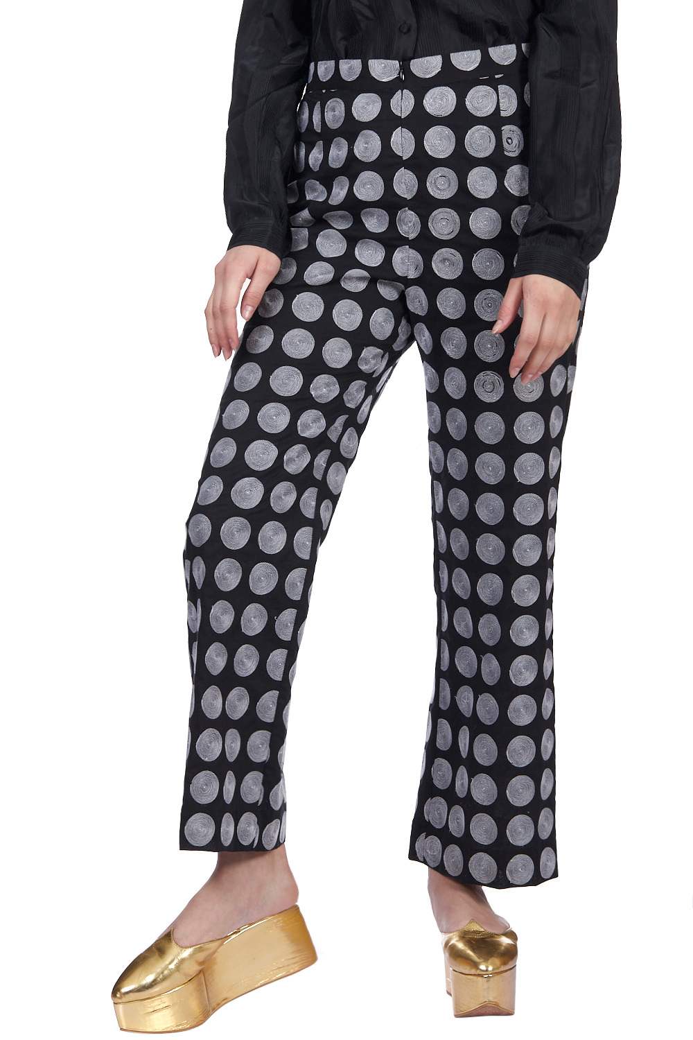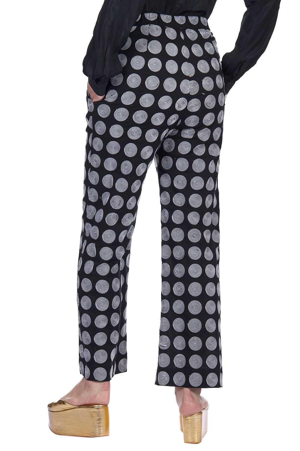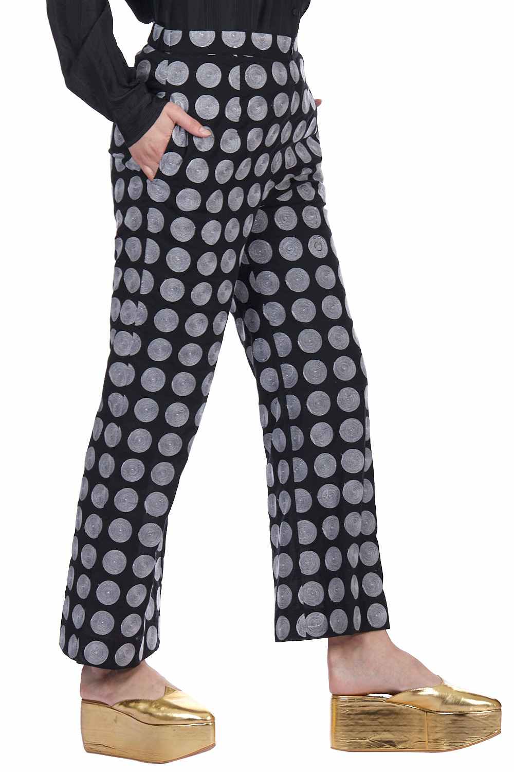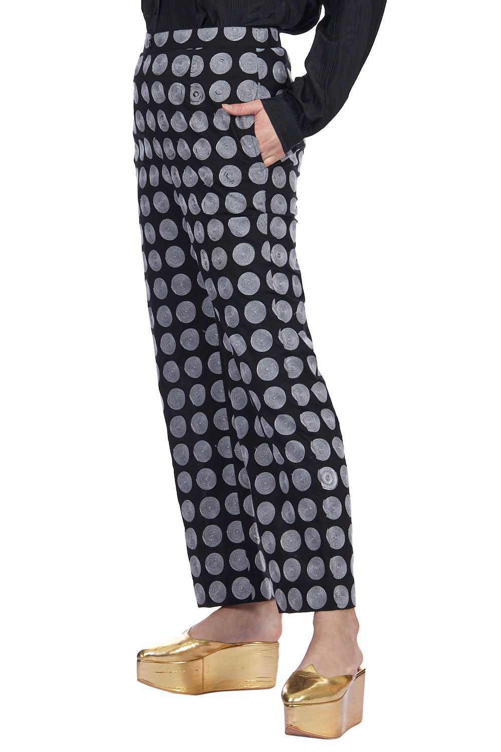 Straight Pants. Crafted In Exclusively Embroidered Chanderi Silk. Features All Embroidered Circle Pattern With Our Signature Easy Fit. Adjustable Waistbands, Lightly Elasticated At The Back, With Additional Concealed Drawstrings In The Front For A Perfect Fit. Garments Are Made From Fabric That Is Washed And Pre-Shrunk To Give A Superior Hand.