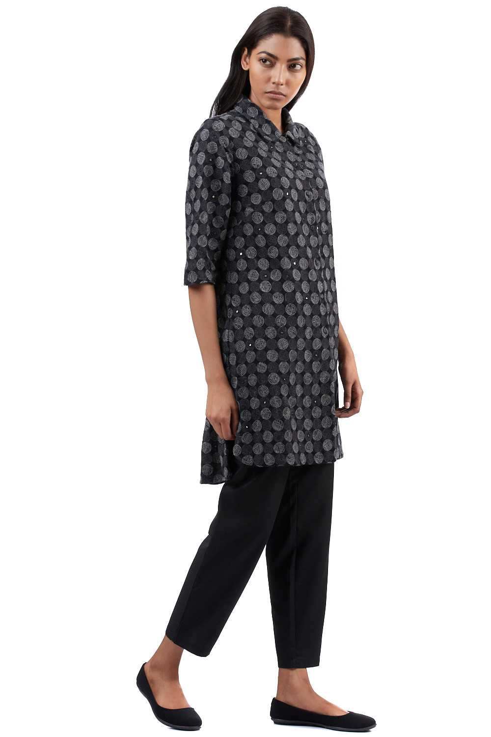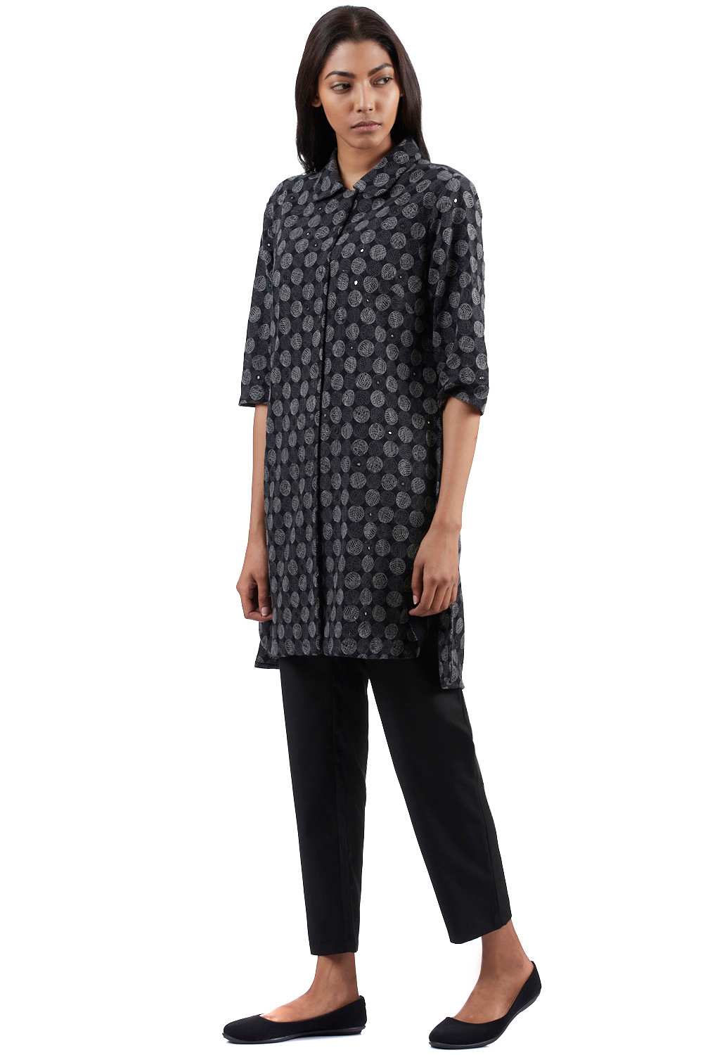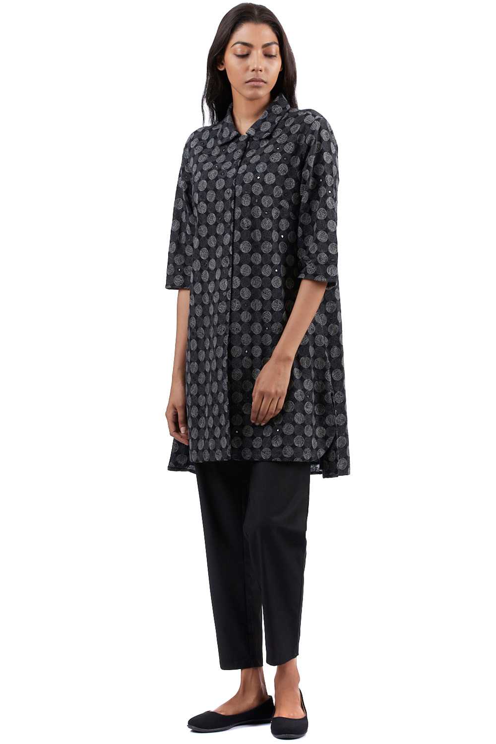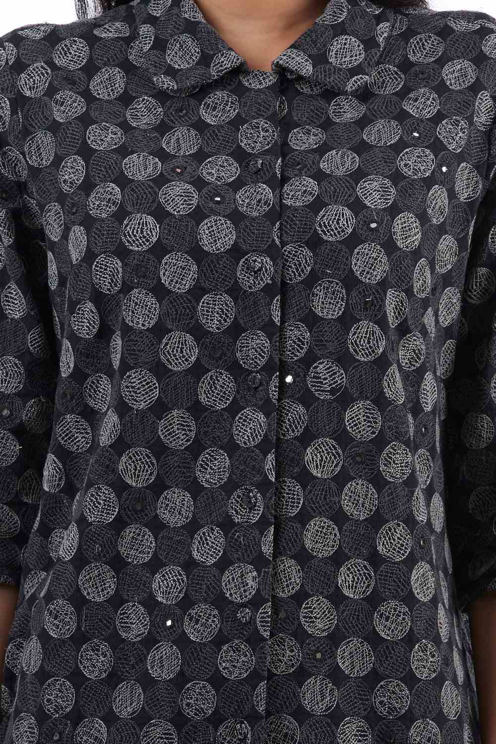 Regular Fit Tunic. Crafted In Exclusively Embroidered Cotton. Features All Over Embroidered Circle Pattern With Mirrorwork. Garments Are Made From Fabric That Is Washed And Pre-Shrunk To Give A Superior Hand.