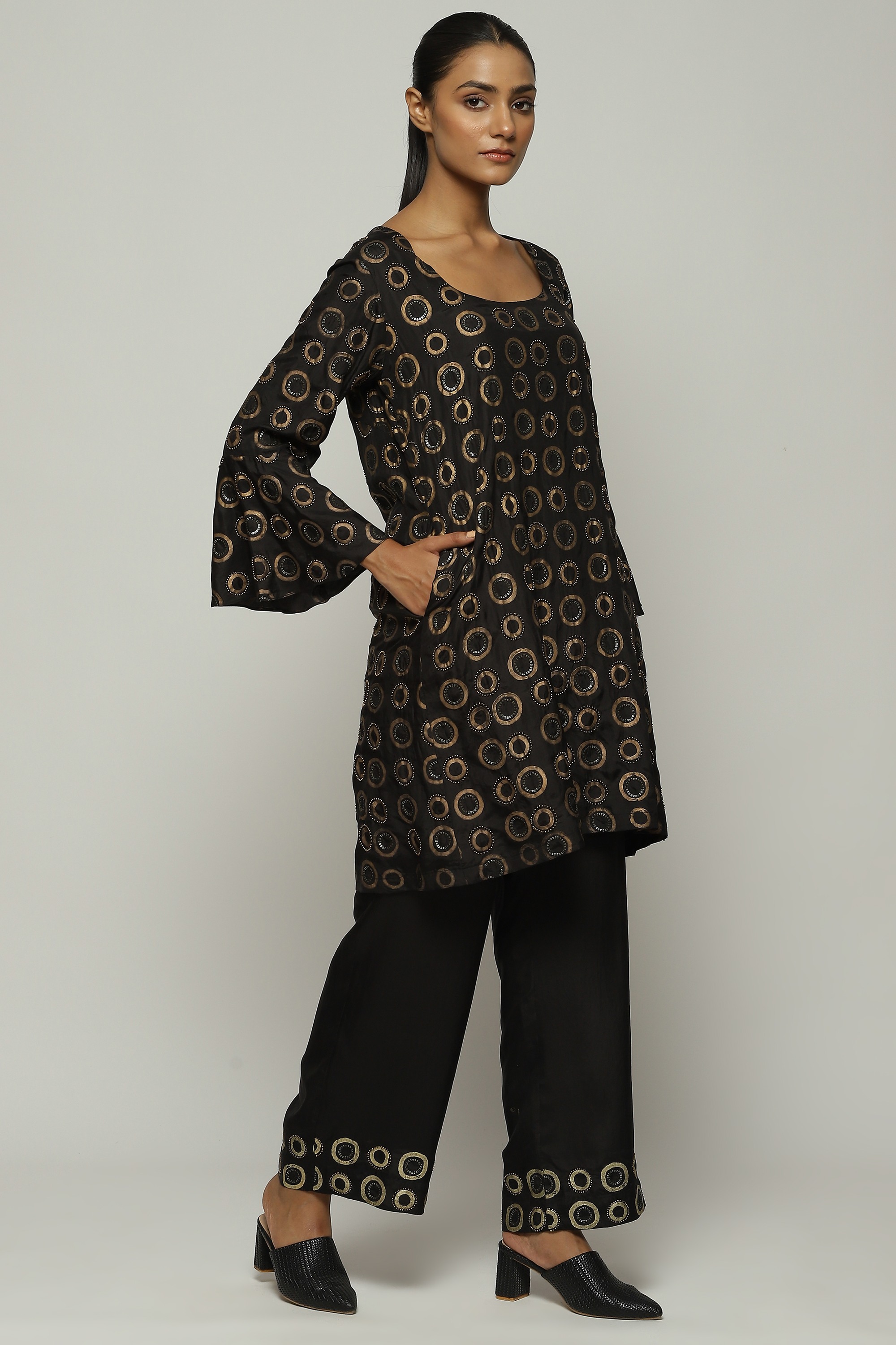 CIRCLE PRINT & BEADS SEQUINS KURTA