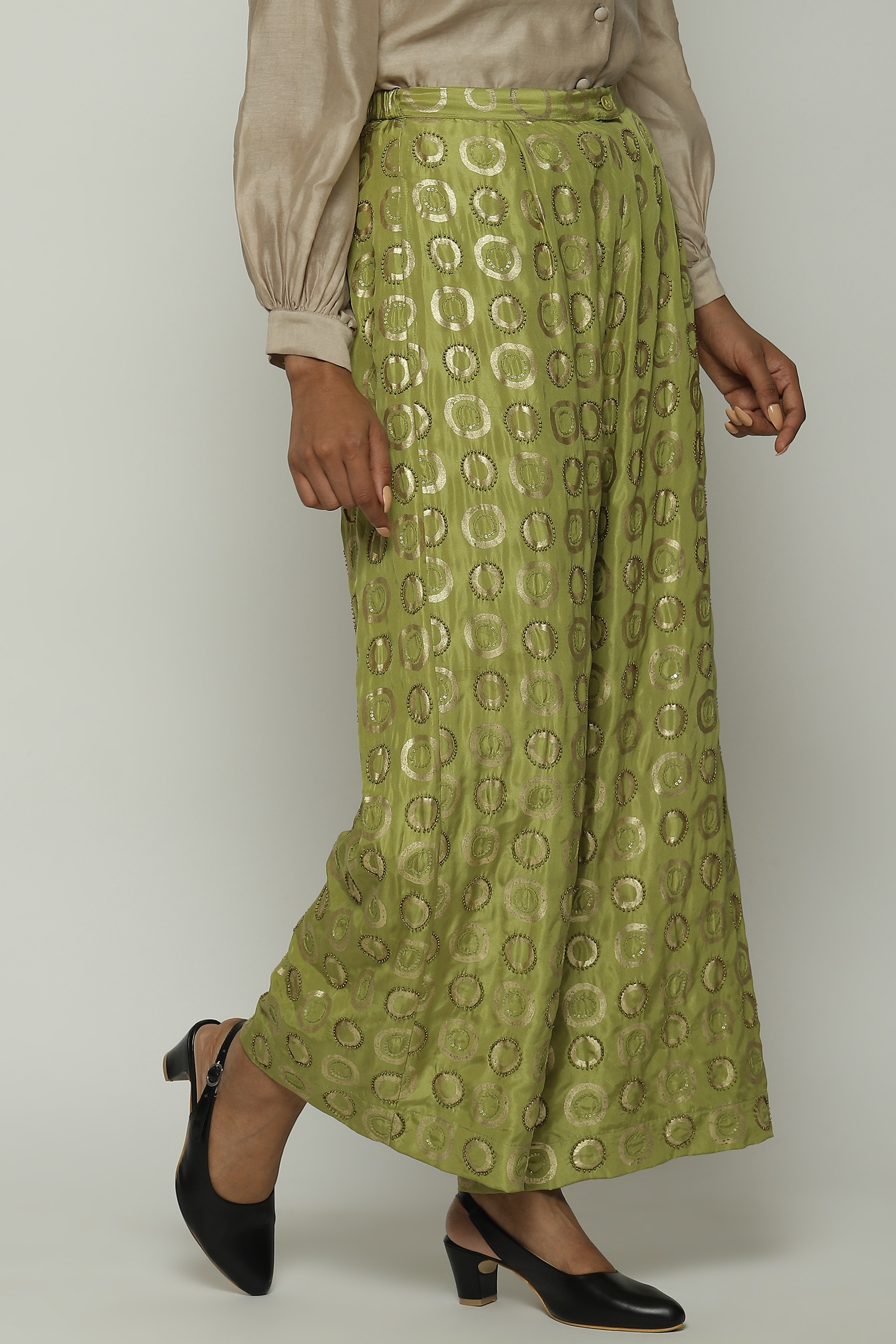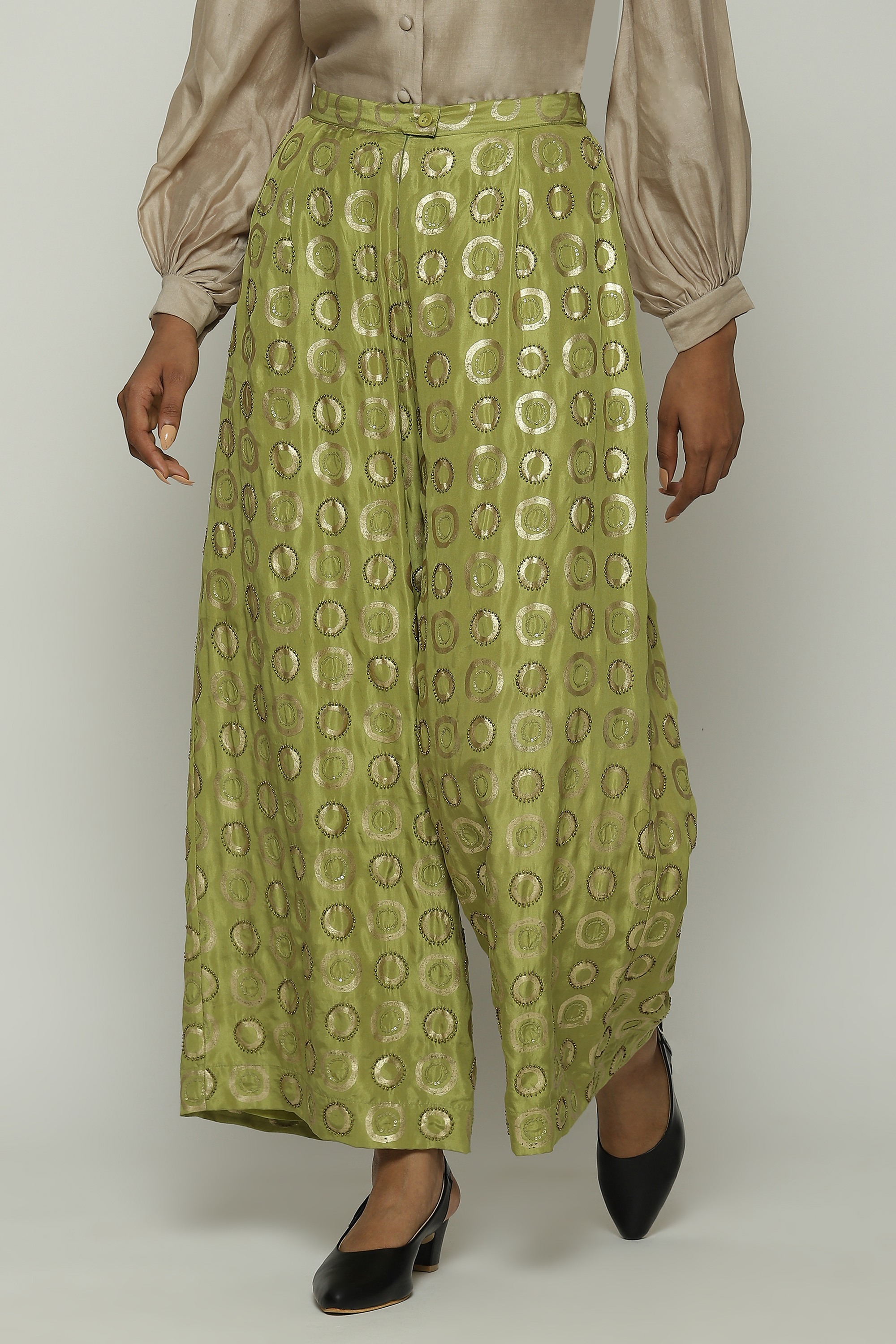 CIRCLE PRINT & BEADS - SEQUINS PALAZZO PANT