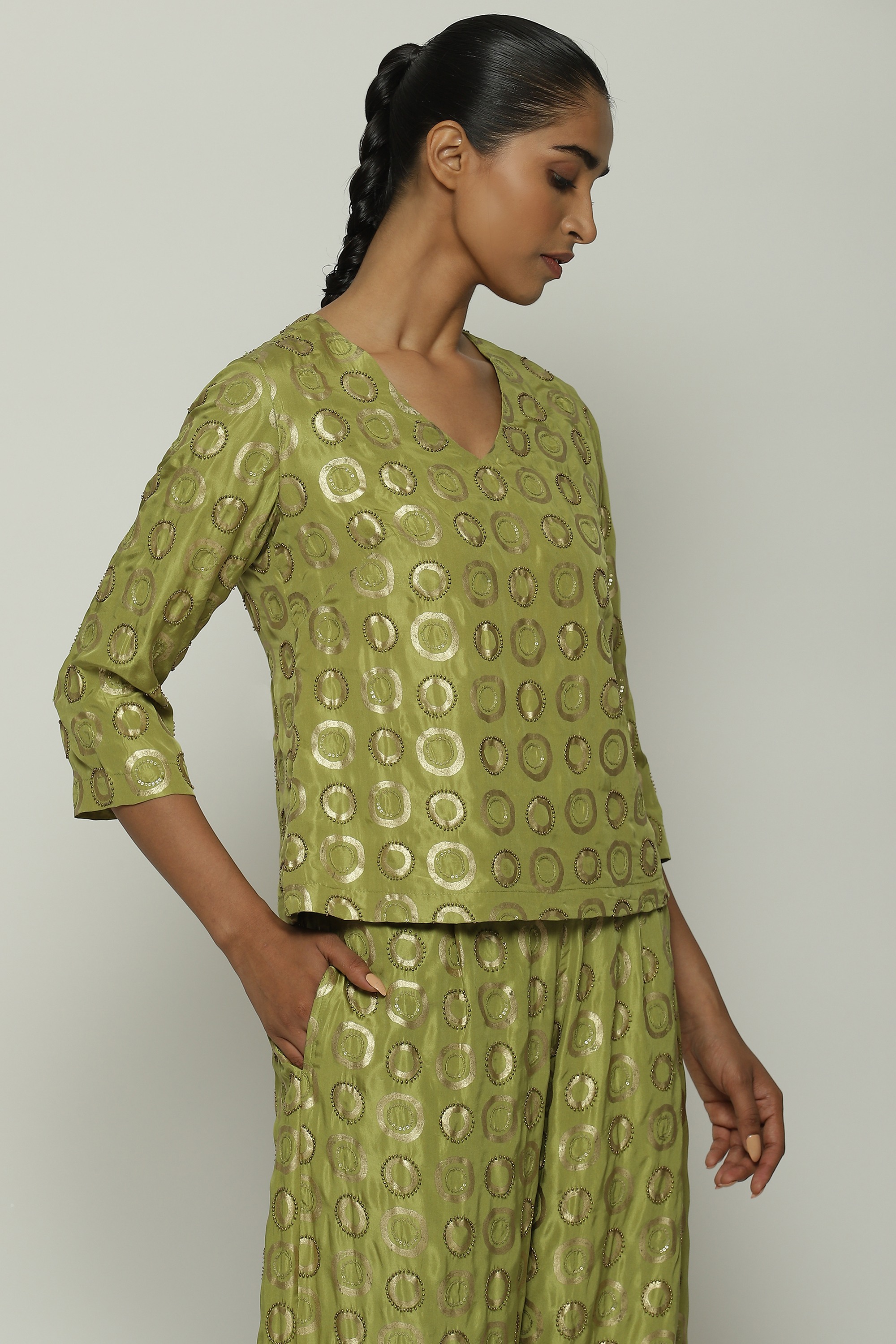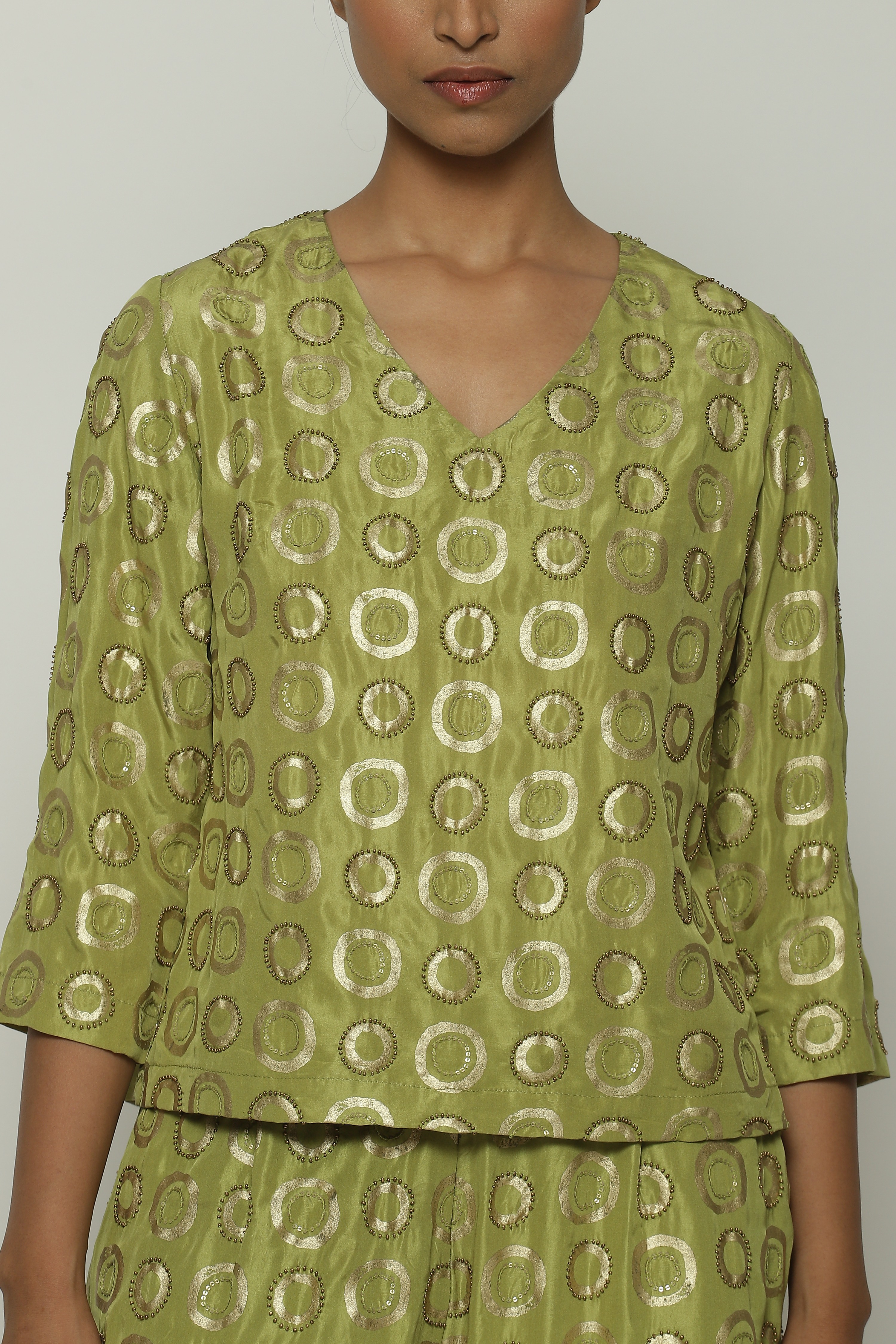 The Habutai silk fabric gives the creation an easy gloss, while the hand done embroidery dials up the glam, just the right amount.