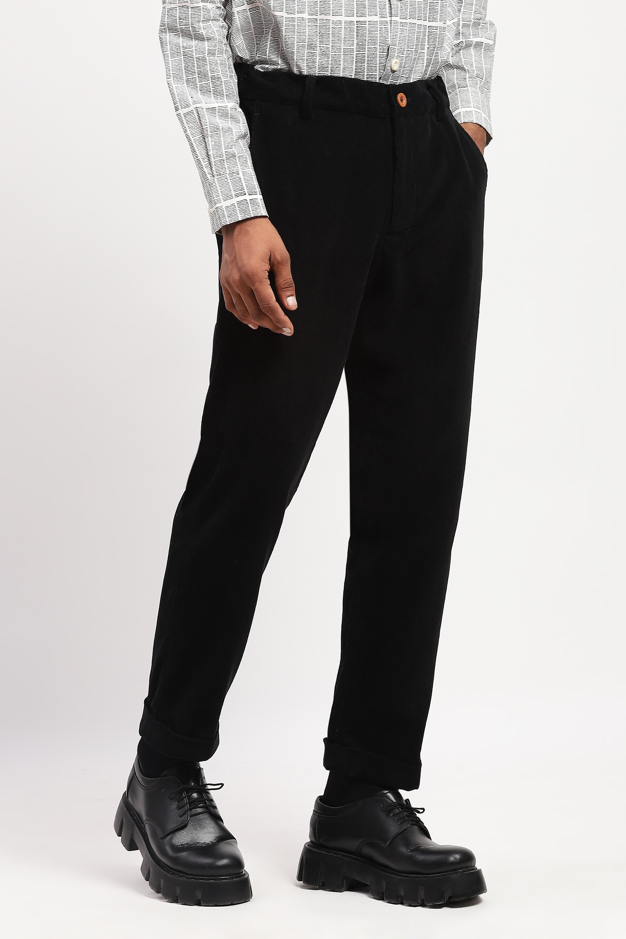 Essential to every wardrobe. Crafted in corduroy, this pair of classic black trousers is comfy in the cold.