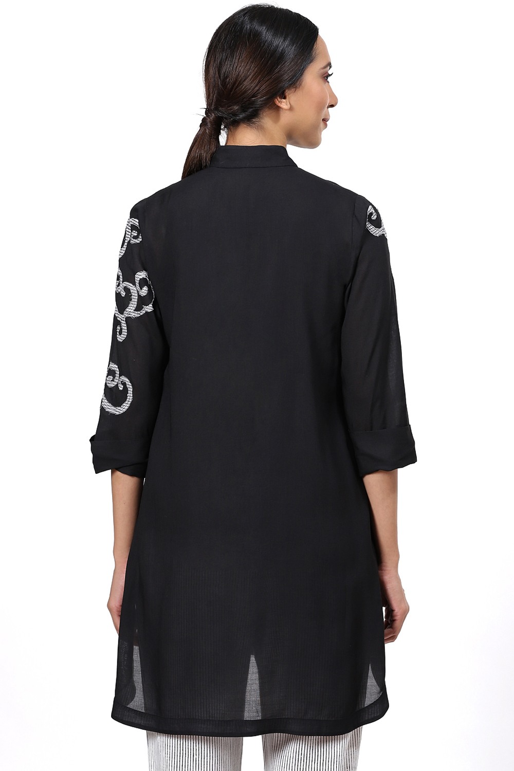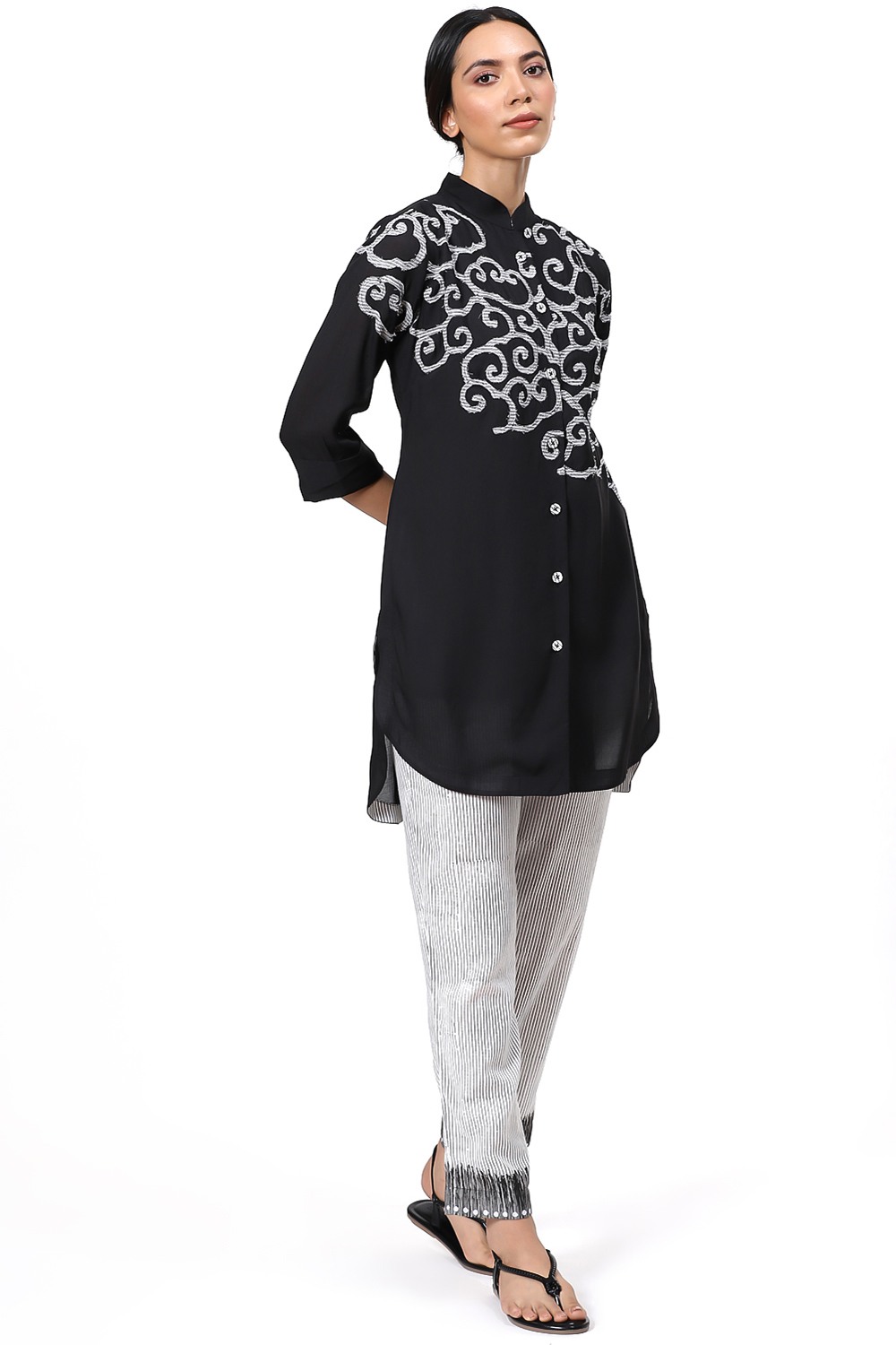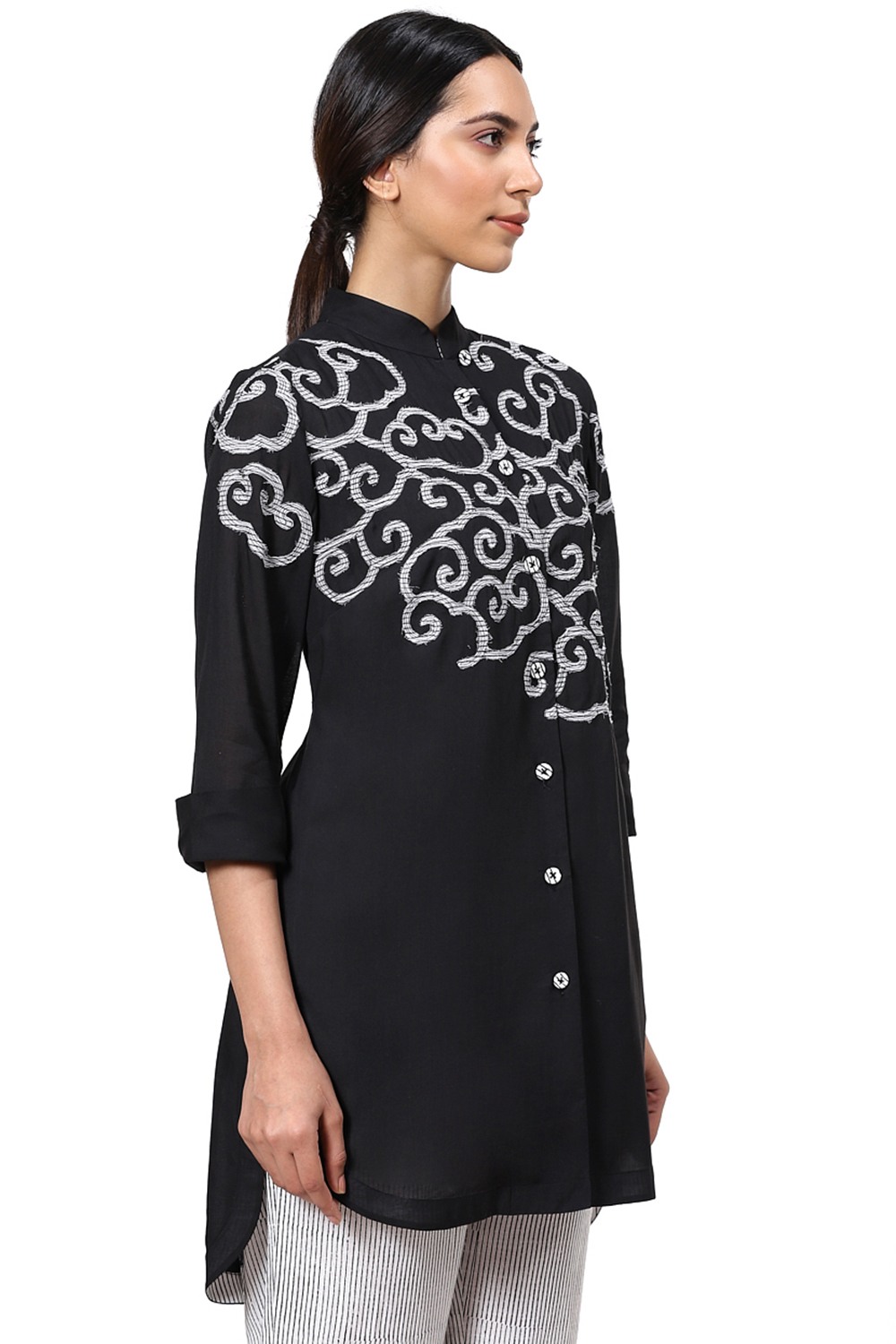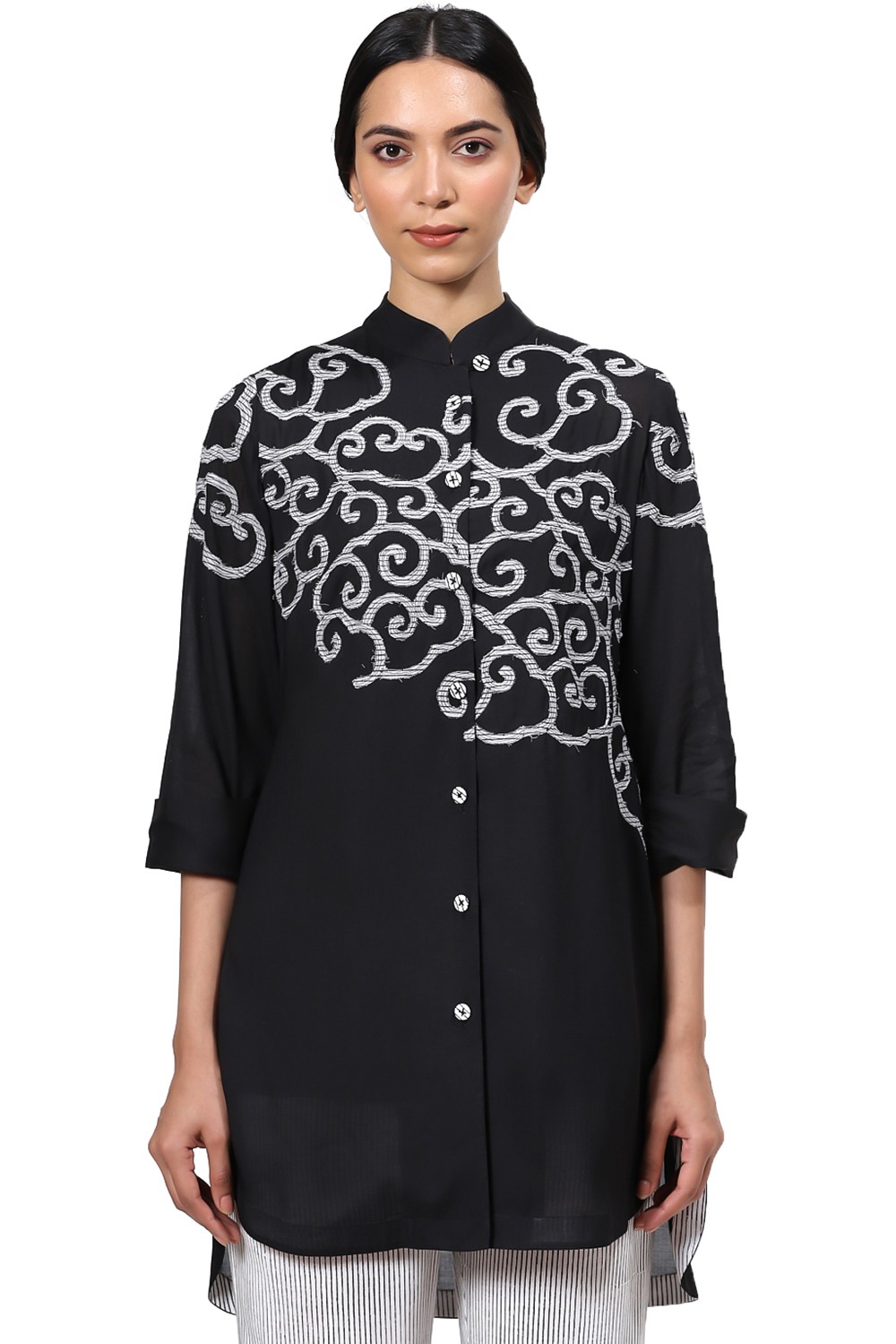 A must have shirt that suits all occasions. Floating clouds in applique and cutwork, cut from a cellulose blend fabric for an easy and relaxed fit, in classic black and white. Style this with a pair of cropped narrow pants and complete the look with strappy heels. Wear this to a cocktail party.