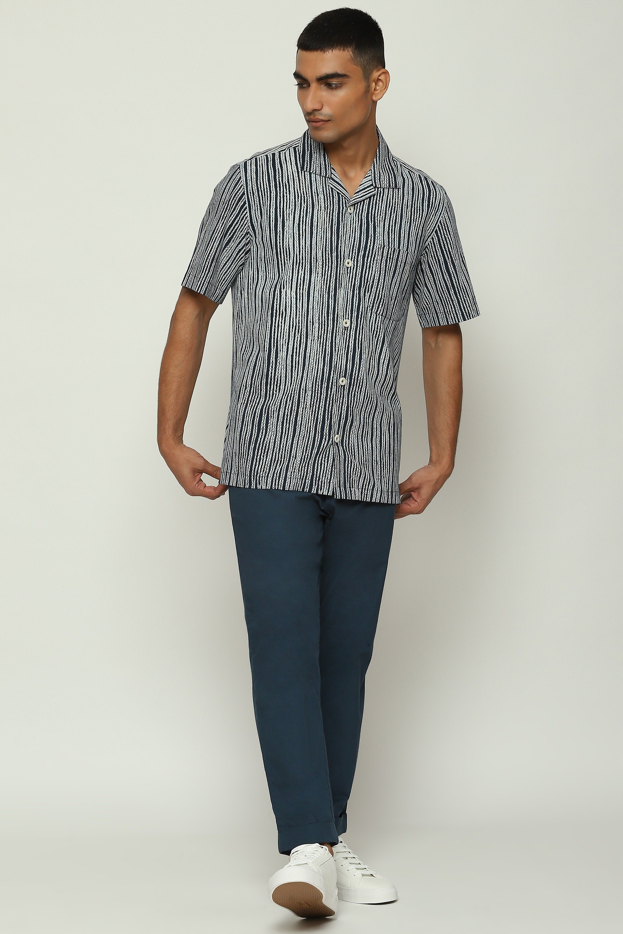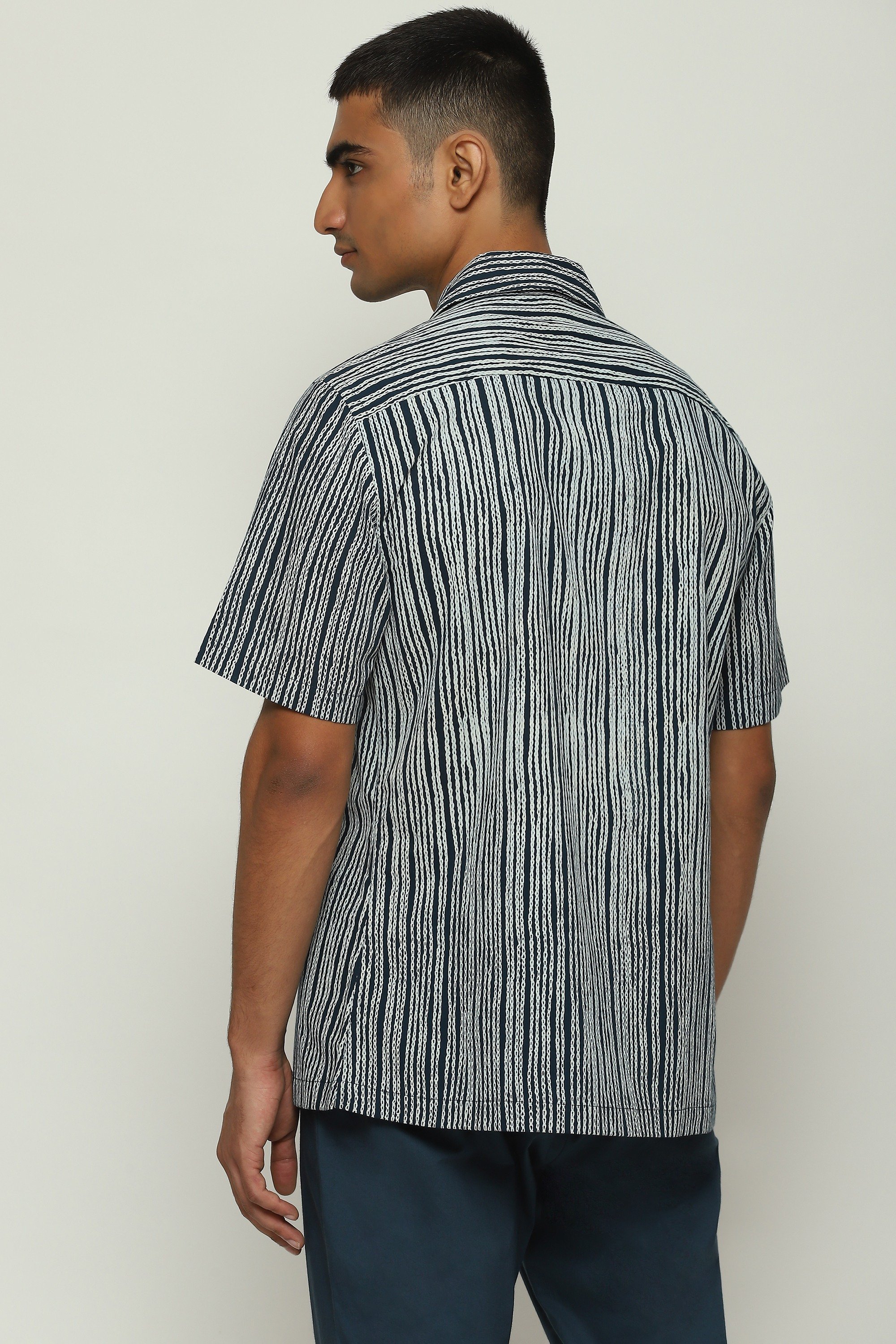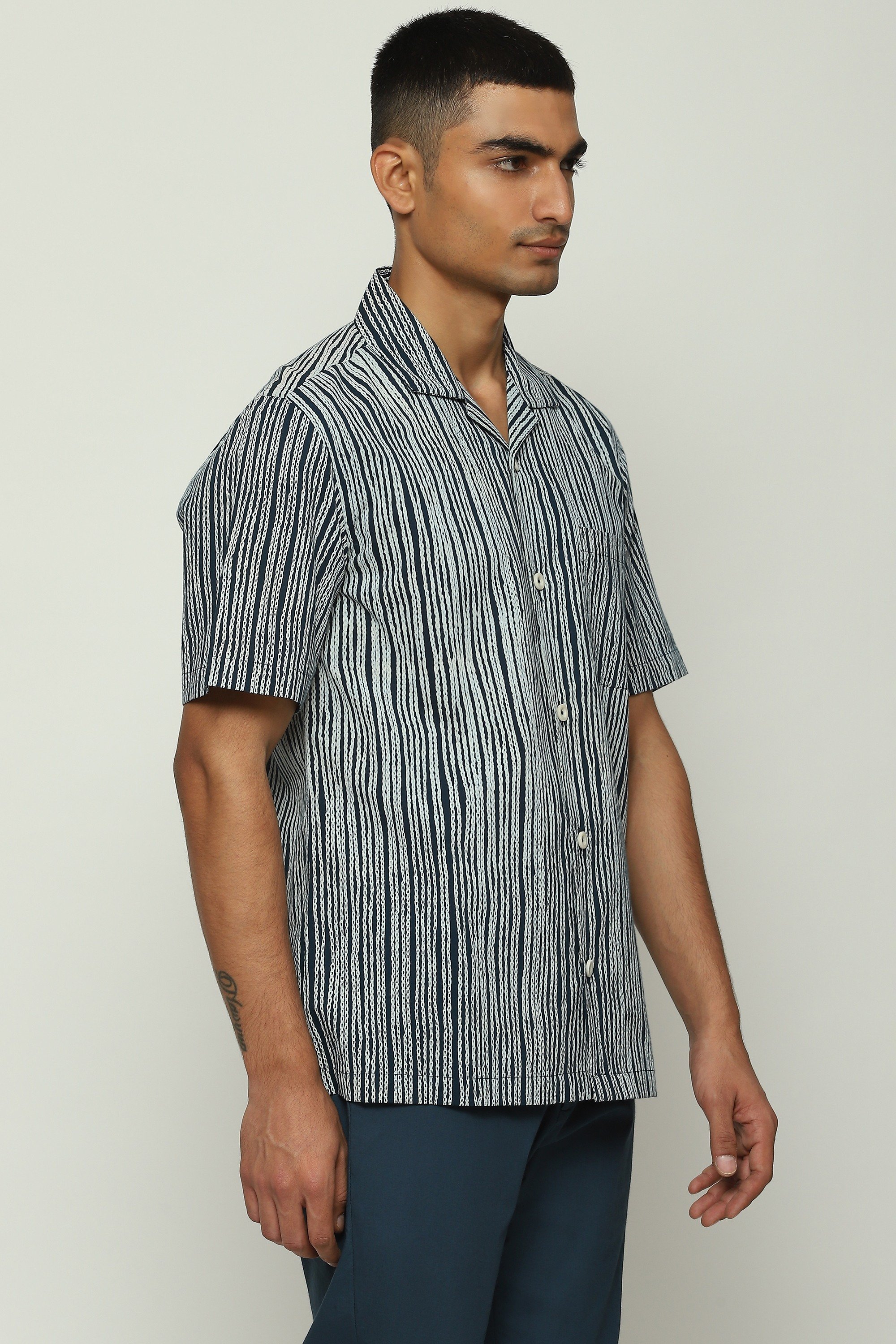 Body Language — from Abraham & Thakore — explores the meaning of communication in an increasingly digitized world. Crafted from poplin, this creation is screen printed with Trompe L'oeil crewel stitches.