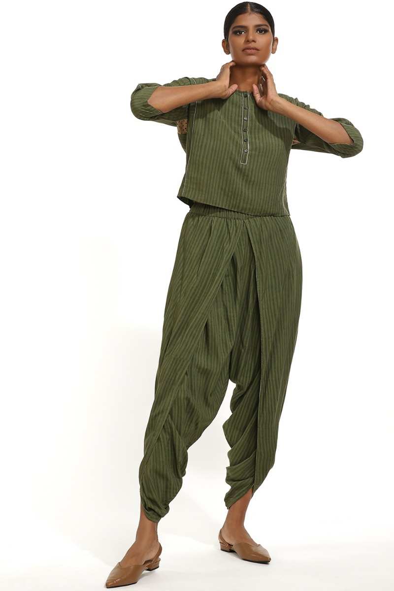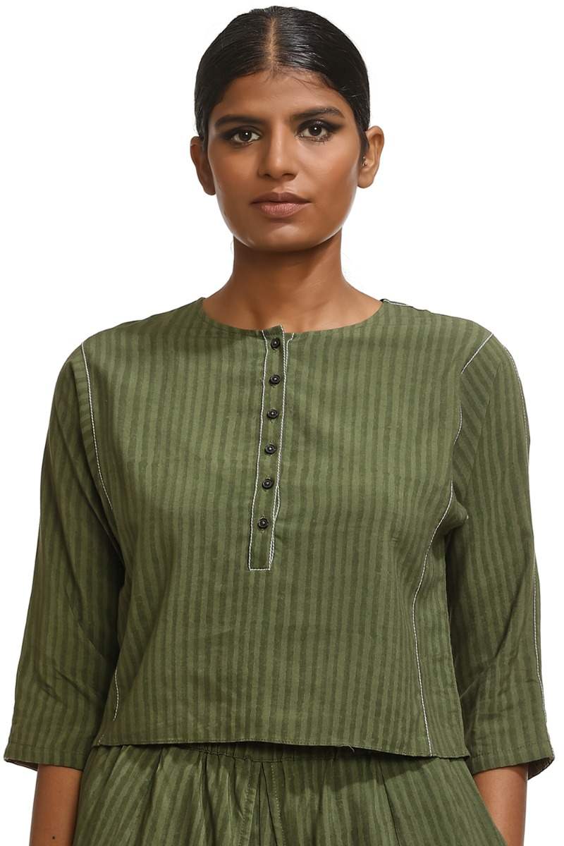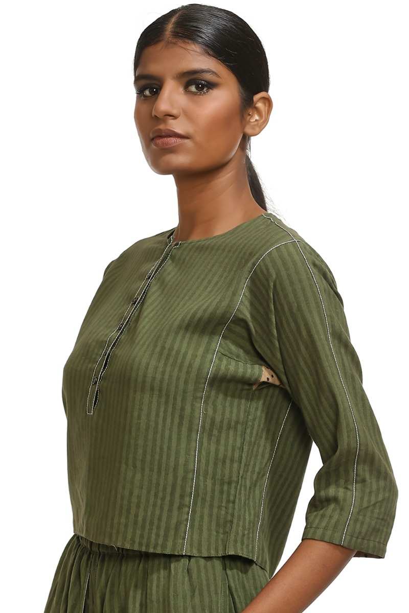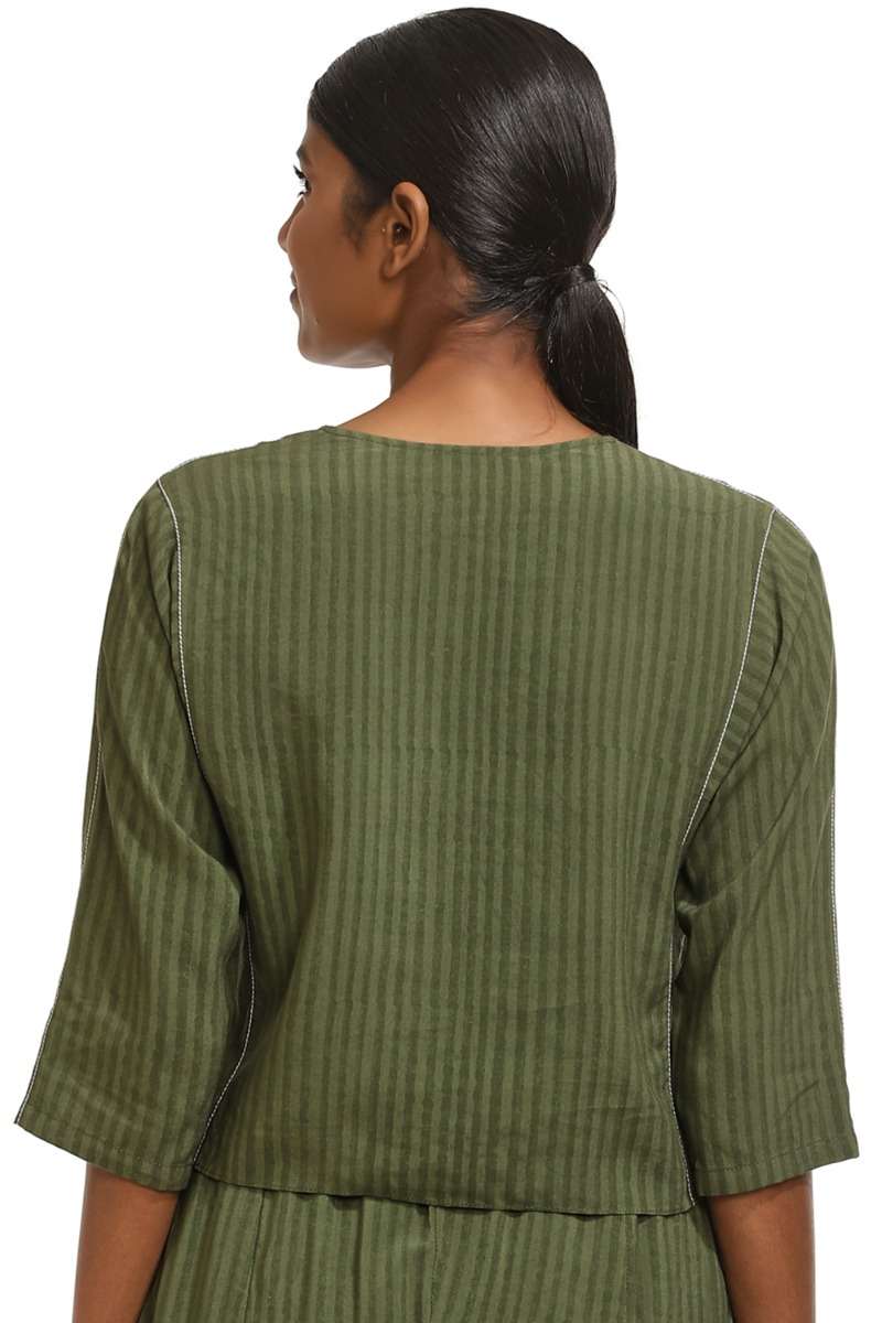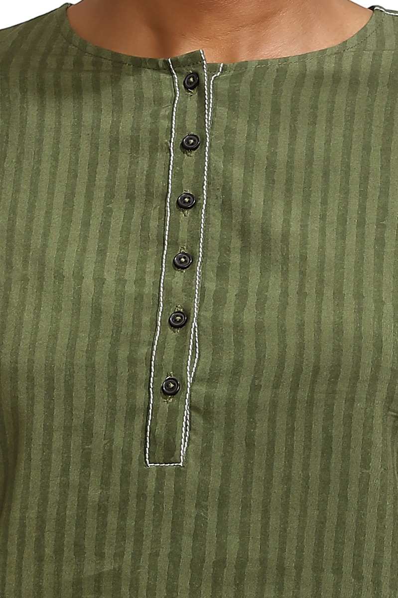 Olive Sustainable Viscose With Hand Block Printed Stripes