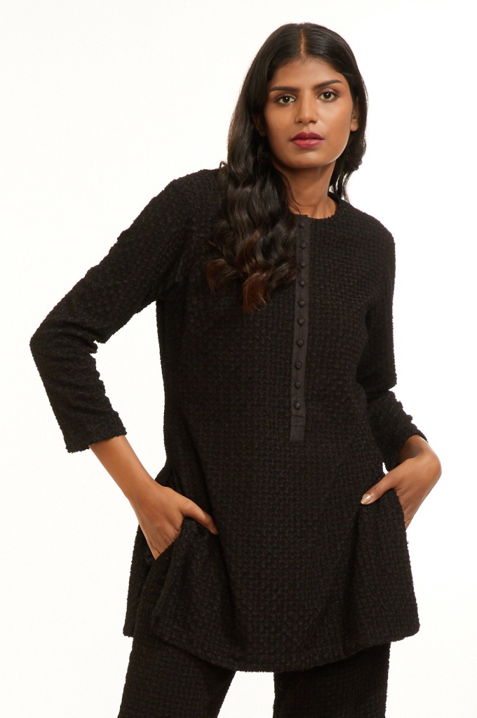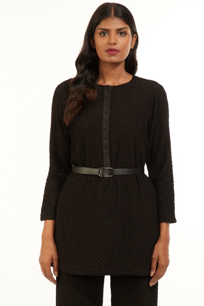 This Specially Designed Tunic Is From Our Limited Catwalk Collection, Showcased In August '18 At Lakme Fashion Week In Mumbai. Features All Over Diamond Cutwork Applique On Textured Silk