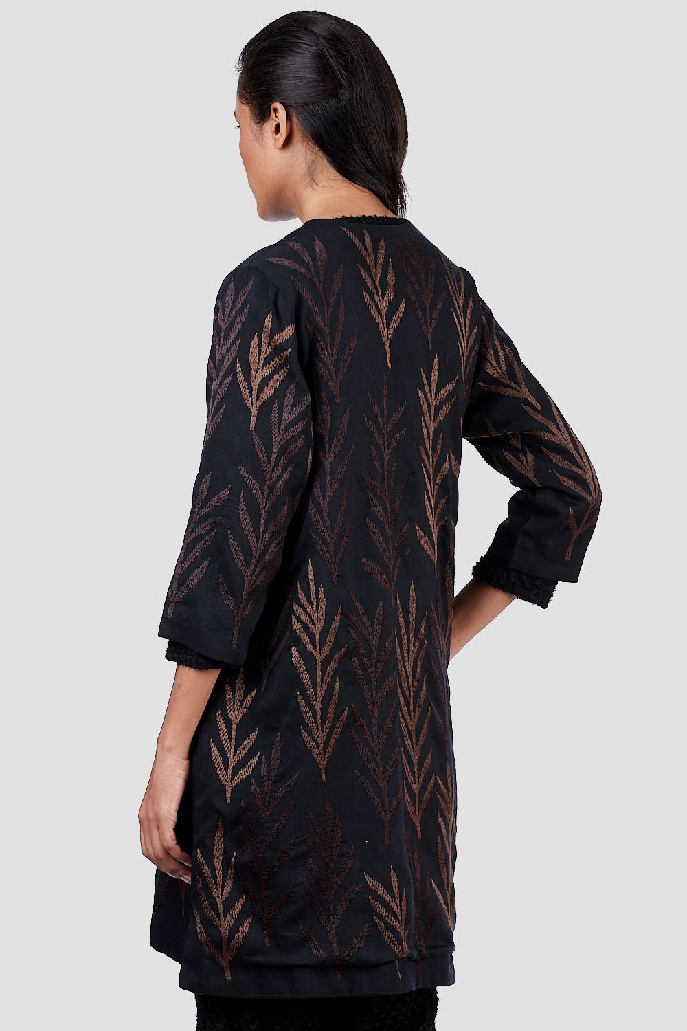 Daal Embroidered Leaf Silk Kimono Jacket