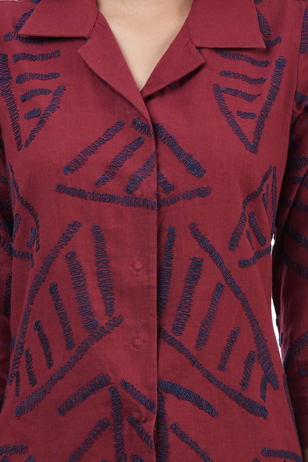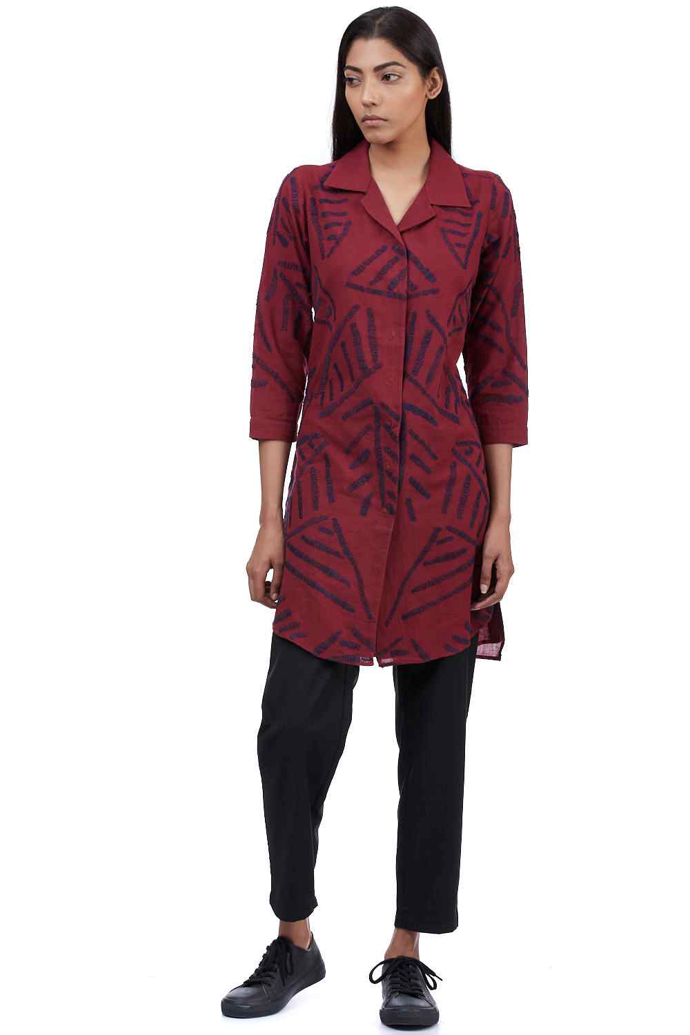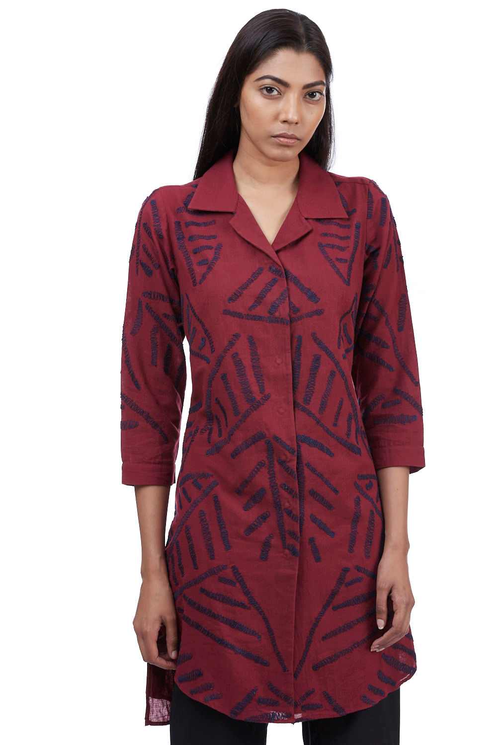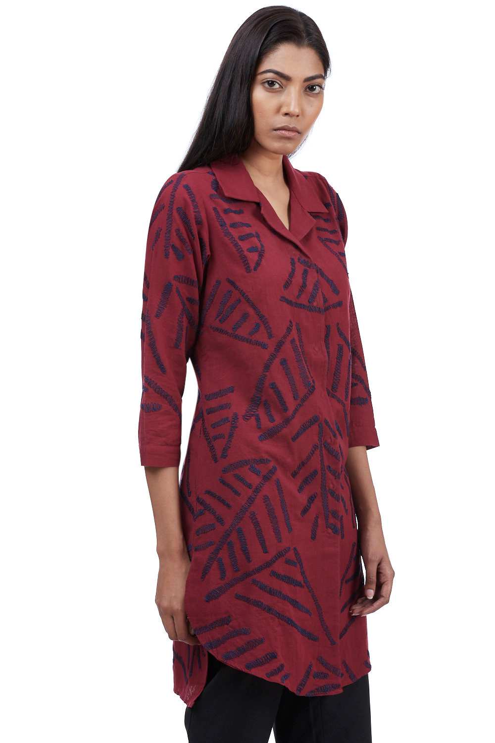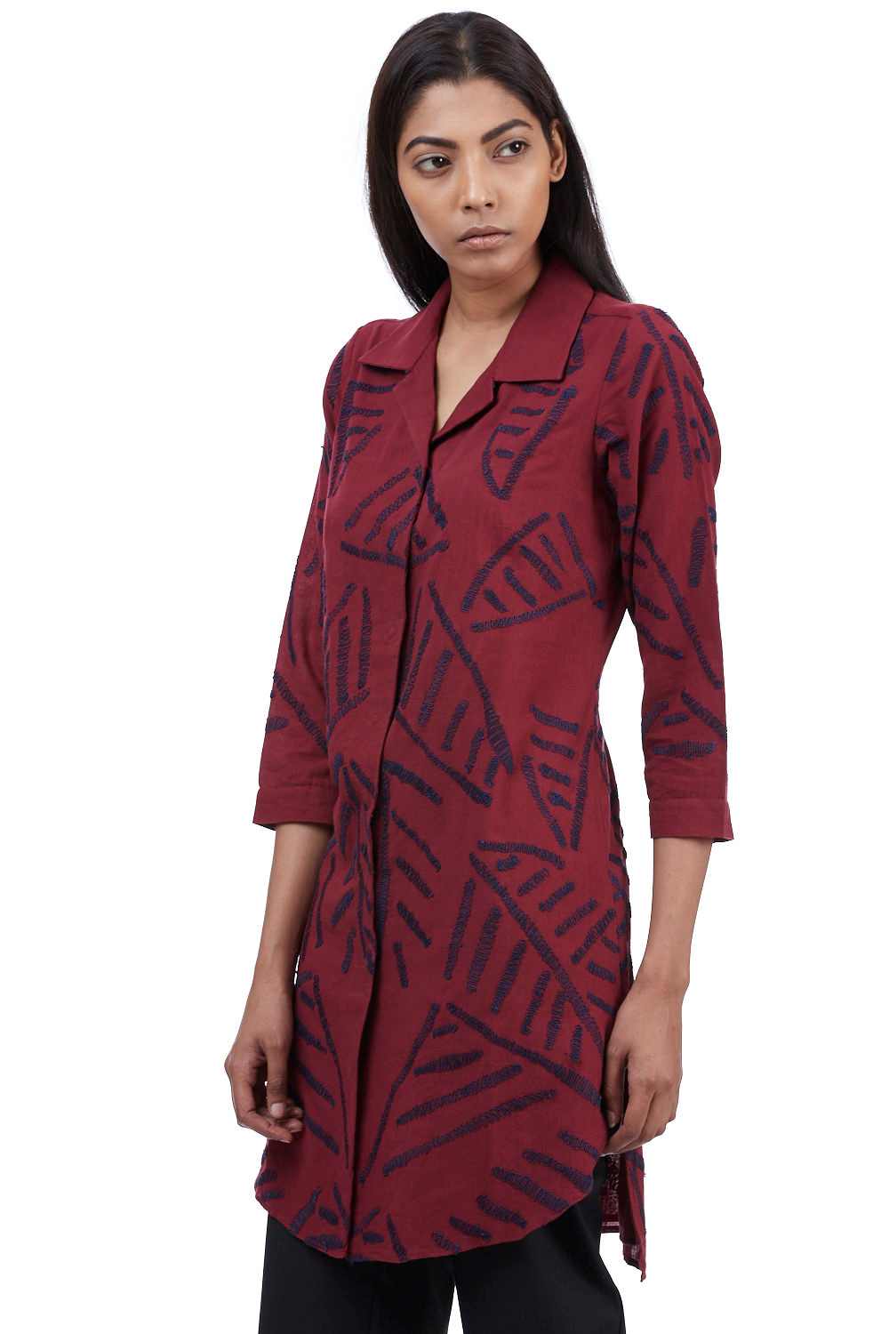 Regular Fit Button Down Tunic. Features Dori Embroidered Tribal Pattern. Garments Are Made From Fabric That Is Washed And Pre-Shrunk To Give A Superior Hand.