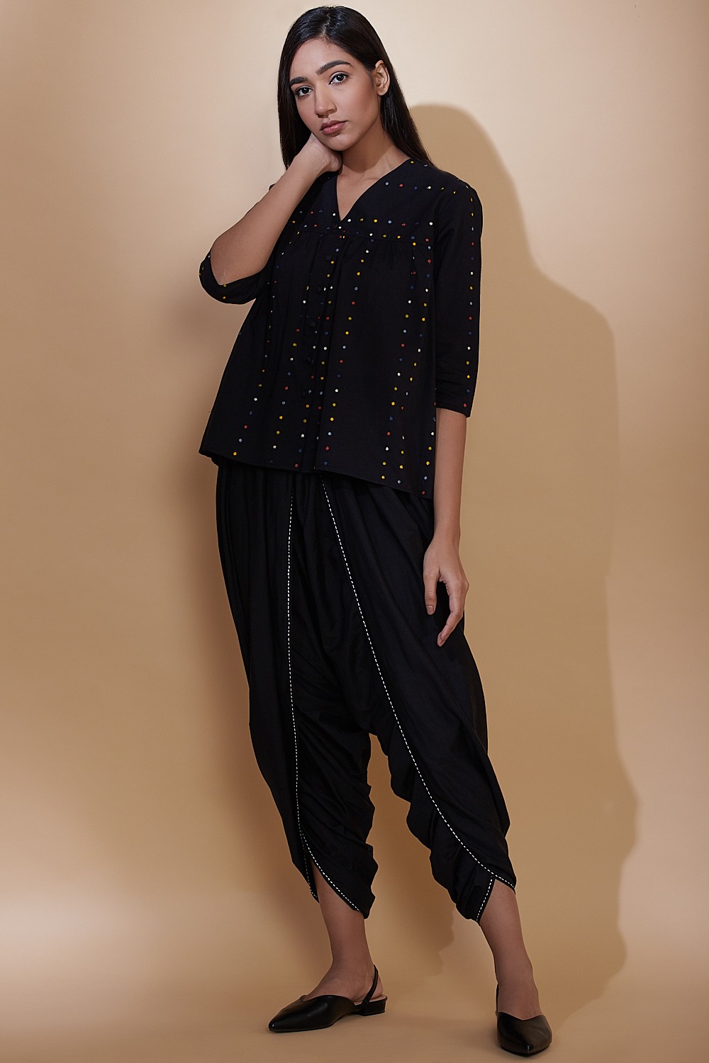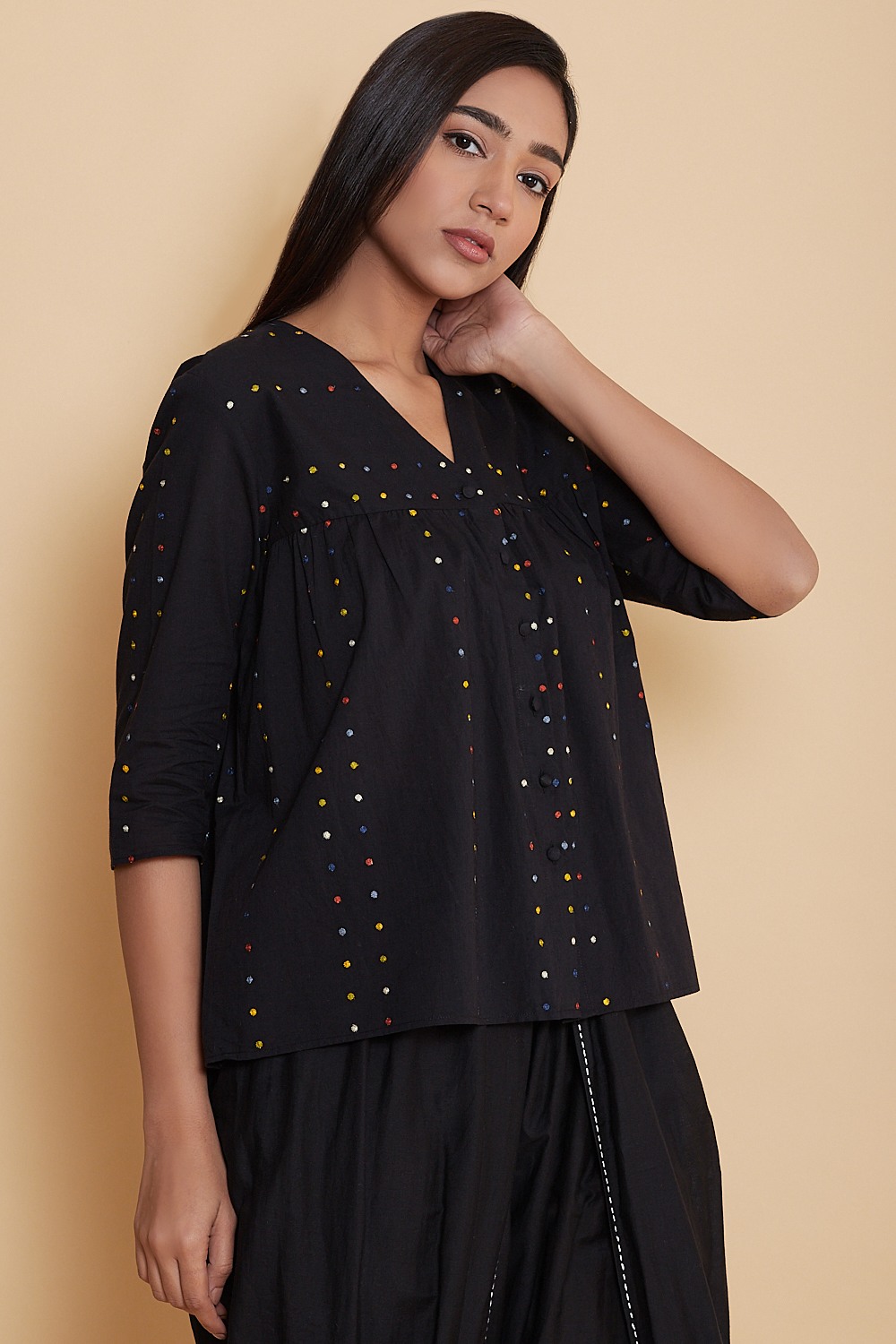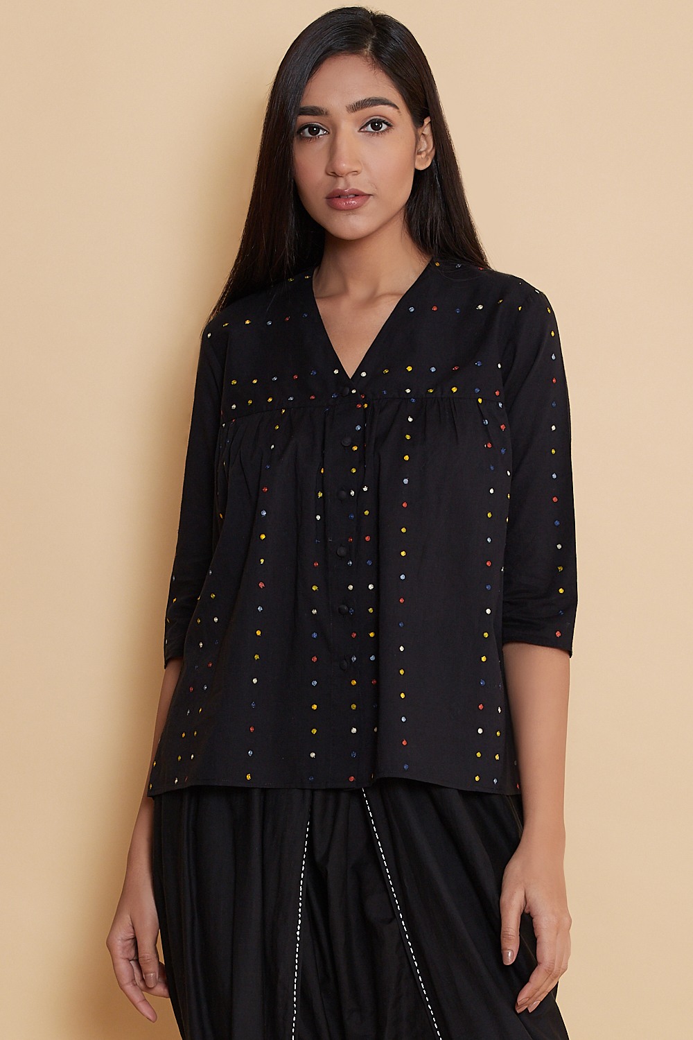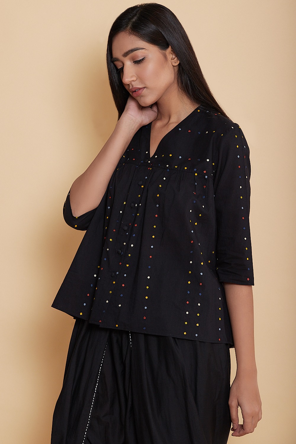 Dot Embroidered Multicolor Cotton Kedia Top._x000D_