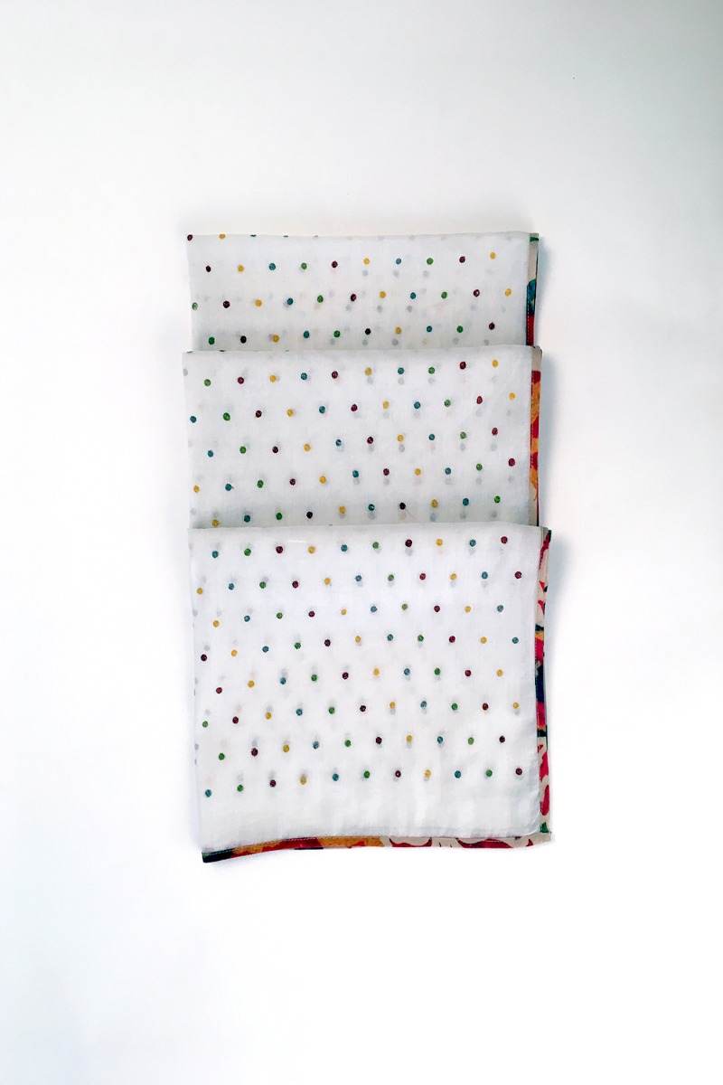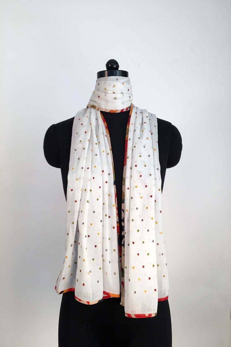 Embroidered Multicolor Dots With Printed Piping. Abraham & Thakore Scarves Are Handcrafted And Exclusively Designed, Produced In Very Limited Editions. Up Your Style Game By Pairing Our New Scarf Styles And Refreshed Classics In Infinite Ways