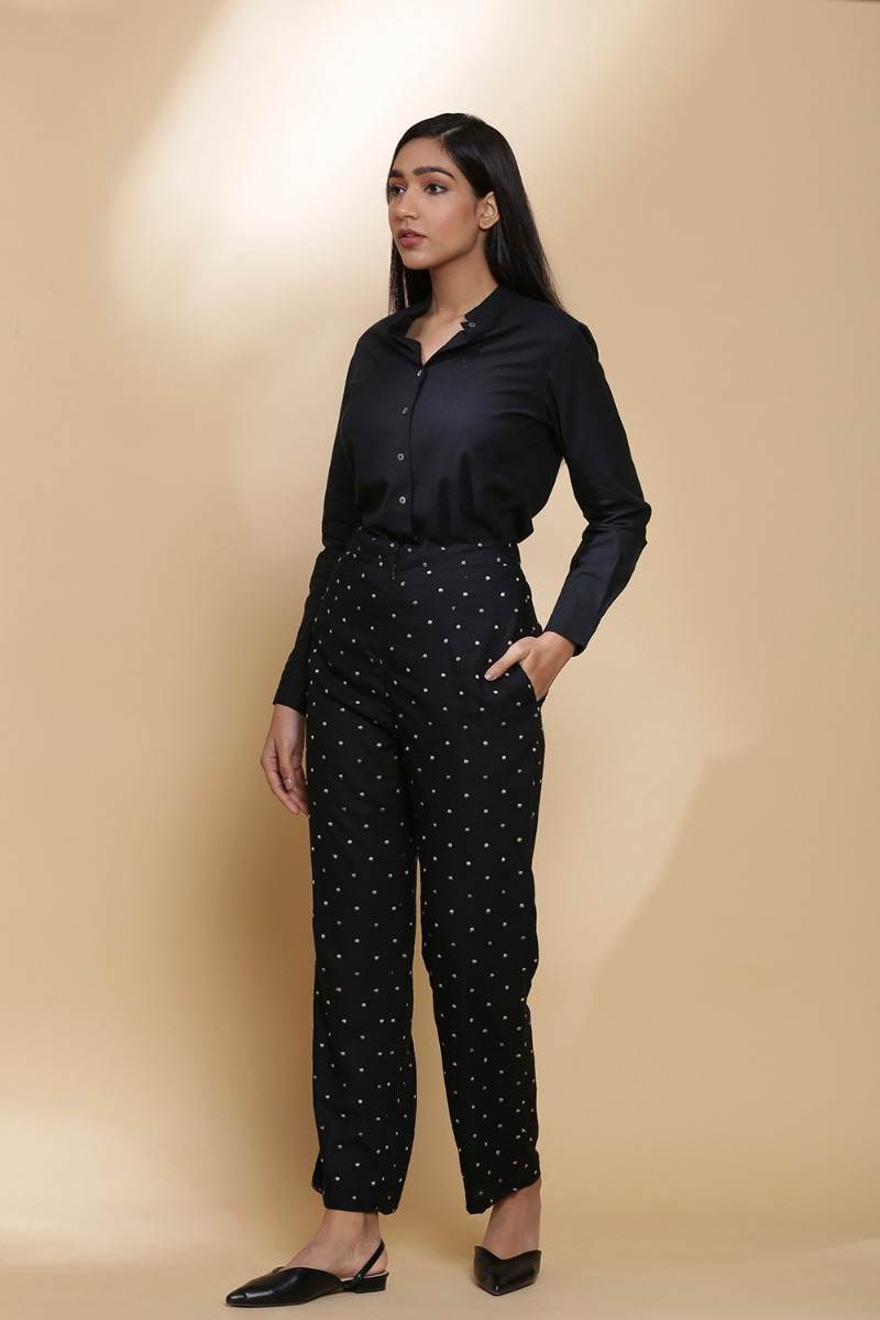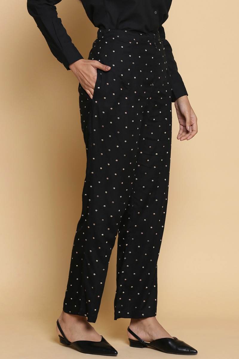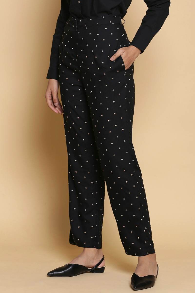 Regular-Fit Straight Pant. Dot Embroidered Straight Pants Garments Are Made From Fabric That Is Washed And Pre-Shrunk To Give A Superior Hand.