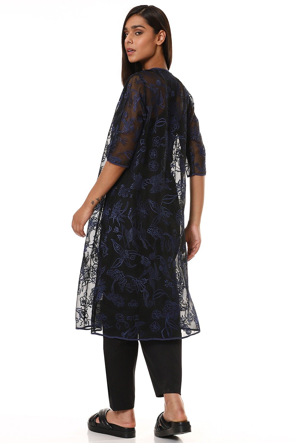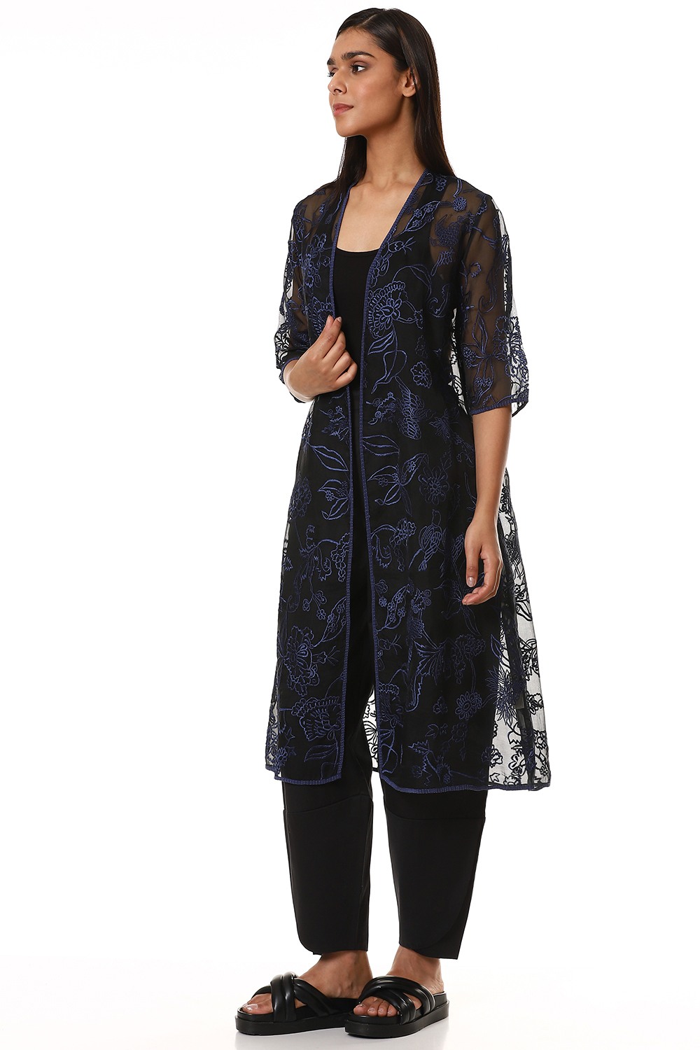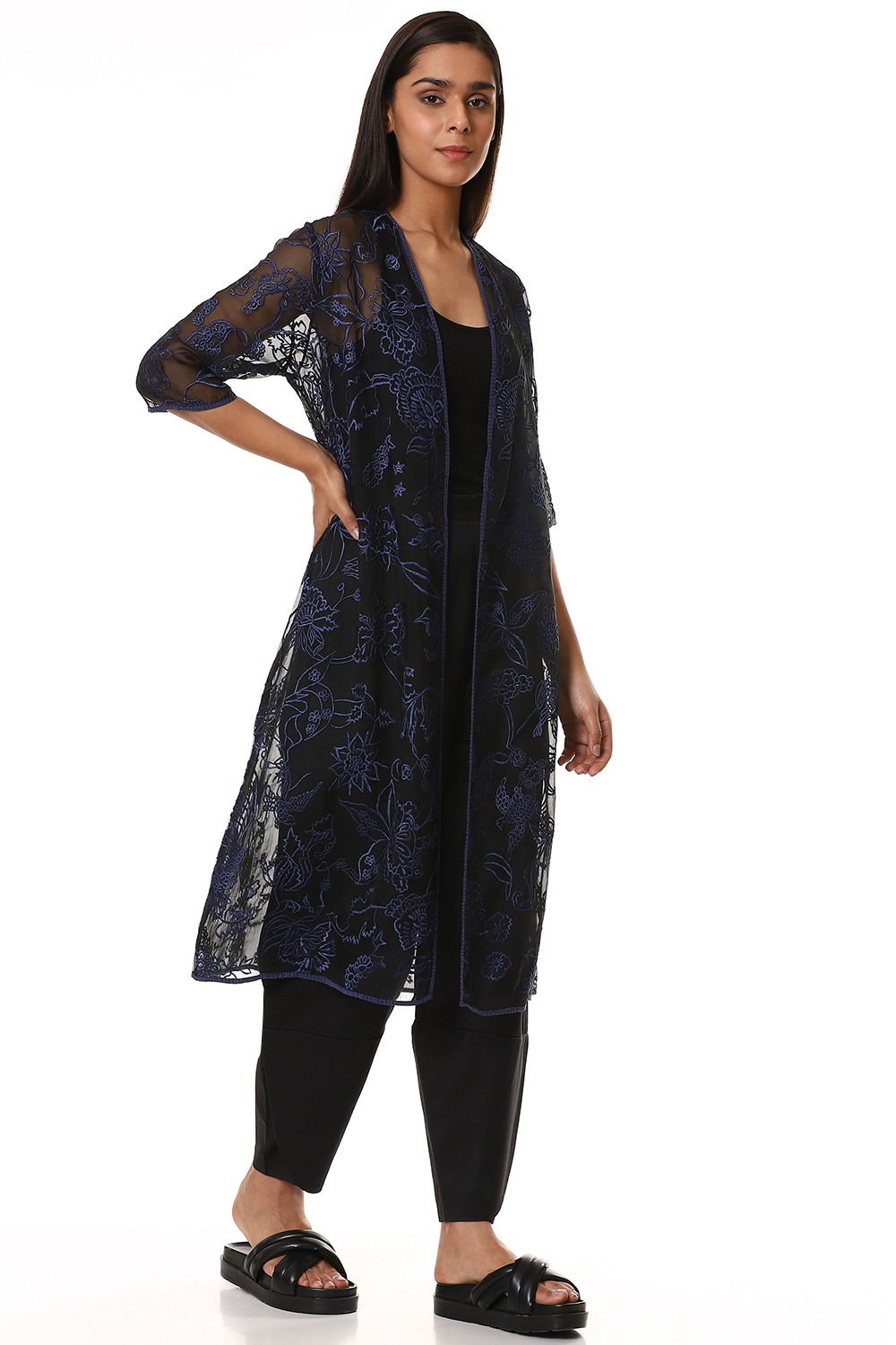 Embroidered Floral Organza Jacket Blue