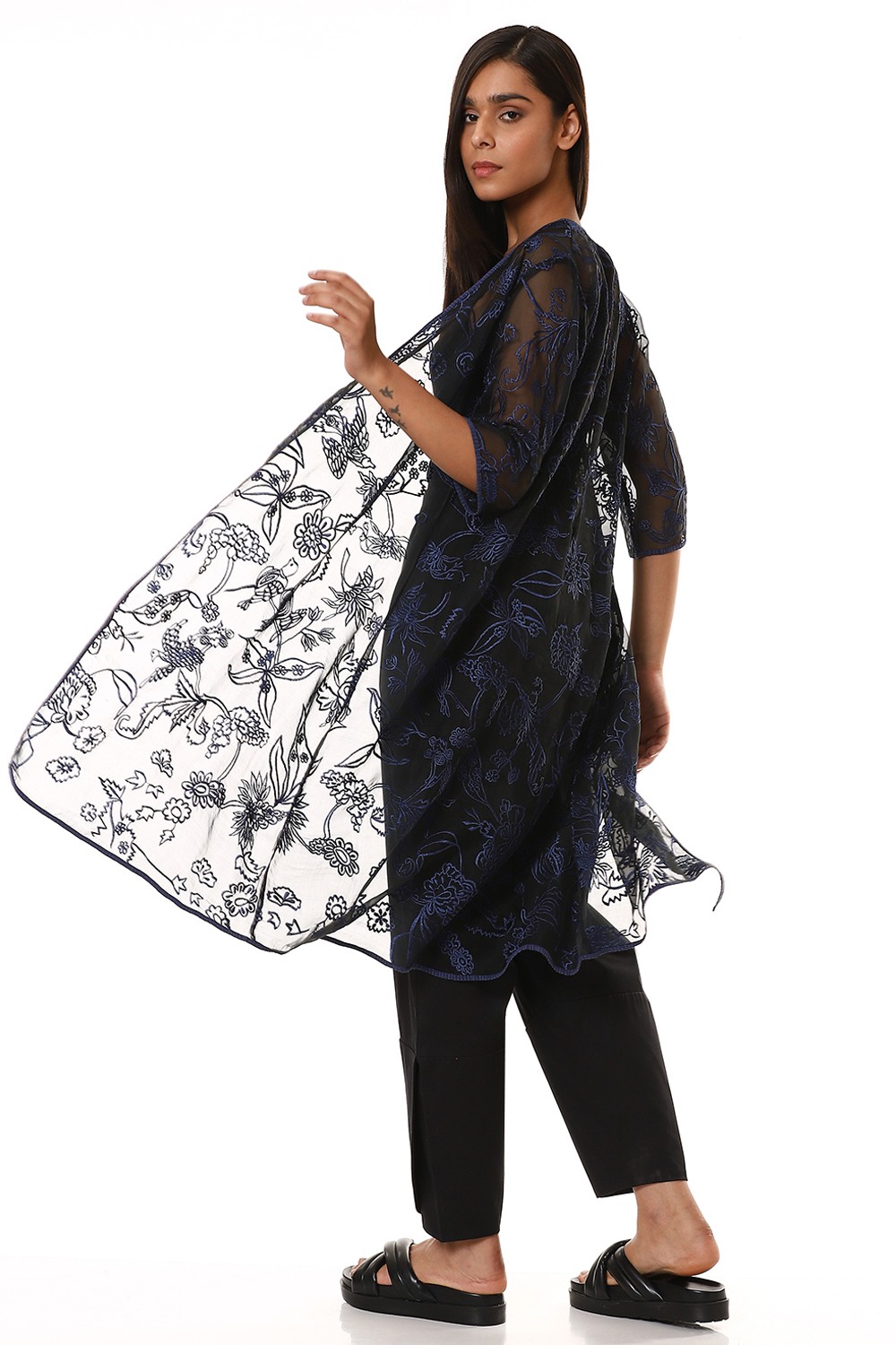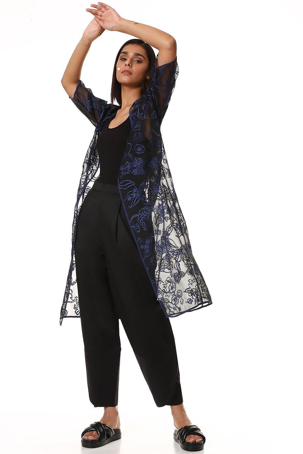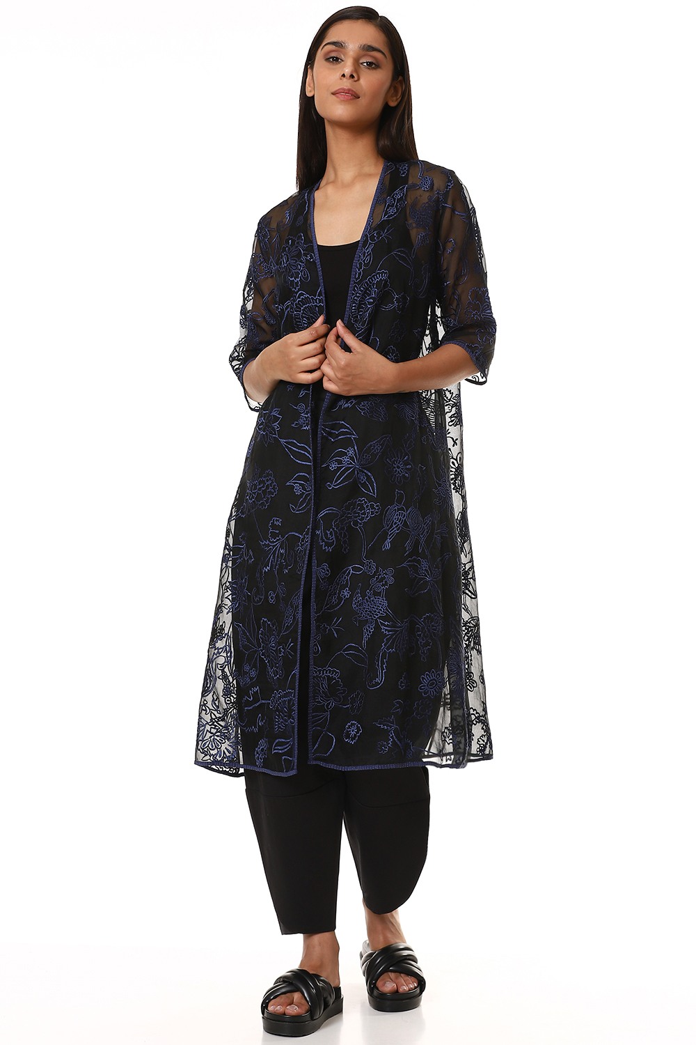Embroidered Floral Organza Jacket Blue