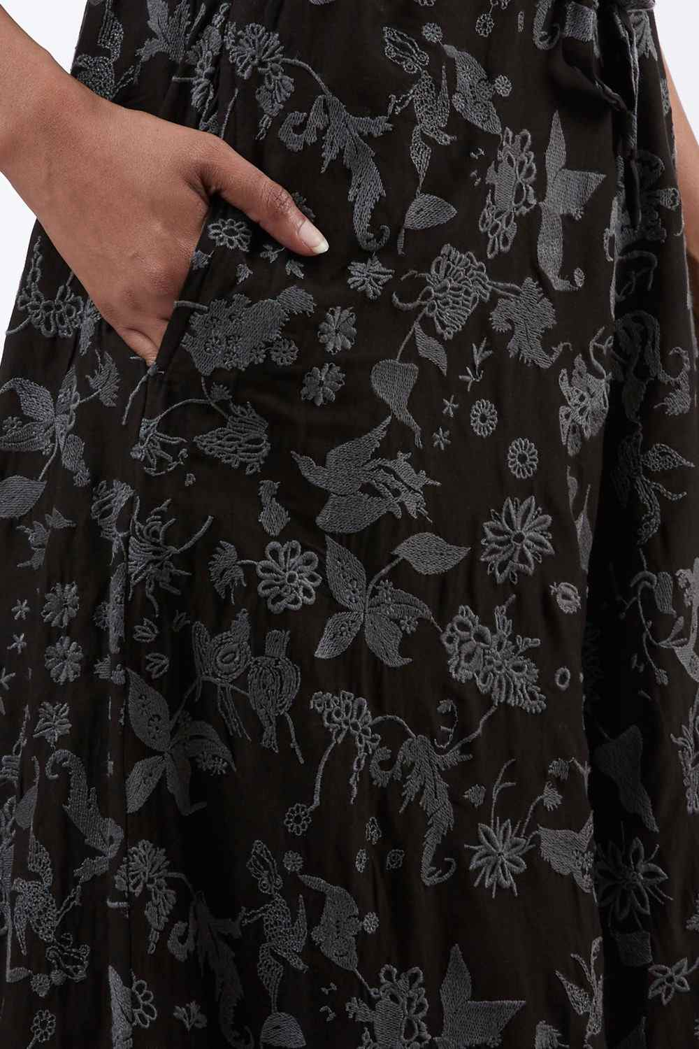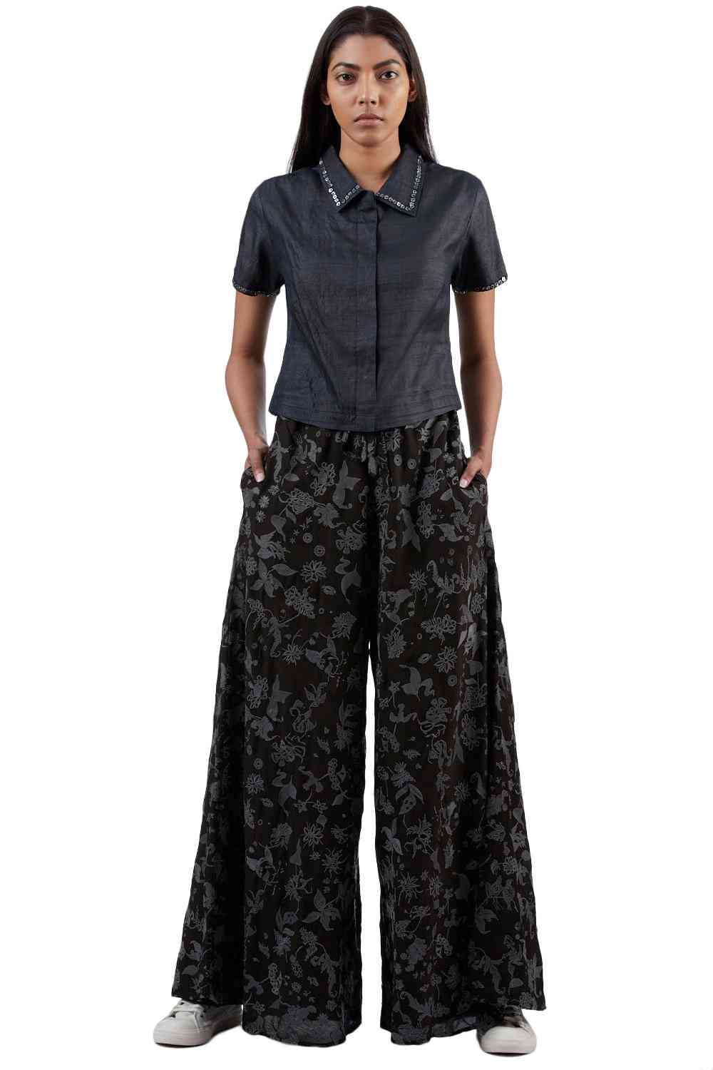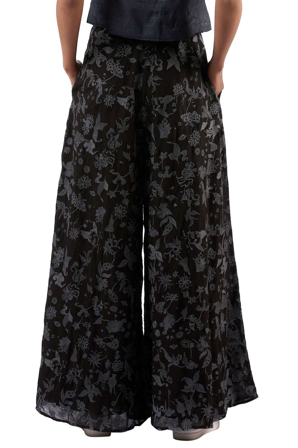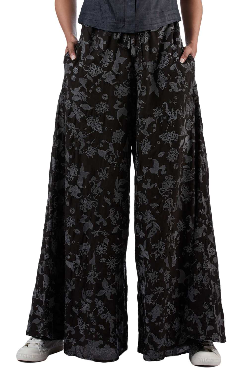 Palazzo Pants. Features All Over Embroidered Richly Patterned Florals, Inspired By Some Of The Great Indian Chintzes. Adjustable Waistband, Lightly Elasticated At The Back, With Additional Drawstrings In The Front For A Perfect Fit