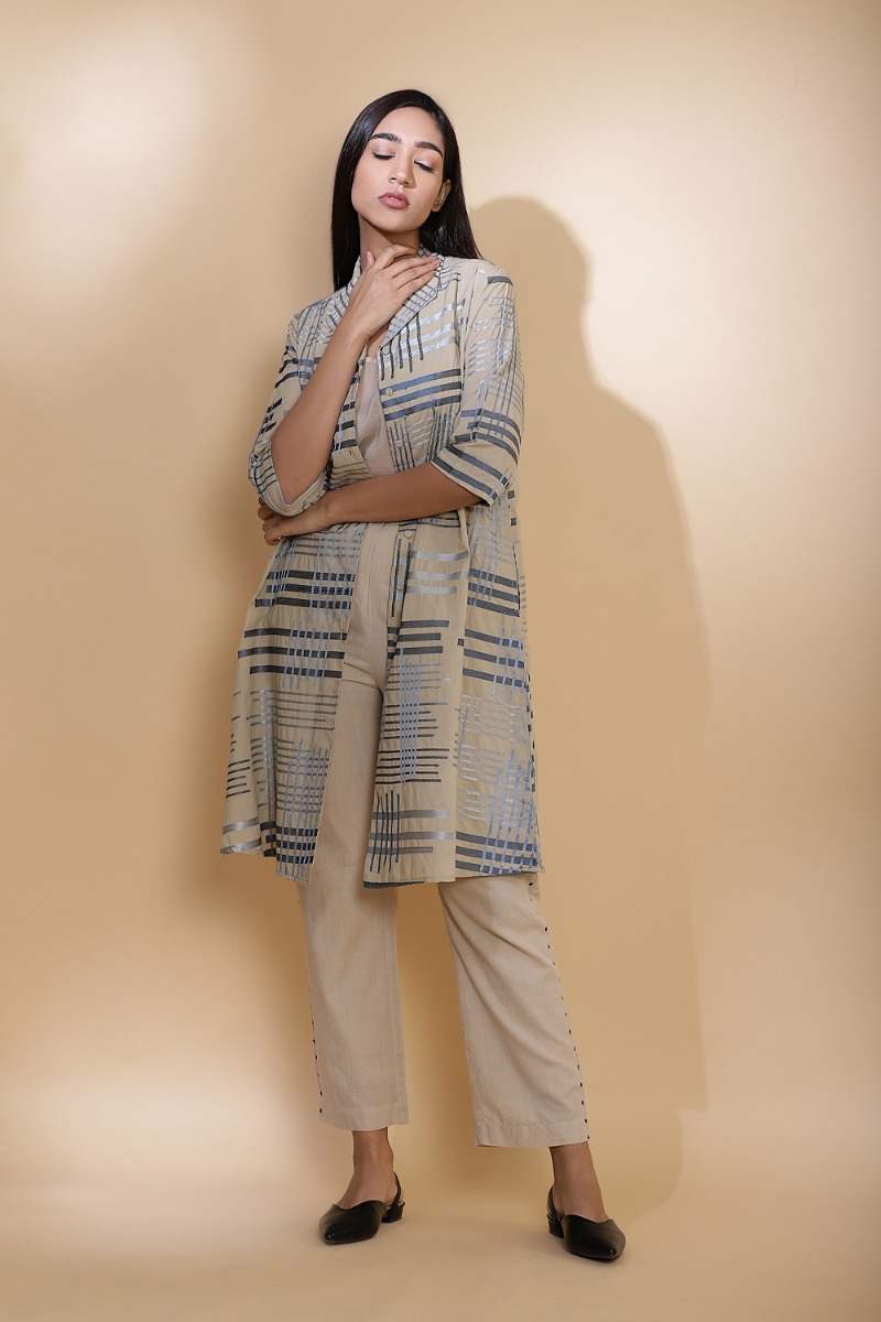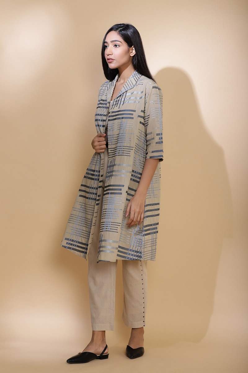 Embroidered Handdrawn Lines Cotton Shirt Jacket