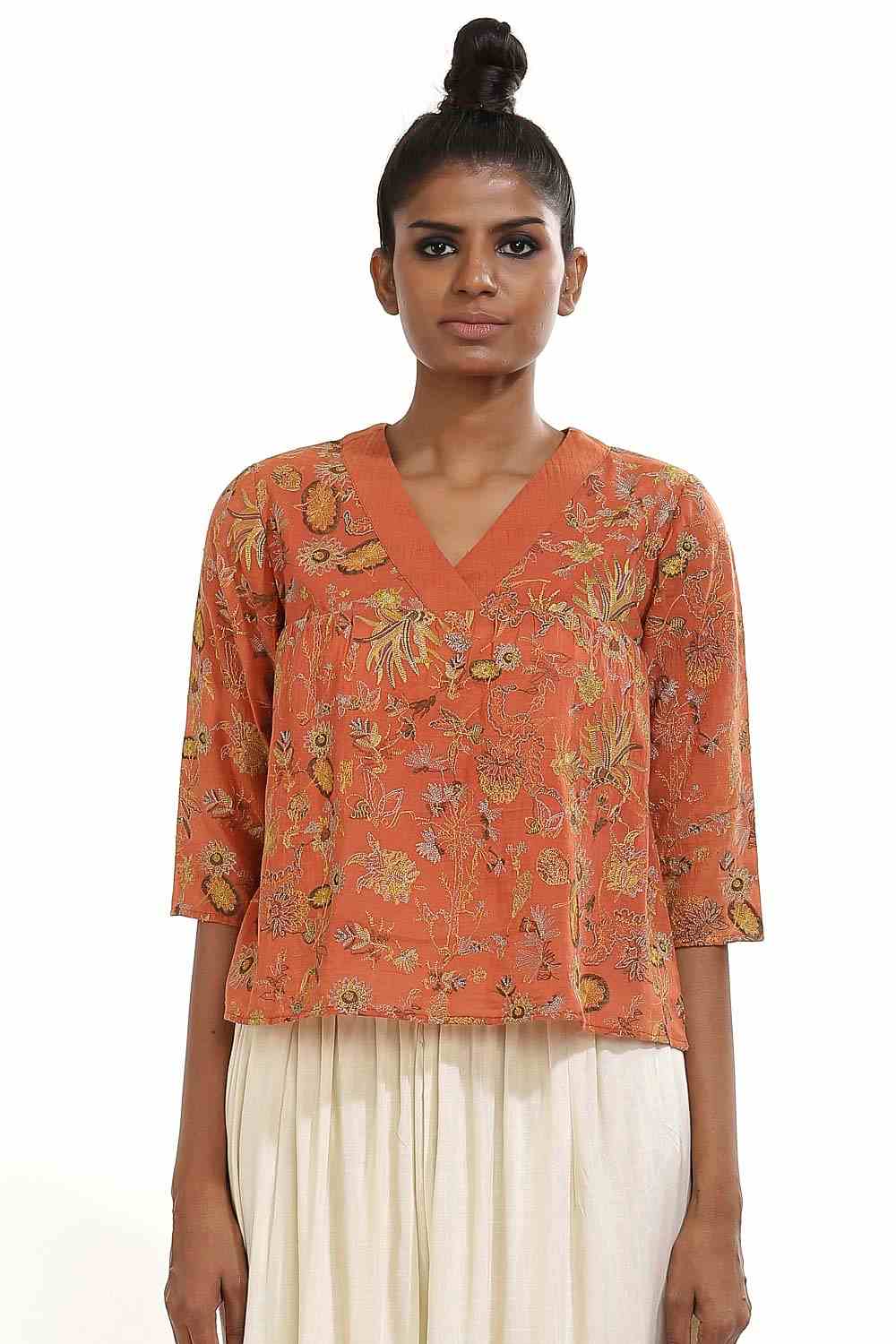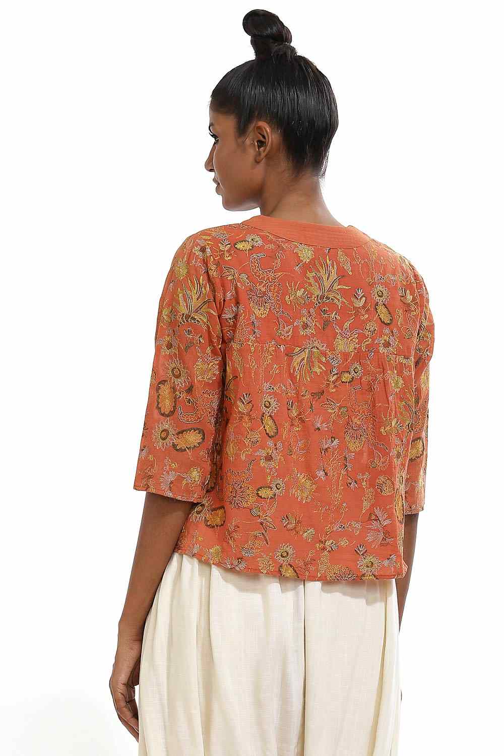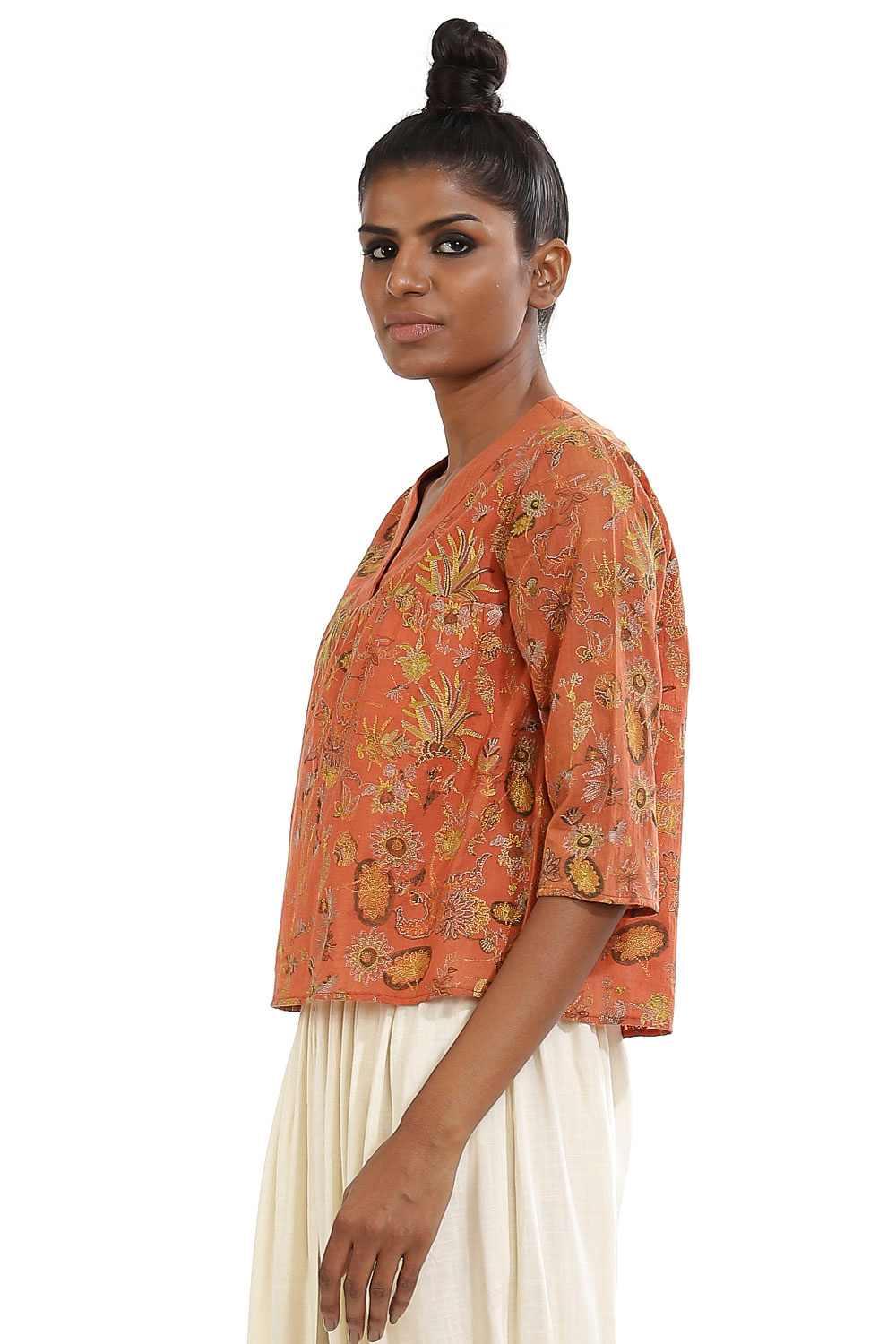 Embroidered kalamkari kedia top. Cut form sustainable viscose