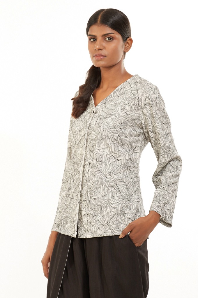 Regular-Fit Short Jacket. Leaf Texture Embroidered. Garments Are Made From Fabric That Is Washed And Pre-Shrunk To Give A Superior Hand