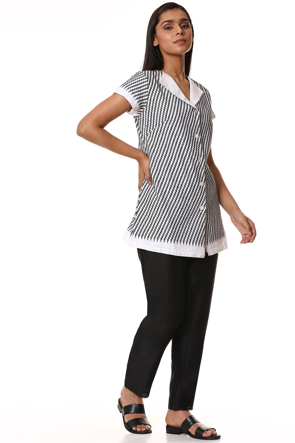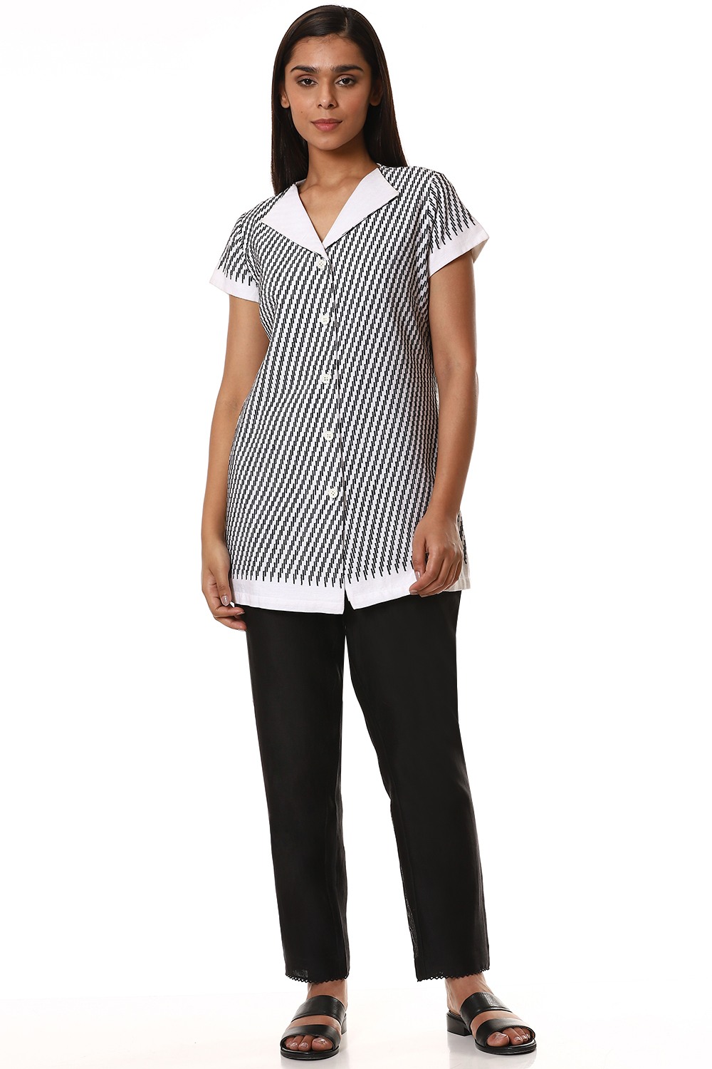 Embroidered Shirt. All Over Embroiderd Enlarged Twill Weave Pattern With Modified Sailor Collar.