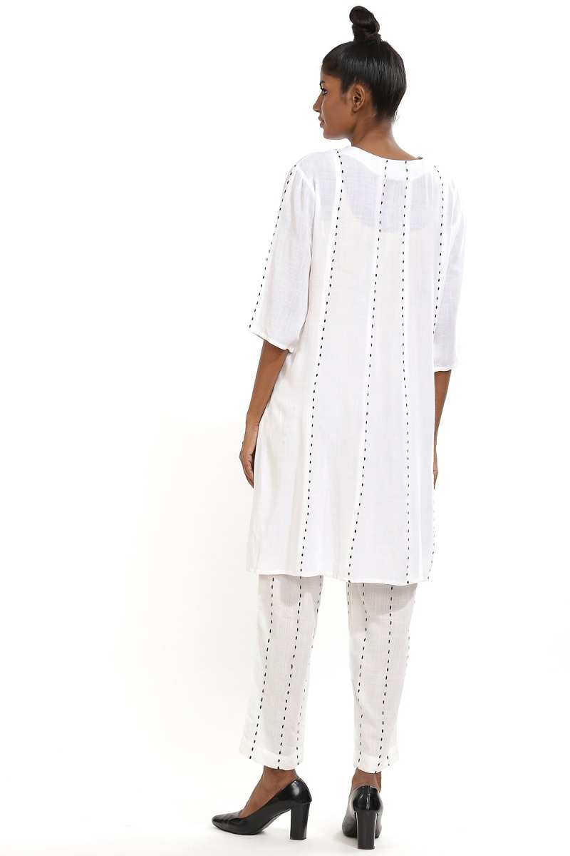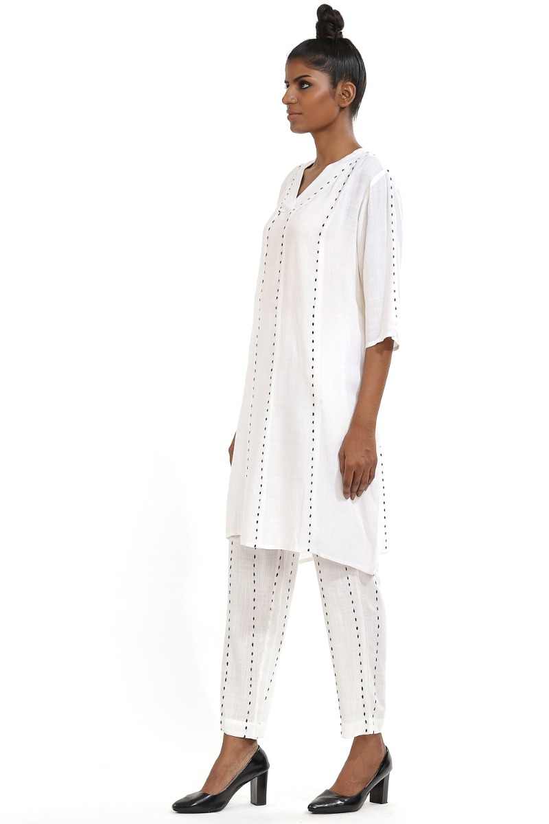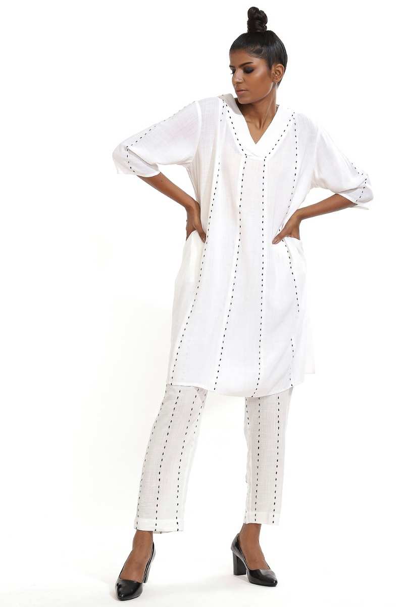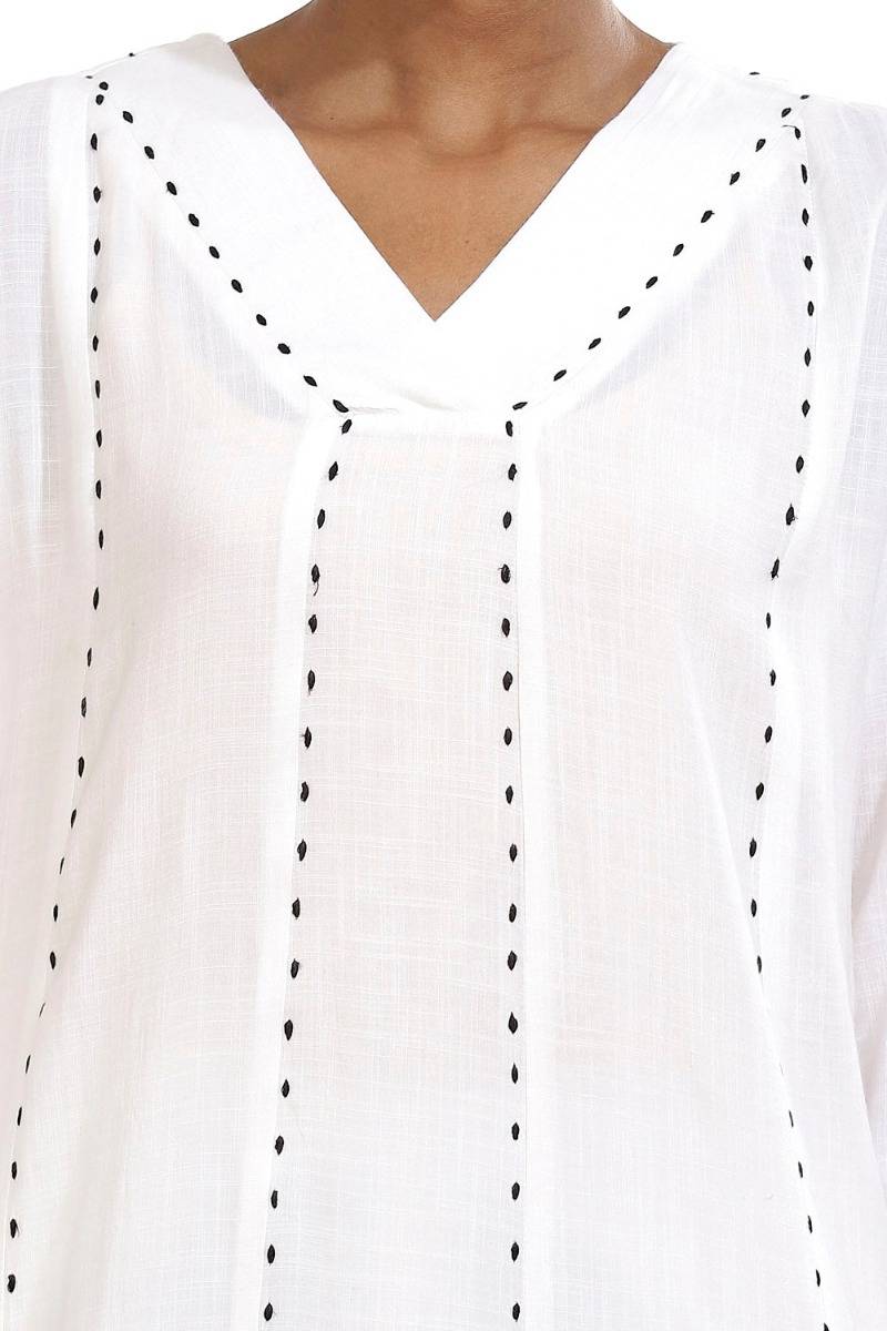 Regular Fit Dress. Contrast Stab Stitch Embroidered On Seam. Garments Are Made From Sustainable Viscose Fabric That Is Washed And Pre-Shrunk To Give A Superior Hand.
