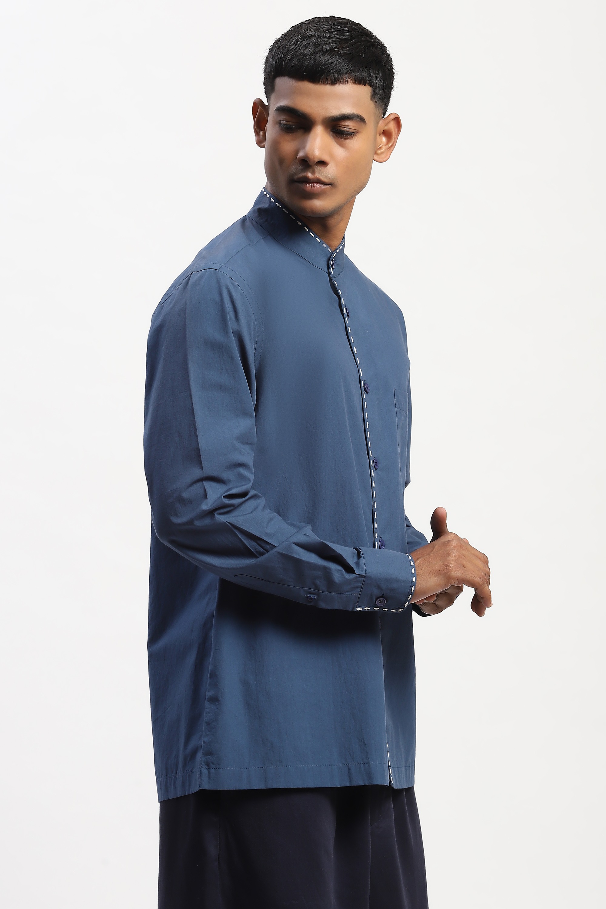This limited edition piece has been made using a fine cotton poplin with embroidered kantha stitch detail.