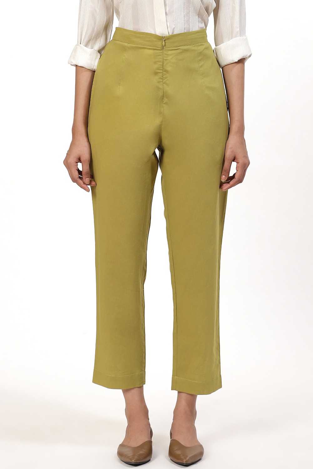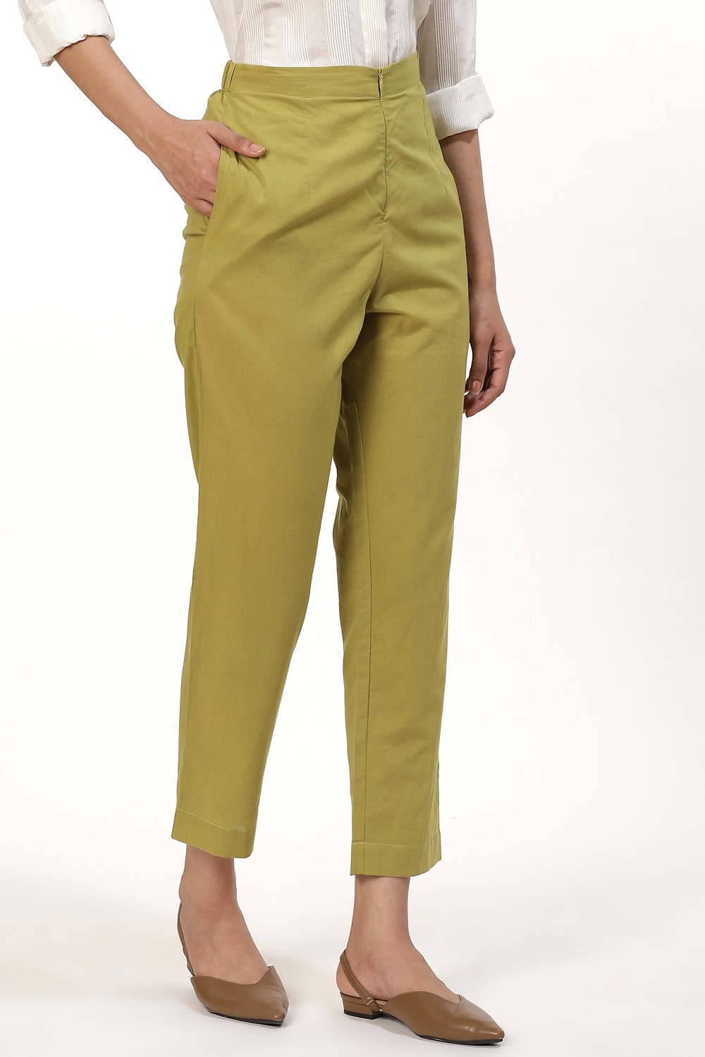 A perfect pair of pants, cut from cotton cambric, for an easy and comfortable fit. We suggest wear yours from a selection of tops or dresses in amla from the new collection and team the look with flat sandals to work or business meetings.