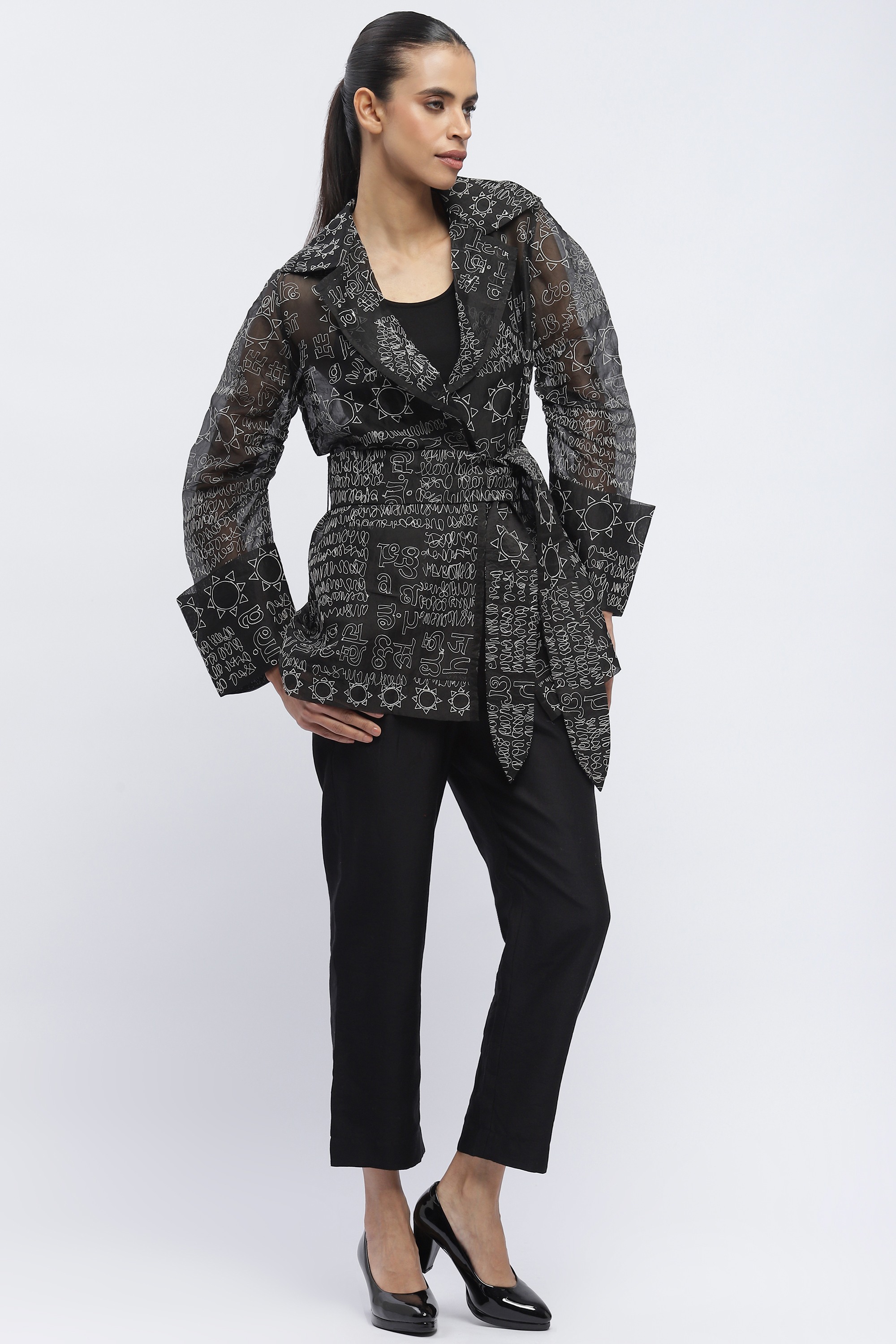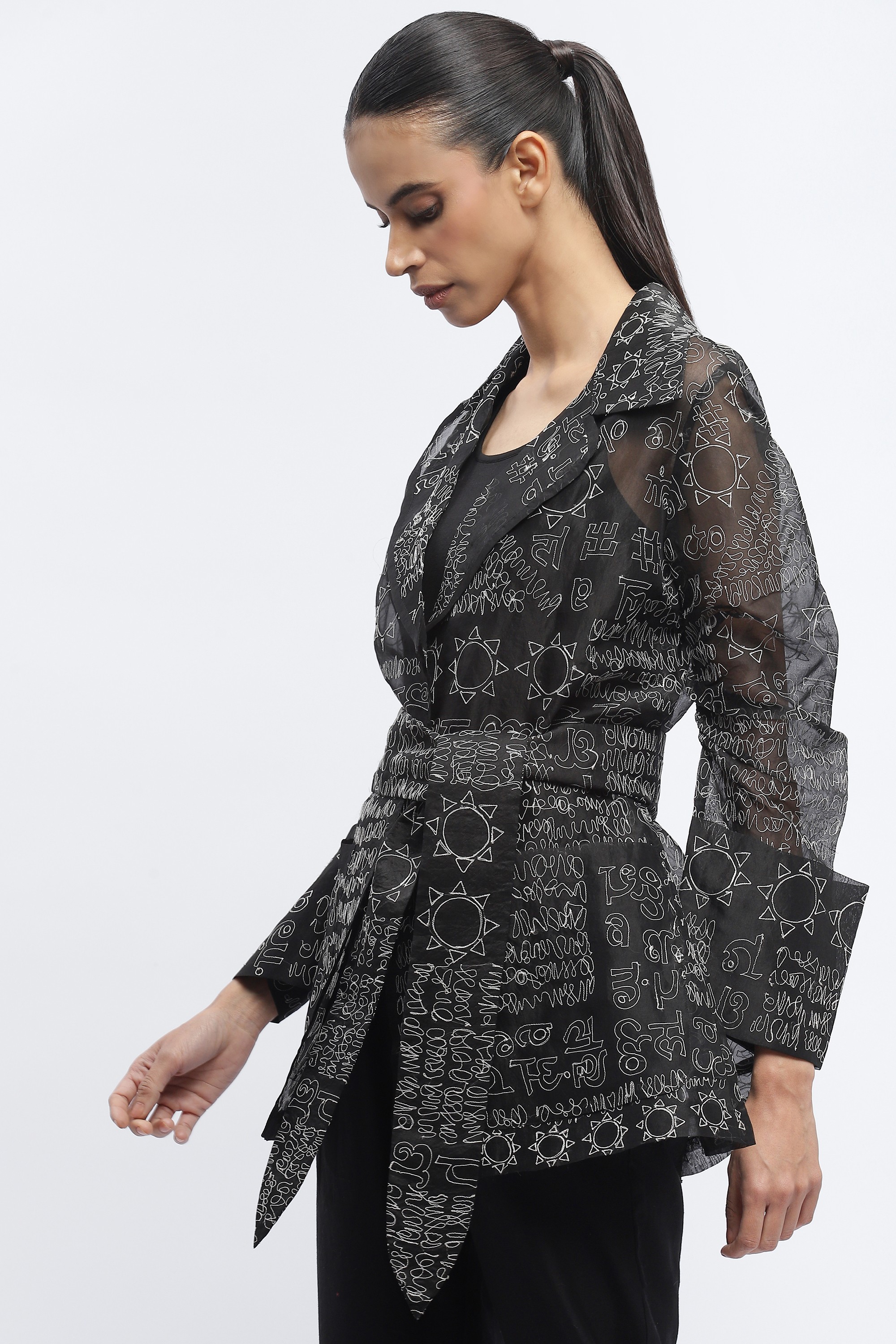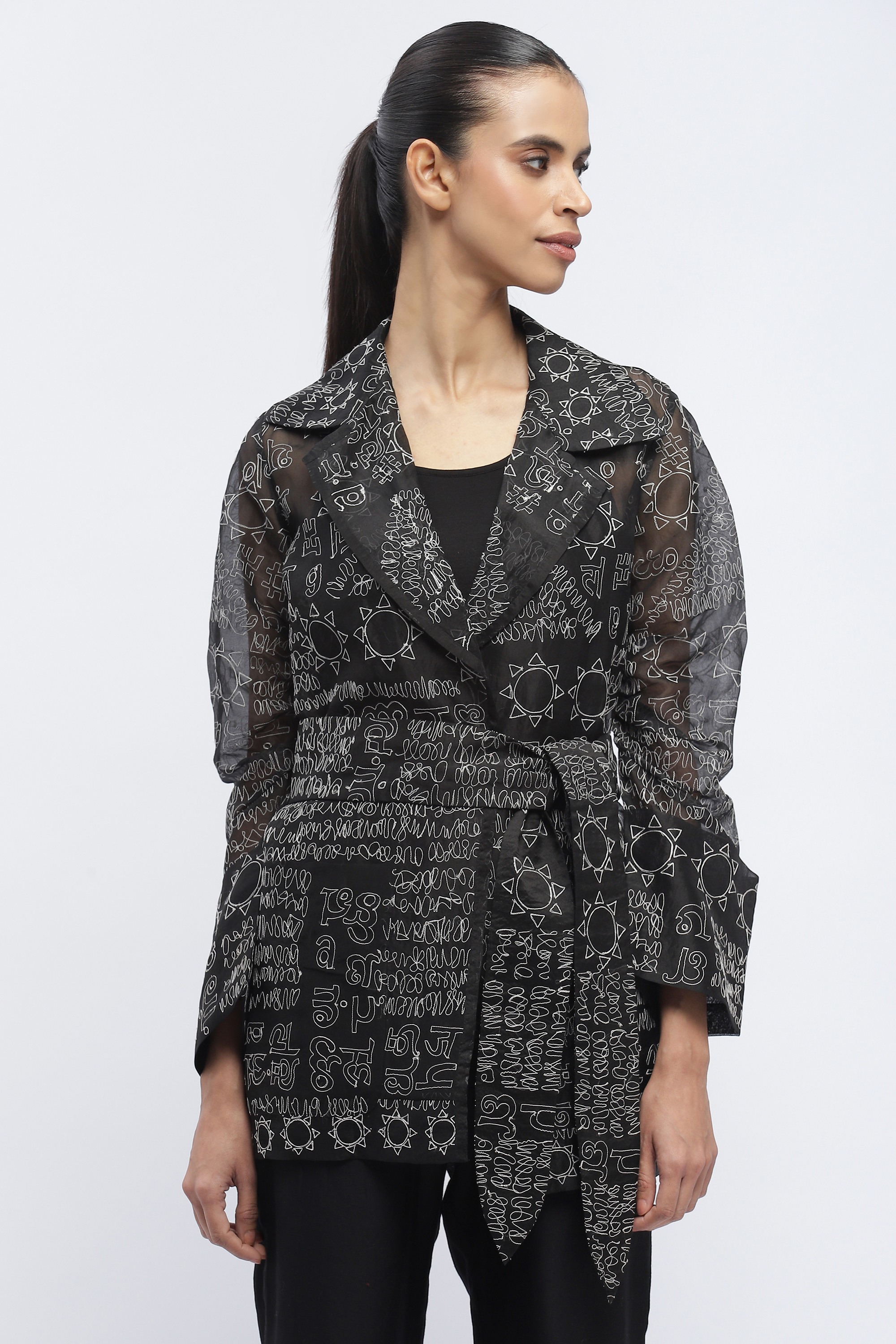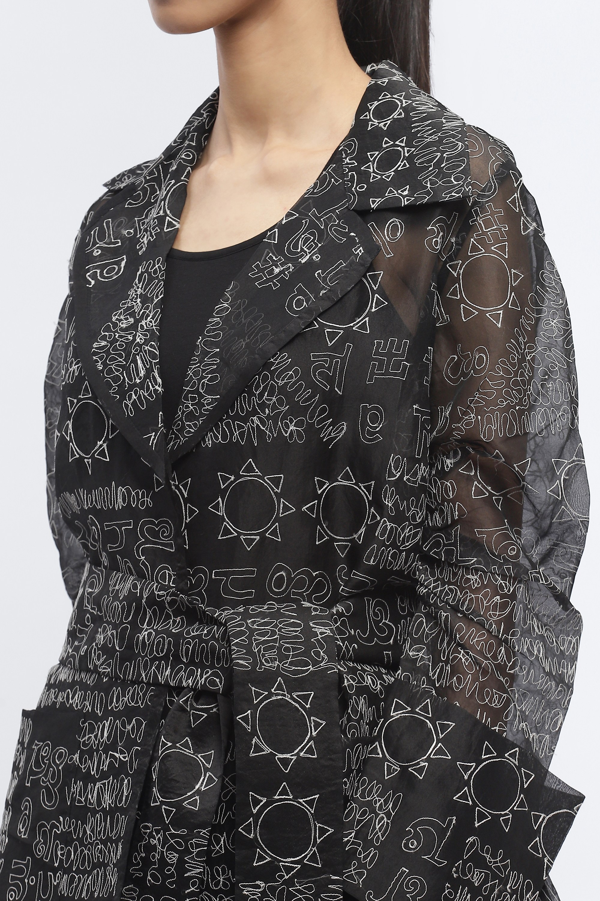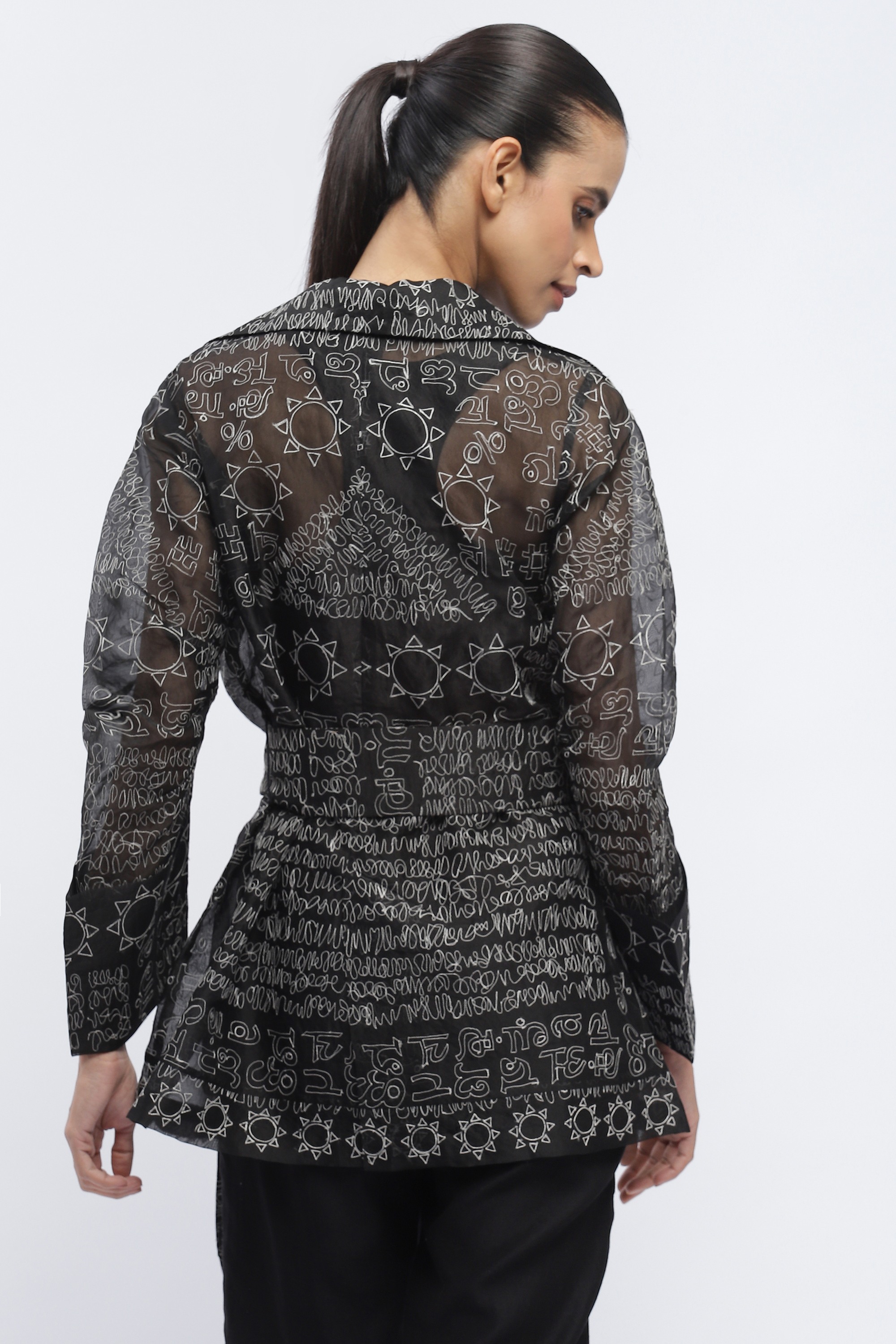 Body Language — from Abraham & Thakore — plays with the idea of the elemental, in language and clothing. Crafted in organza and embroidered with calligraphy motifs in silk.