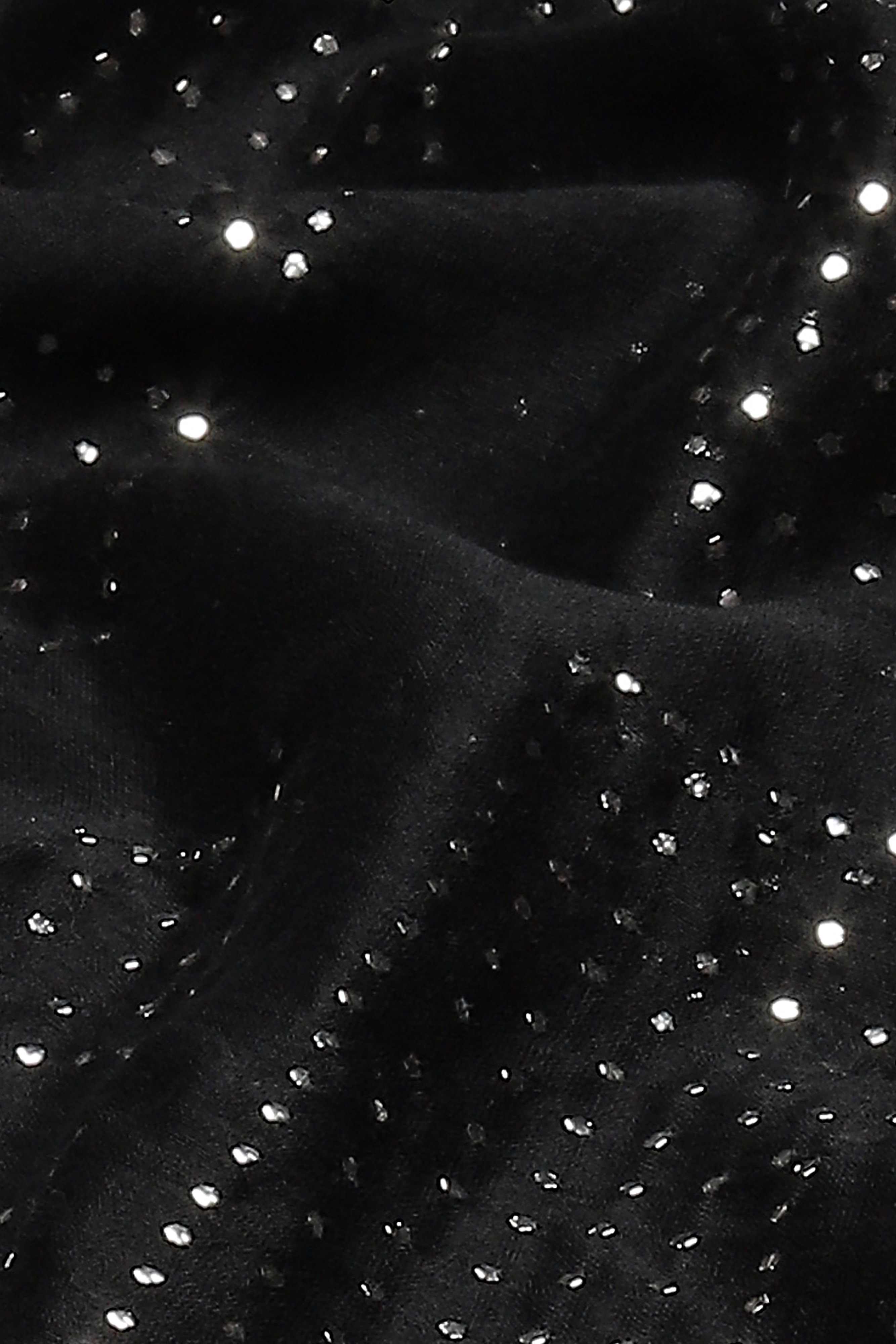 An abridged alphabet, embellished with strips of silver on a black shirt.