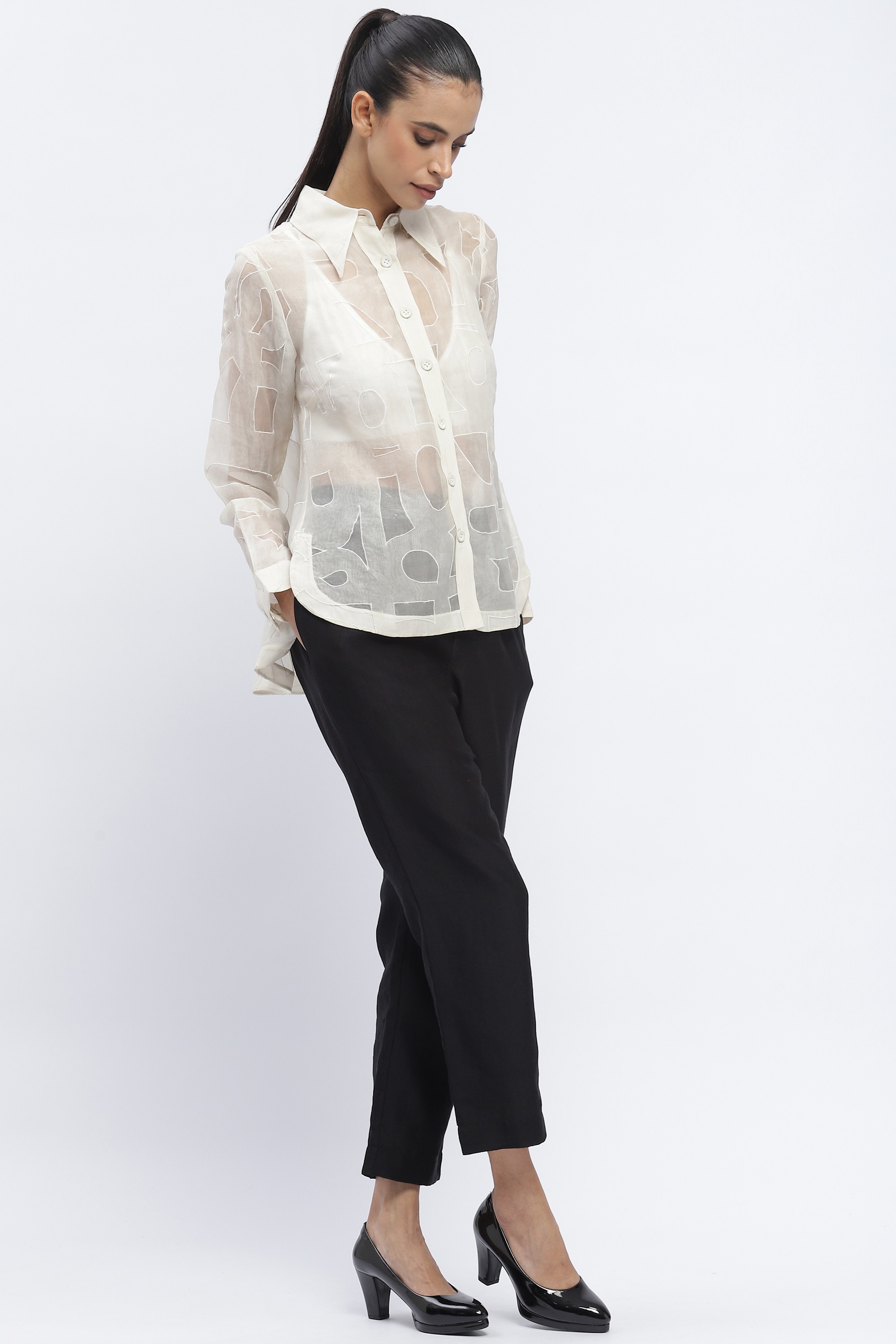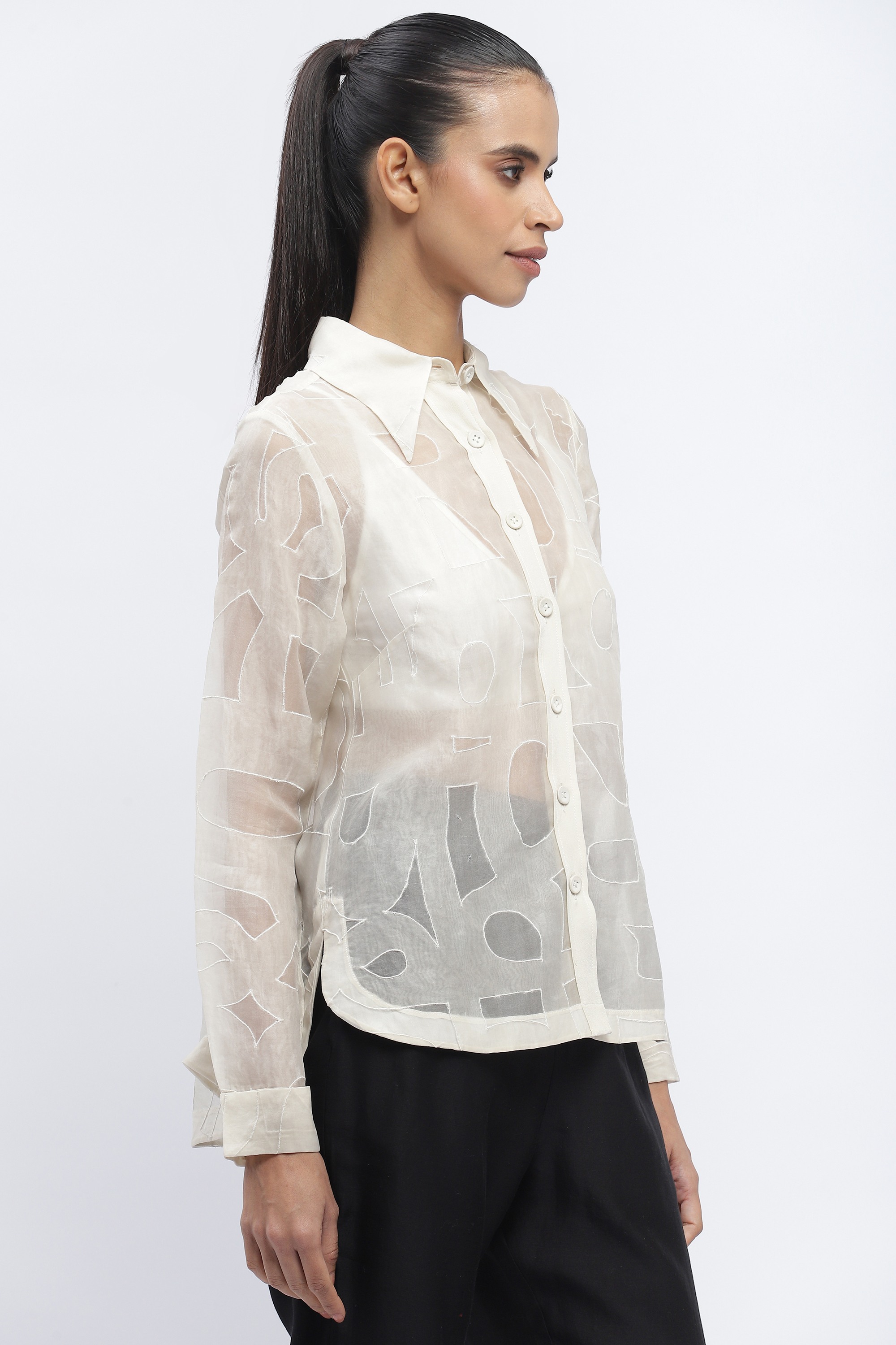 Body Language — from Abraham & Thakore — plays with the idea of the elemental, in language and clothing. Crafted in silk organza and appliqued with oversized calligraphy motifs.