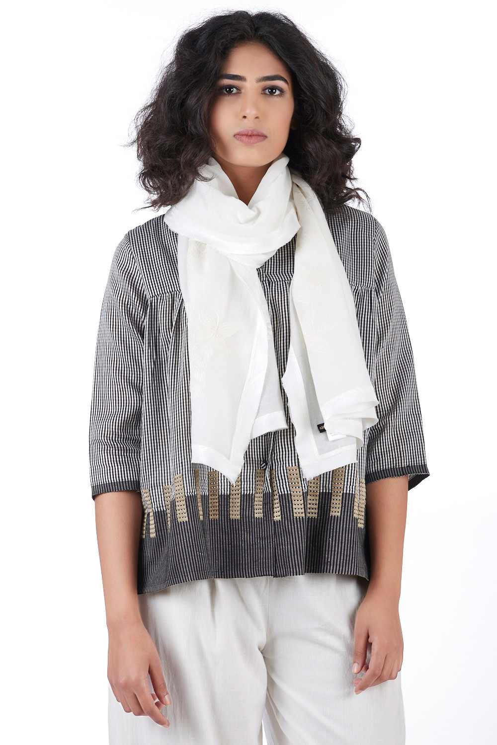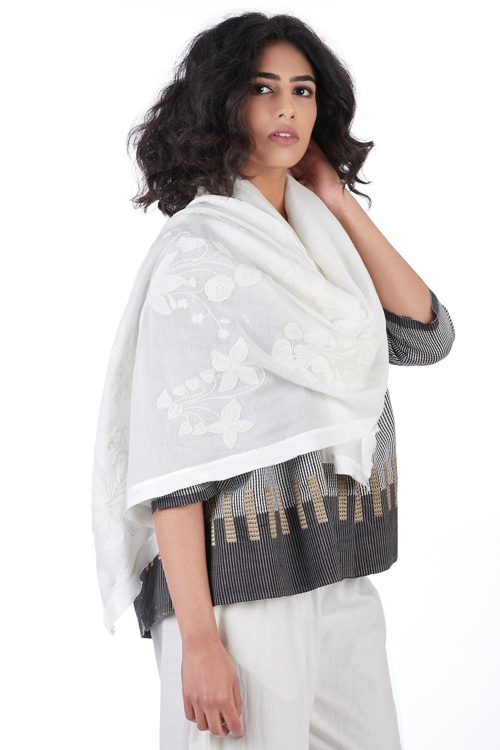 Applique Scarf. Features Applique Cutwork And Embroidered Floral Design. Up Your Style Game By Pairing Our New Scarf Styles And Refreshed Classics In Infinite Ways. Abraham & Thakore Scarves Are Handcrafted And Exclusively Designed - Produced In Very Limited Editions