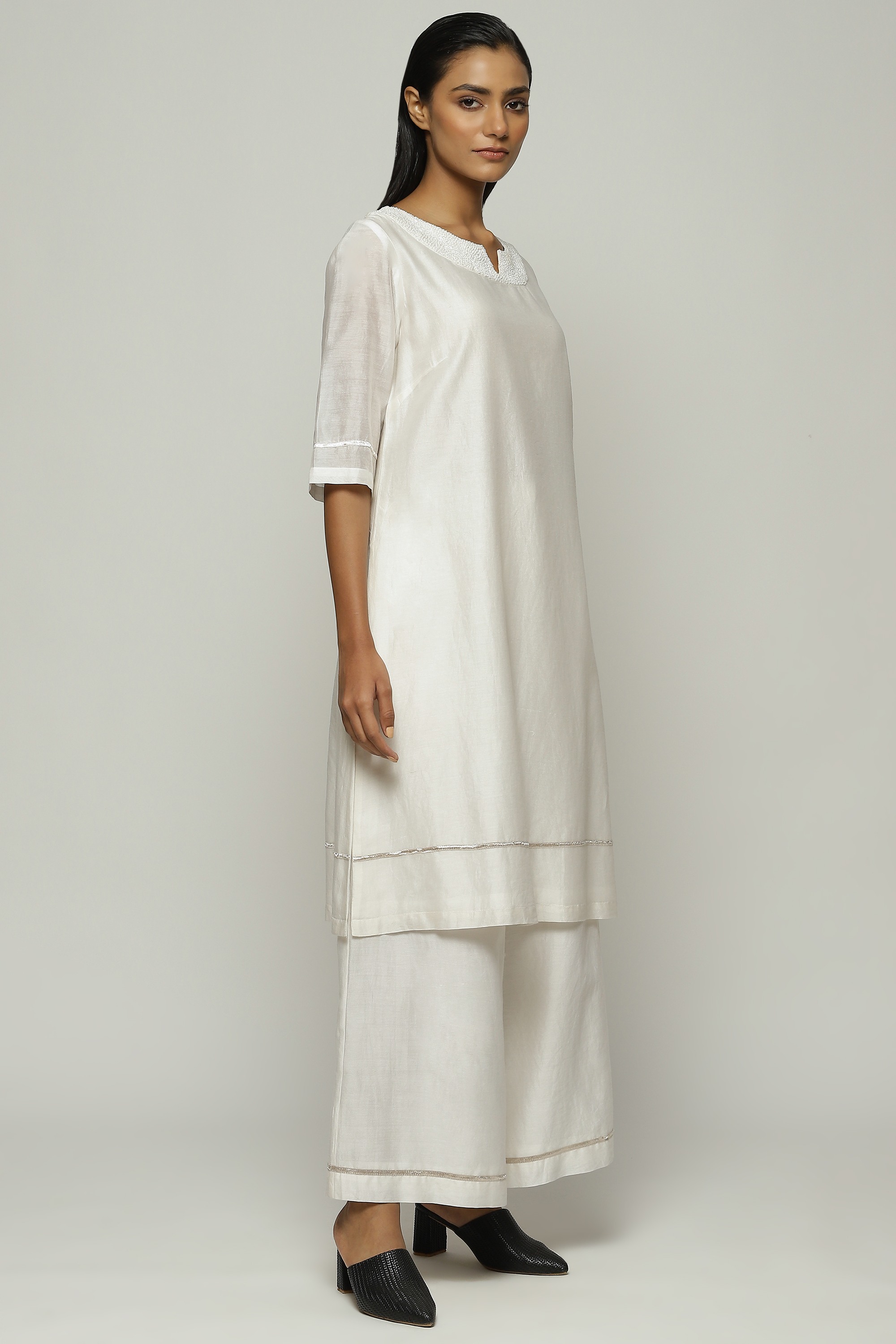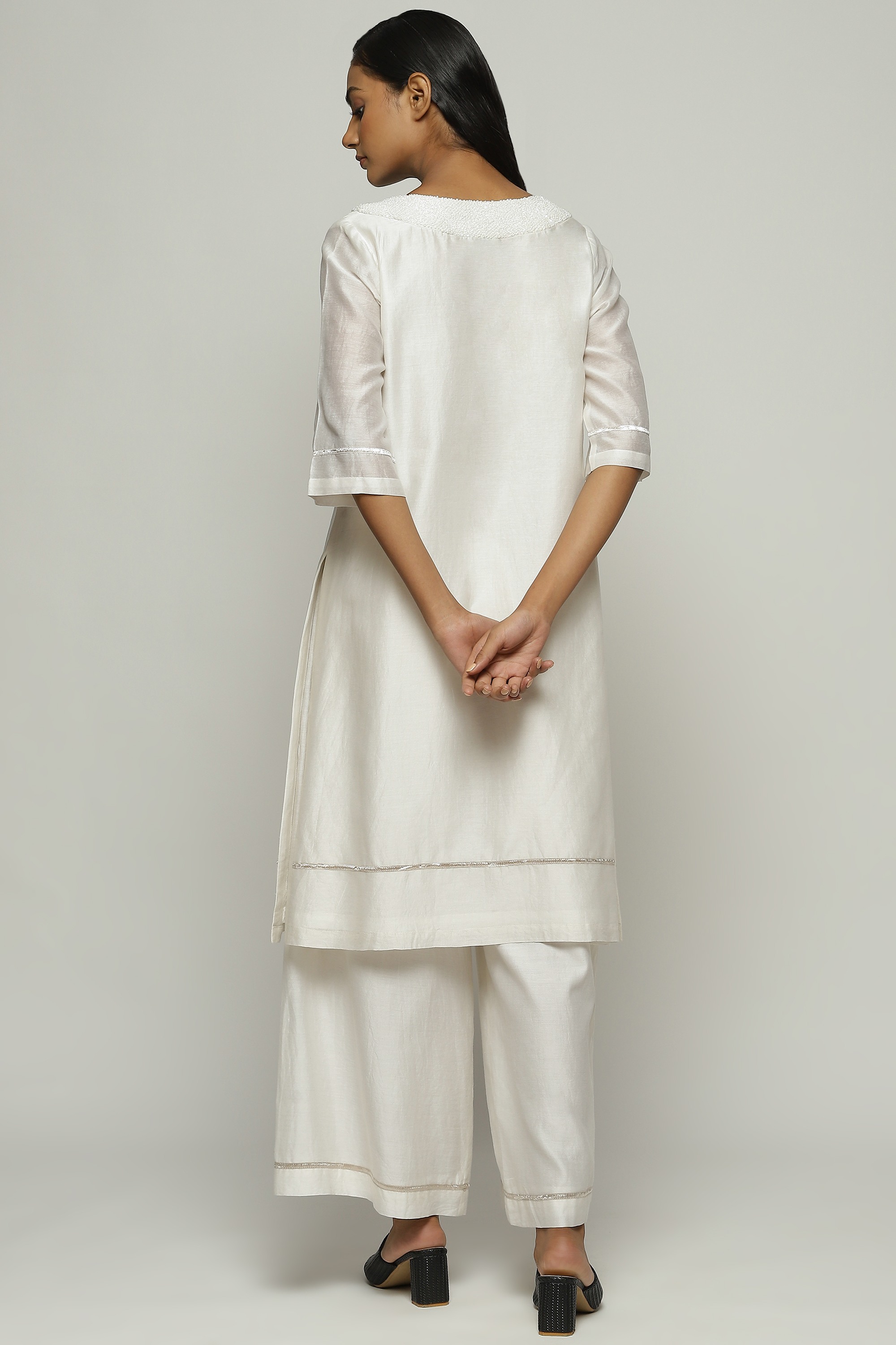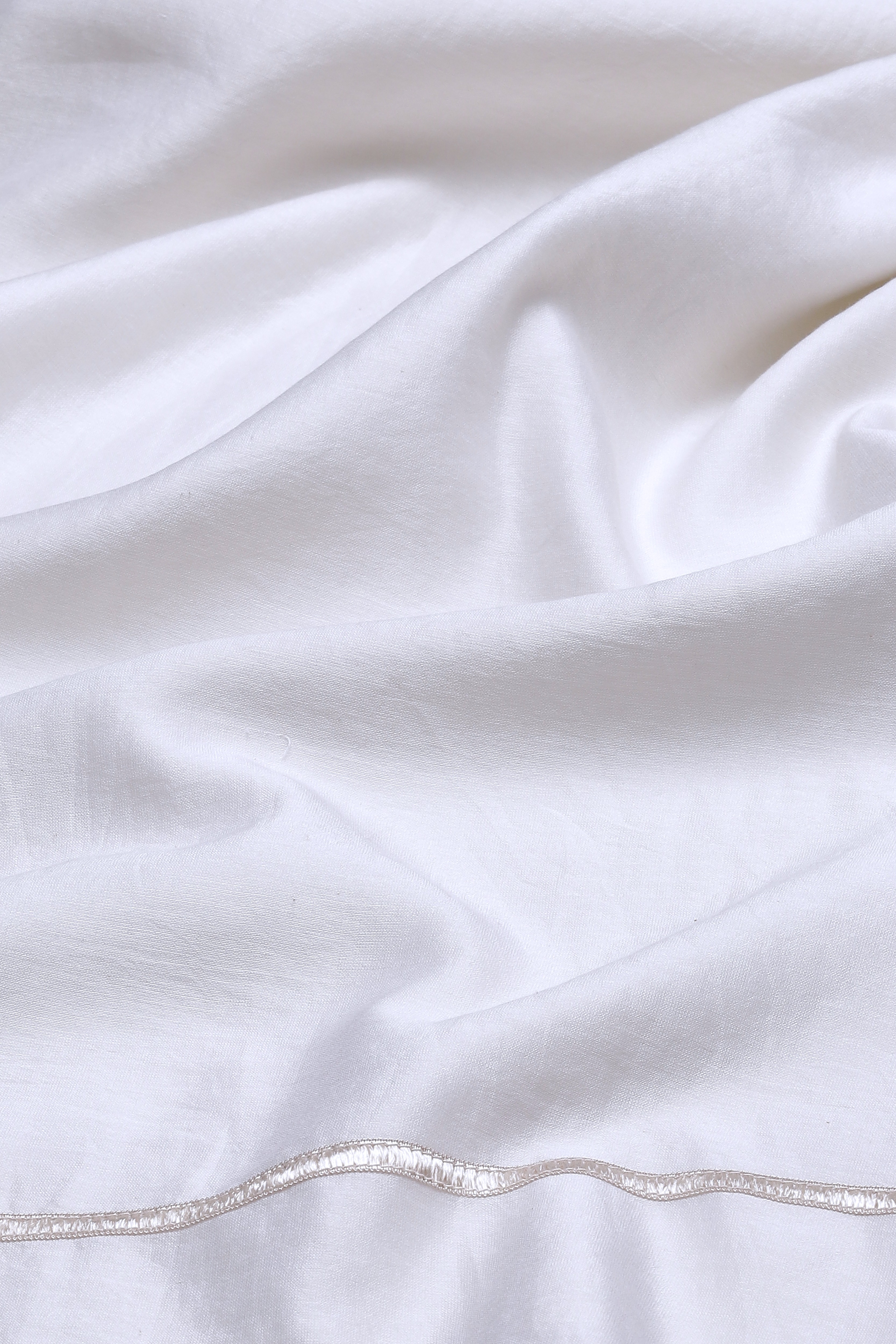 Body Language, from Abraham & Thakore, deconstructs the rules of language on fabric. Crafted in Chanderi and hand adda embroidered with thread, sequins and lace.