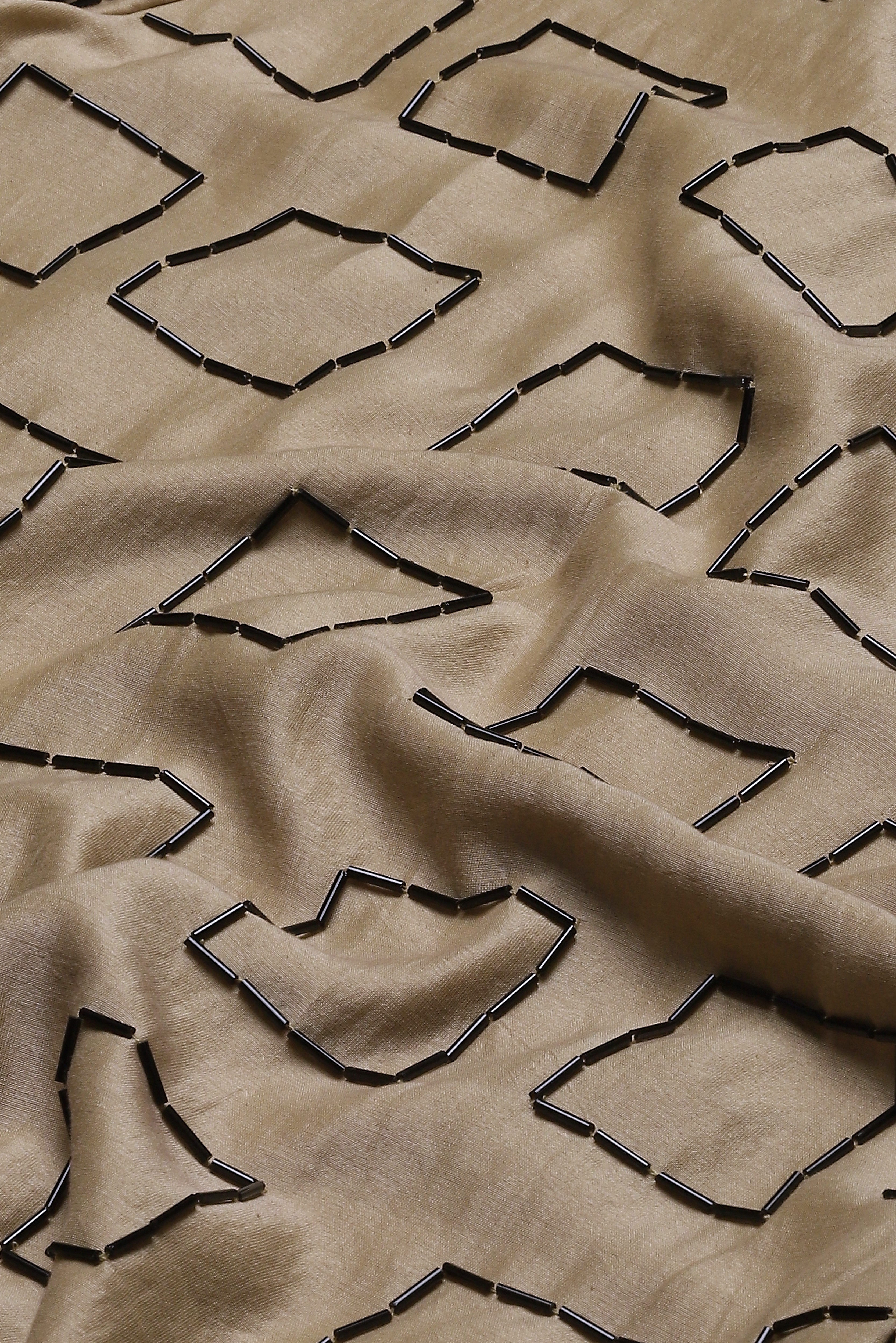 Crafted from luscious Chanderi, this piece is hand adda embroidered with white bugle beads.