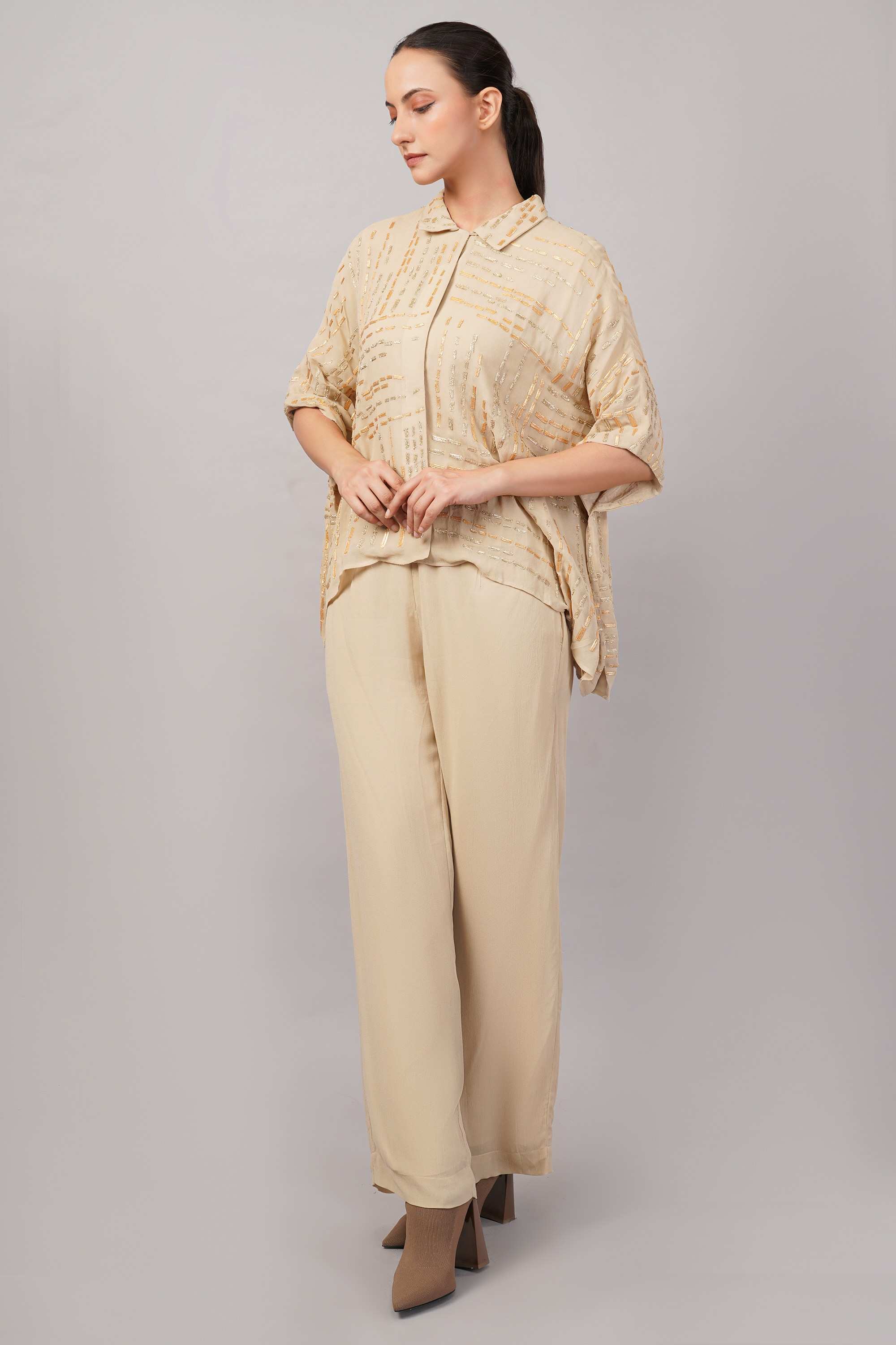 Technique Description : Matching Embroidery Is Done Using Gota Thread In The Fabric To Create Subtle, Textured Patterns.