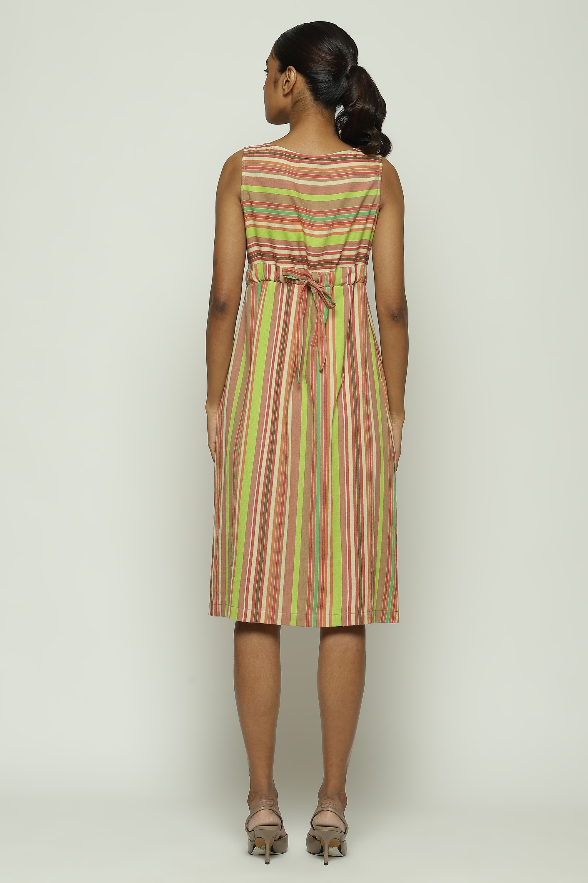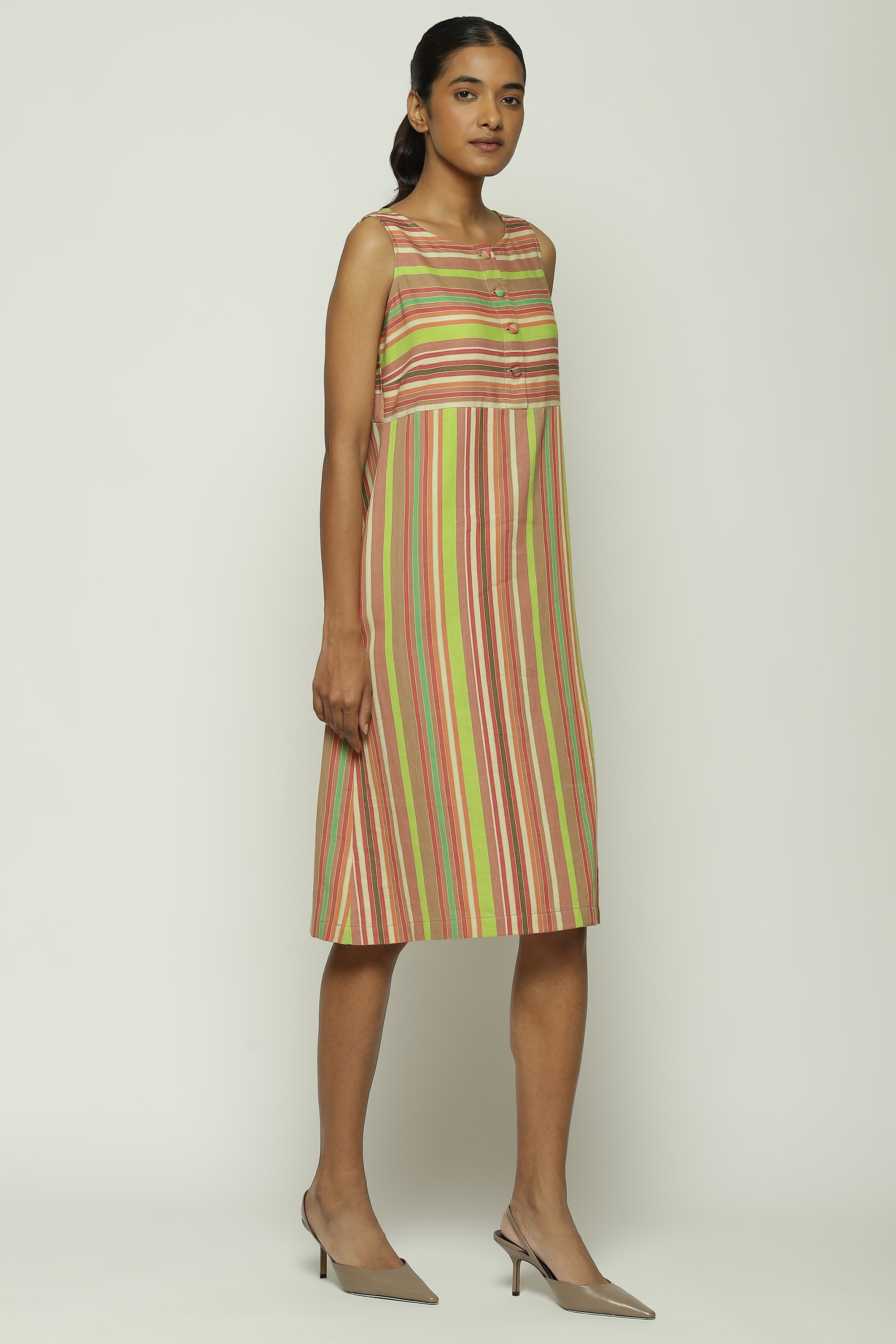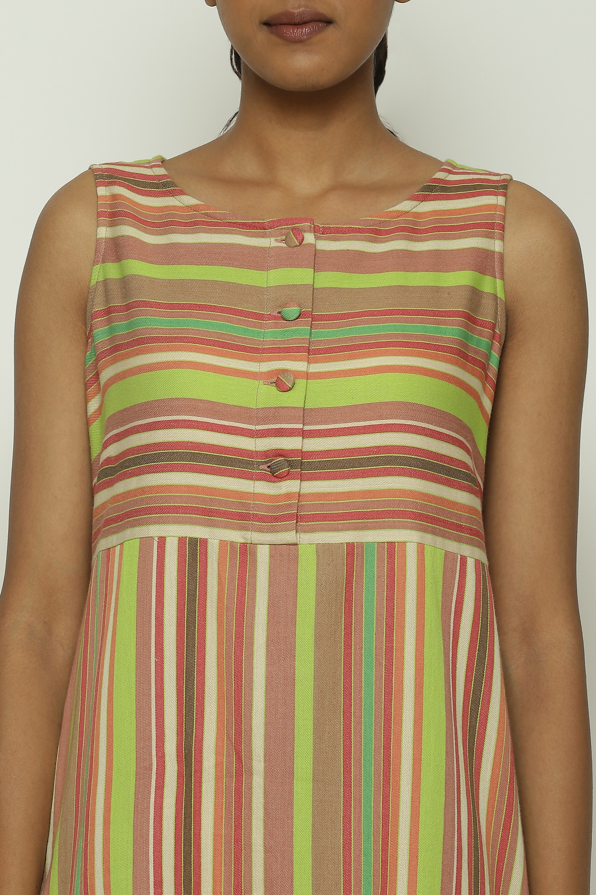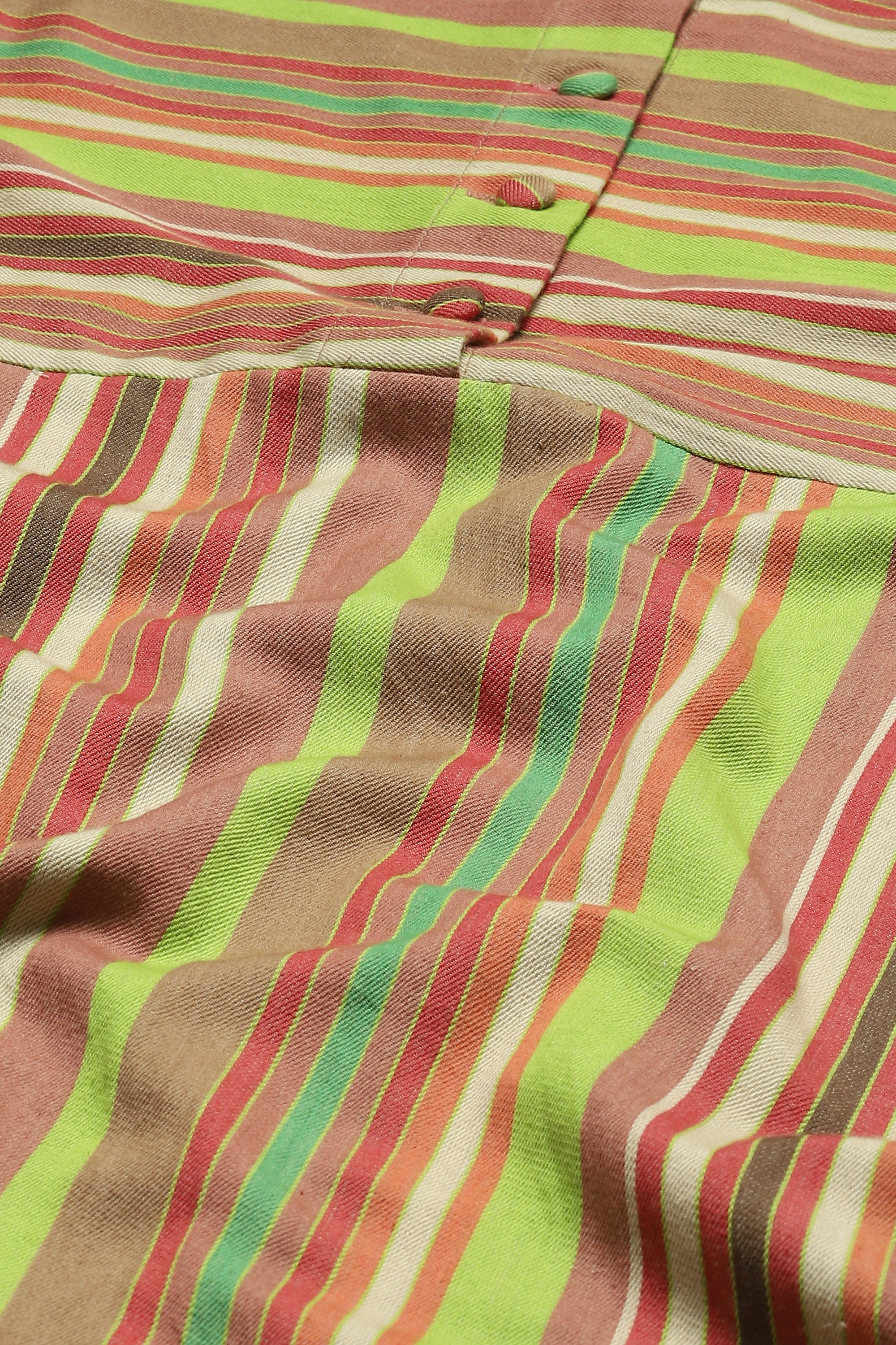 GREEN MULTICOLOUR WOVEN STRIPES DRESS