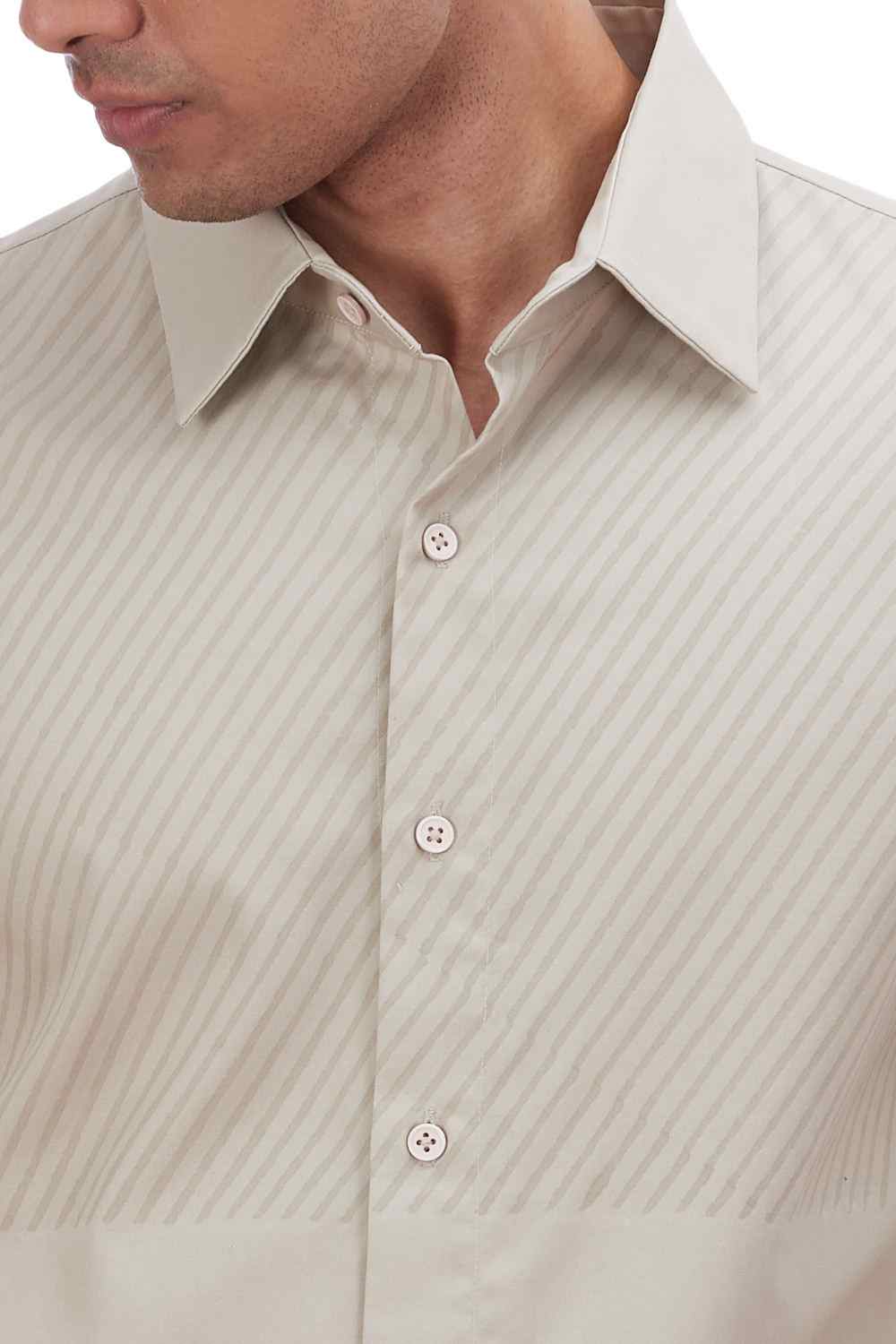 Semi-Formal Classic Shirt. Crafted In Lightweight 100% Cotton. Features Hand Block Print Stripes With Our Signature Regular Fit