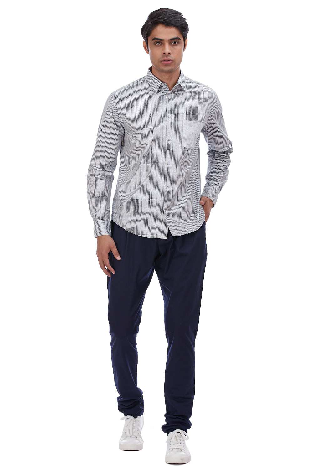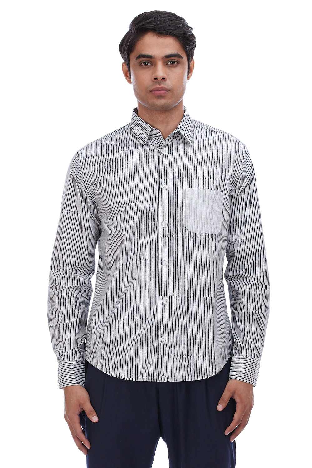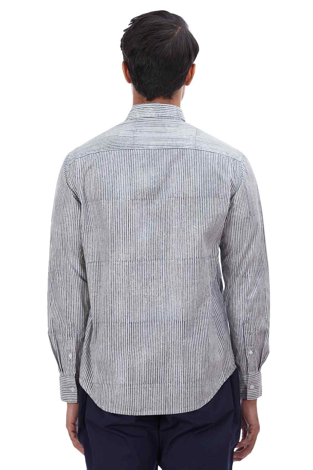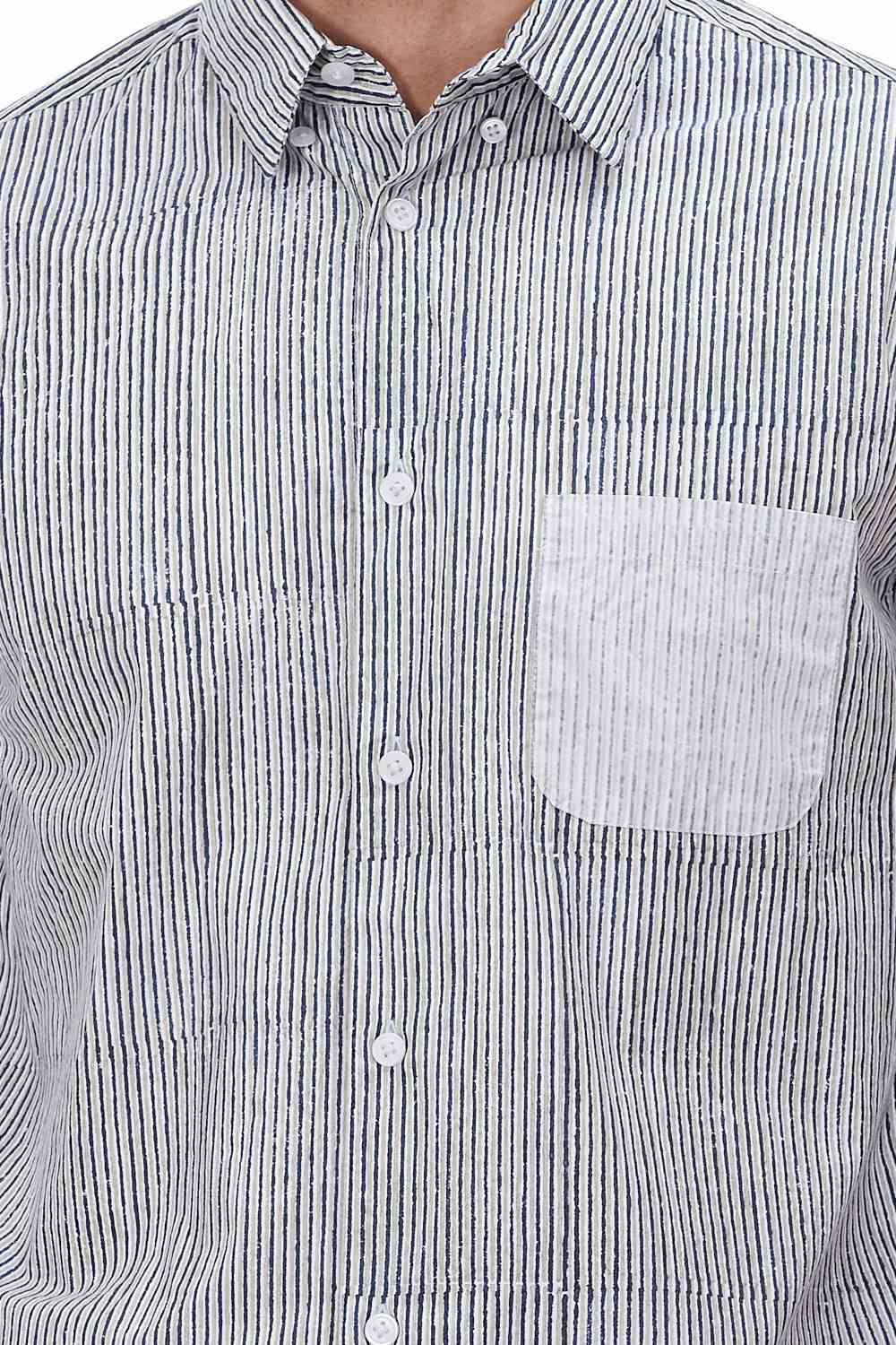 Regular Fit Shirt. Features Bespoke Hand Block Printed Stripes. Crafted In Lightweight 100% Cotton. Abraham & Thakore Shirts For Men Have Been Crafted In Lightweight Natural Textiles In Regular And Slim Fits, Employing Various Traditional Textiles Techniques