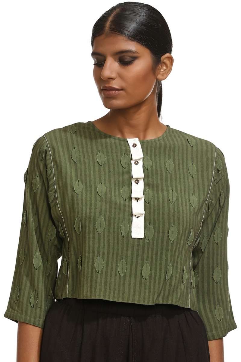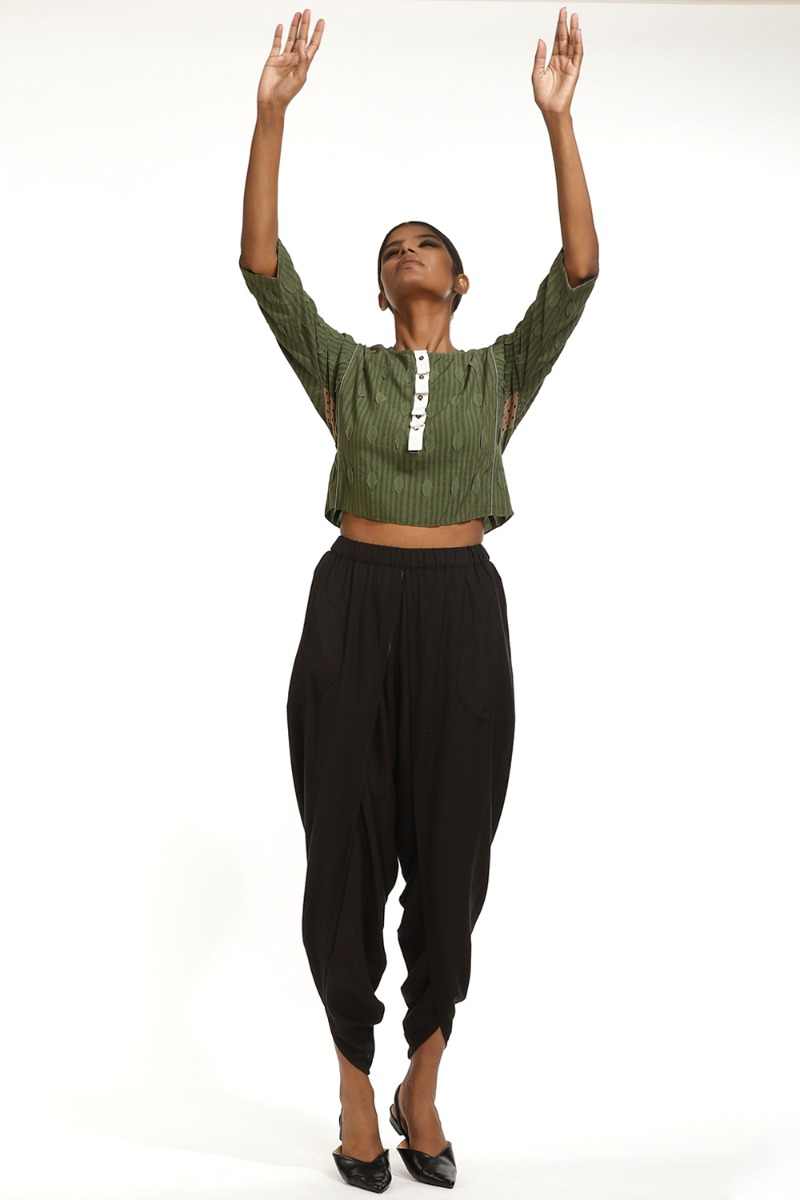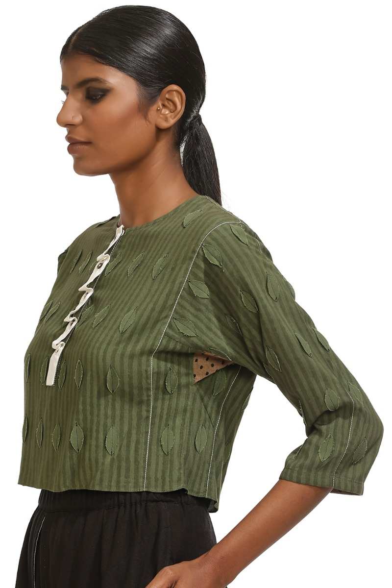Our Handblock Printed Leaf Crop Top Is From Limited Catwalk Collection Showcased In August 2019 At Lakme Fashion Week In Mumbai. This Garment Is Exclusively Handcrafted Using An Environmentally Sustainable Viscose