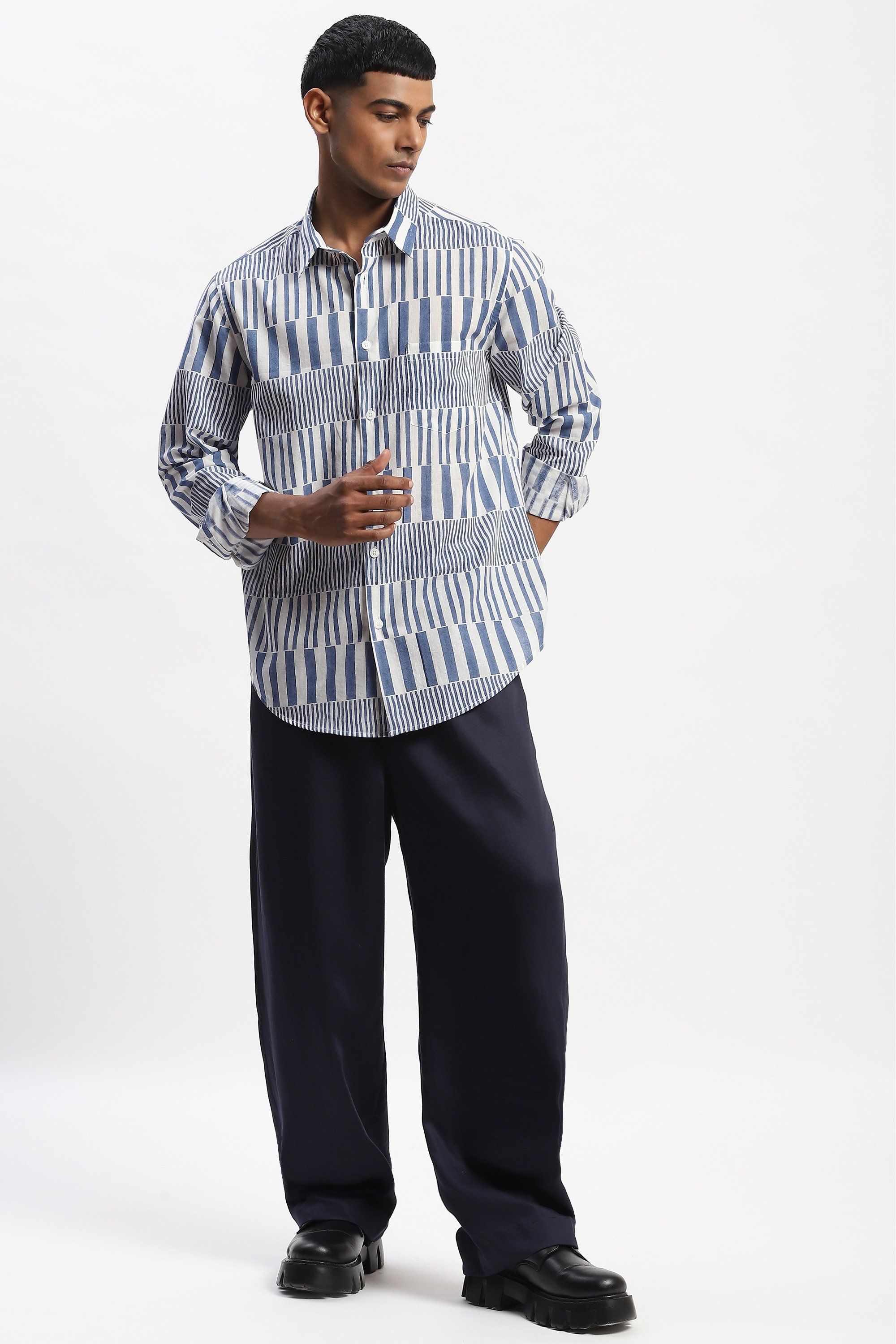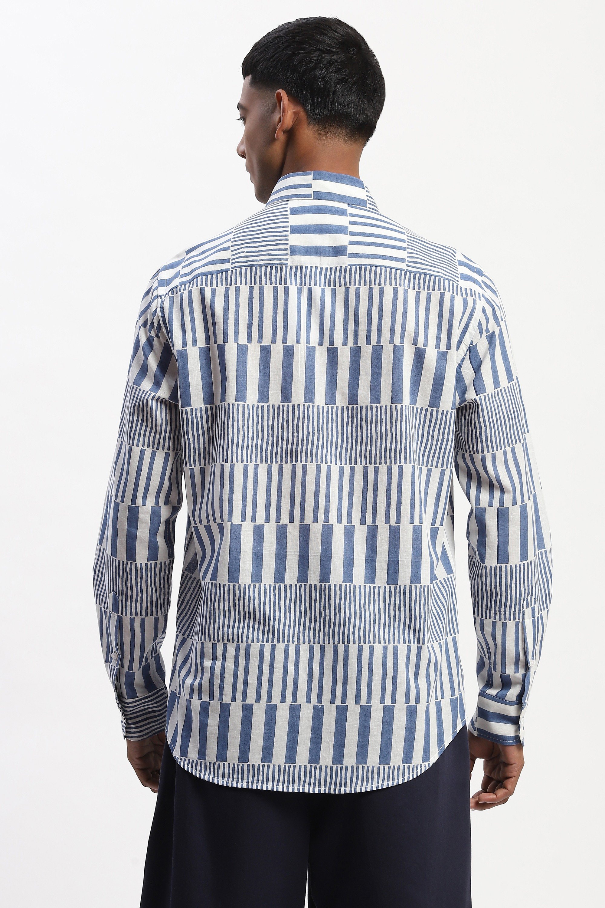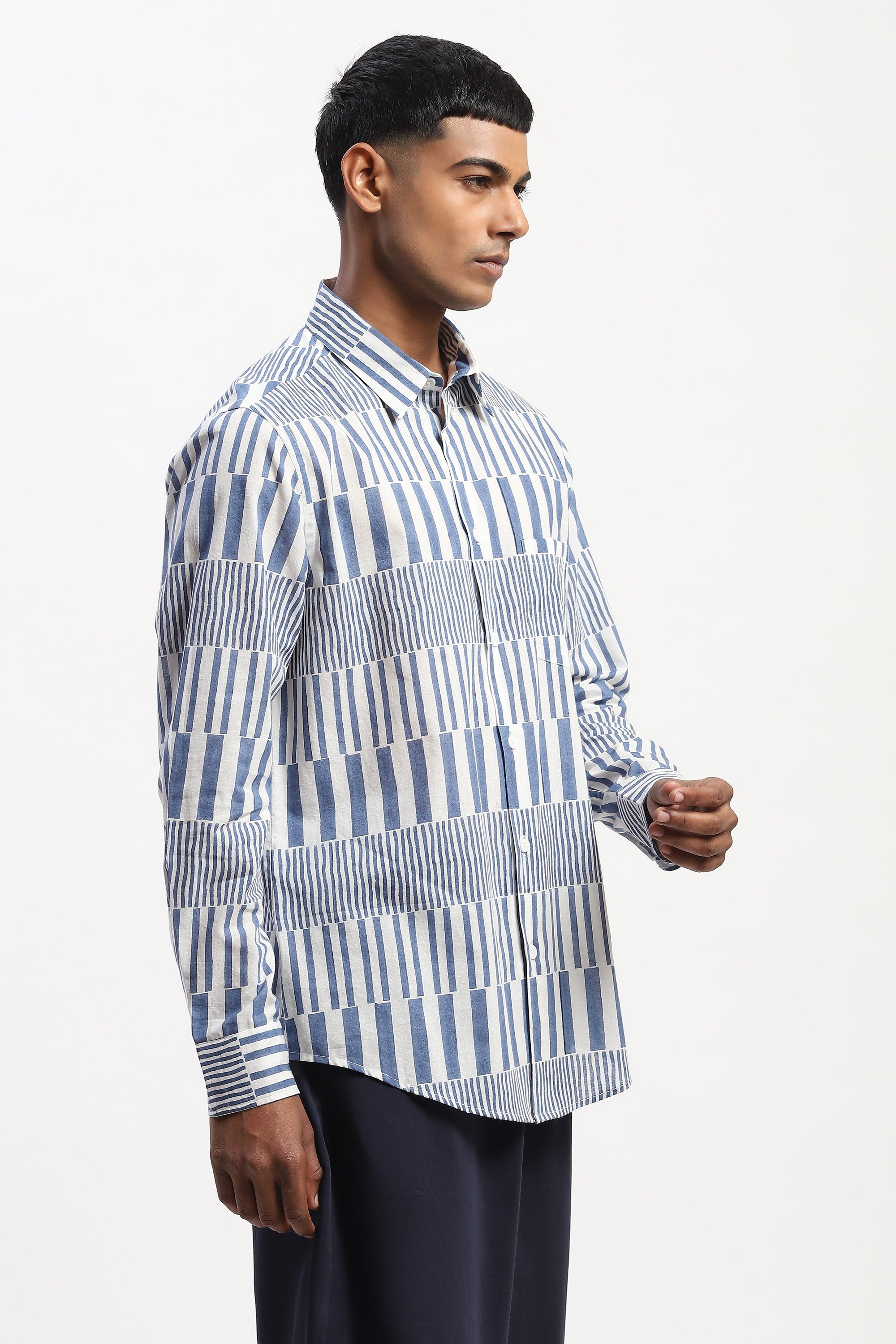 This limited edition piece has been made using fine cotton which has been hand blocked printed in Jaipur with an all over pattern to create a graphic effect. The uneven effect is intrinsic to the block printing process and a celebration of the hand done.