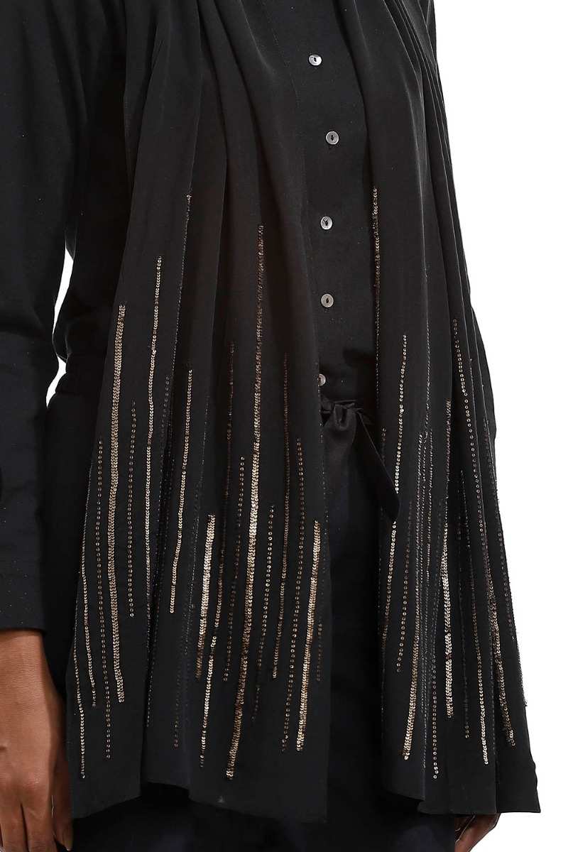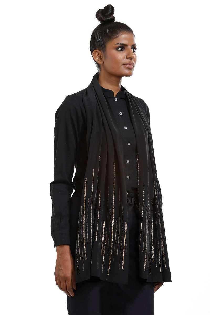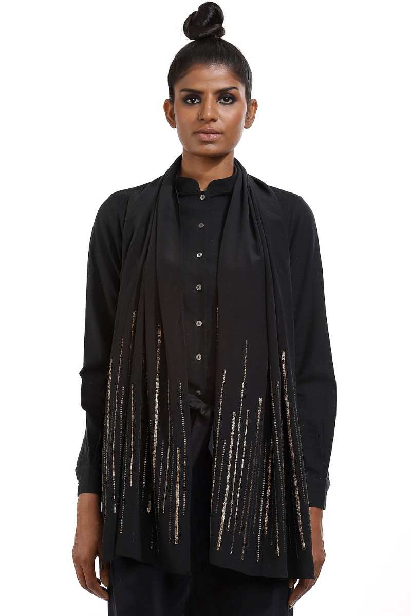 Hand Embroidered Silk Scarf Black