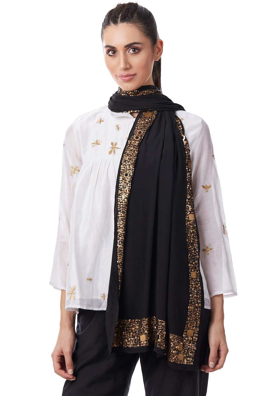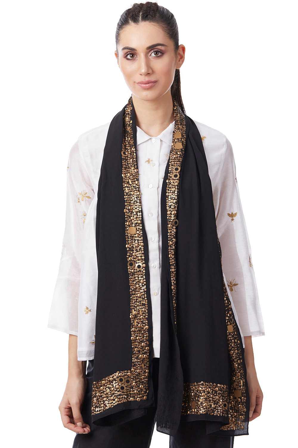 Hand Embroidered Silk Scarf, With Assorted Sequins Around The Border. Abraham And Thakore Scarves Are Handcrafted And Exclusively Designed, Produced In Very Limited Editions Up Your Style Game By Pairing Our New Scarf Styles And Refreshed Classics In Infinite Ways.