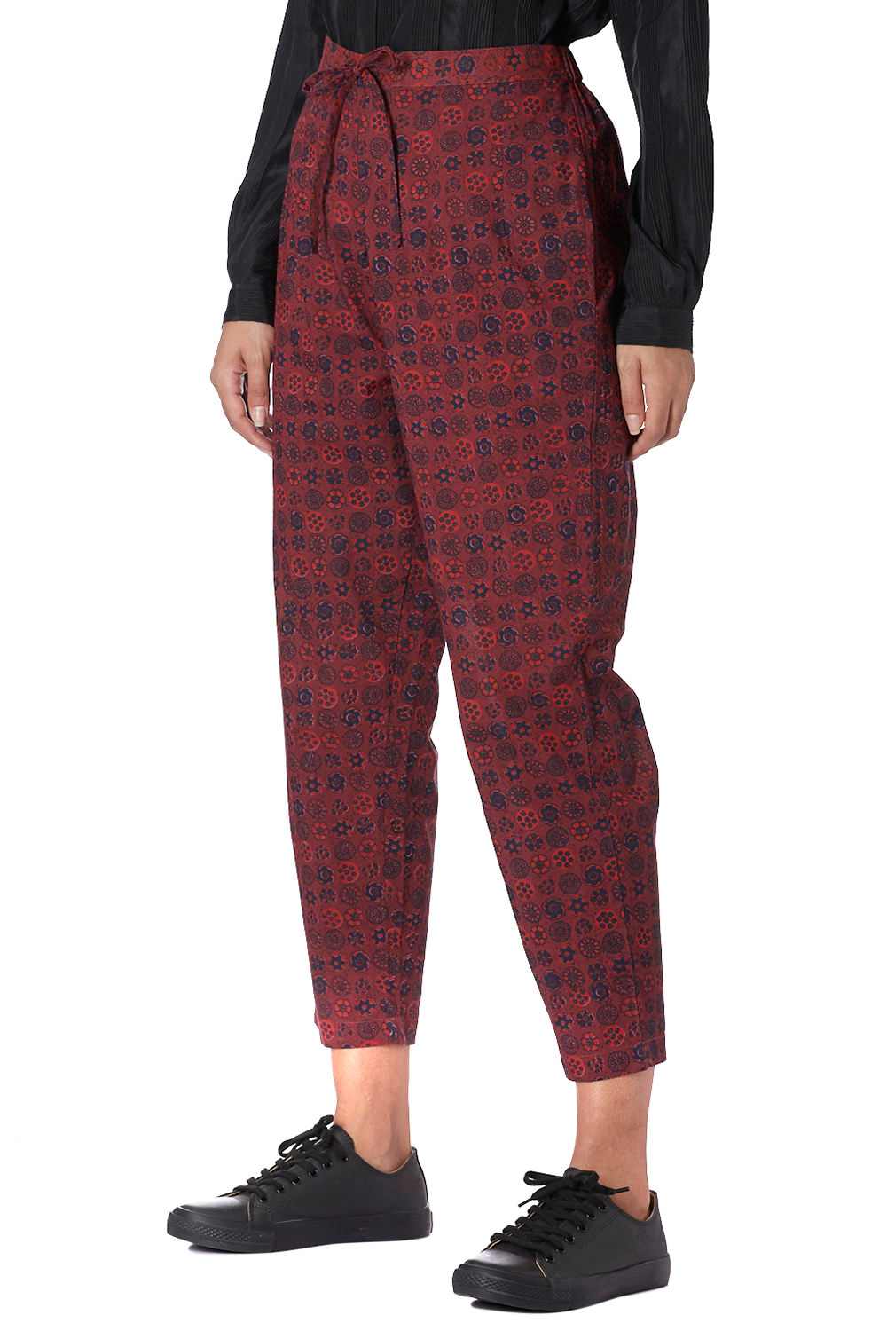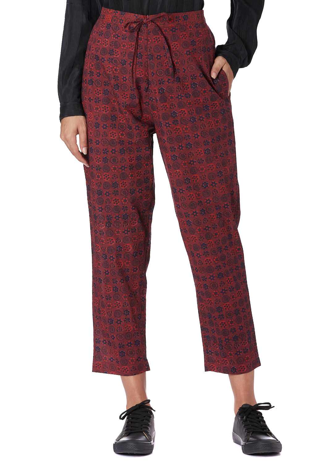 Hand Printed Coromandel Cropped Pants Wine