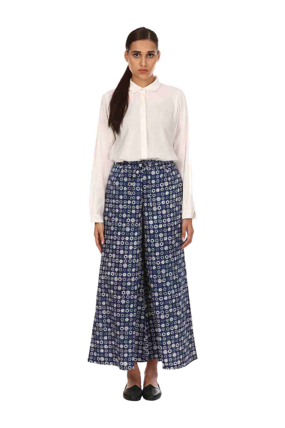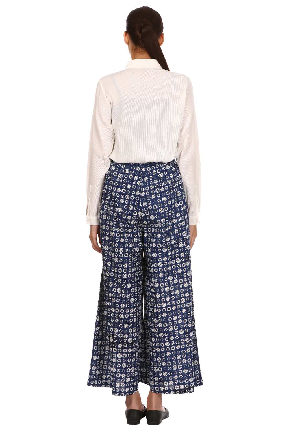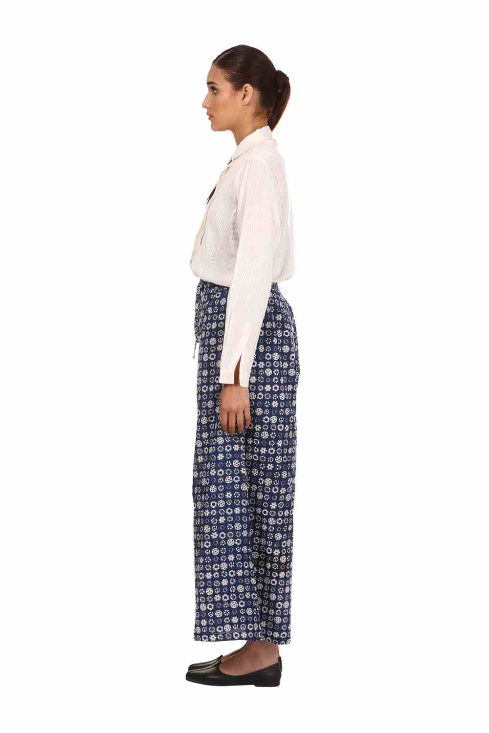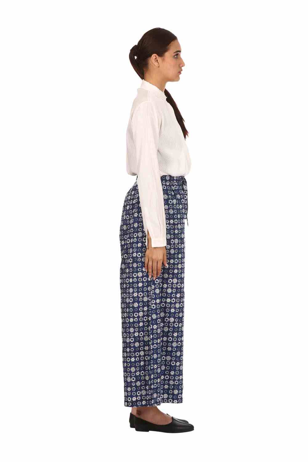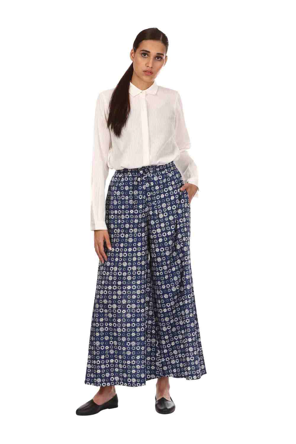 Hand Printed Coromandel Palazzo Pants Cobalt Blue