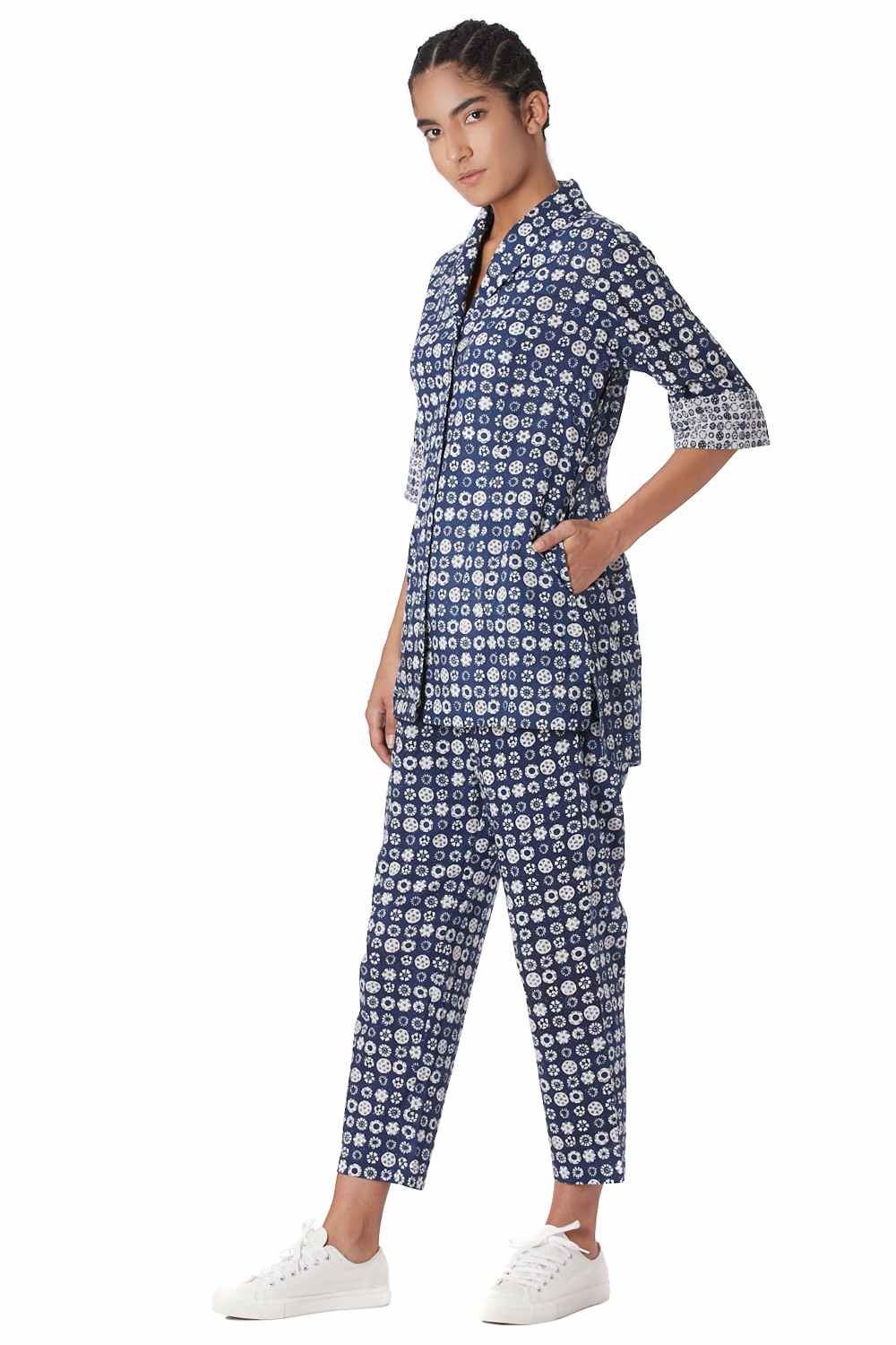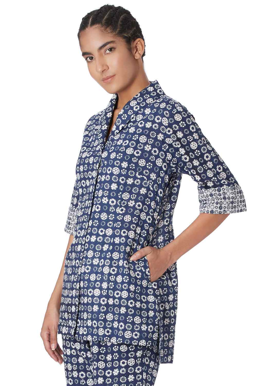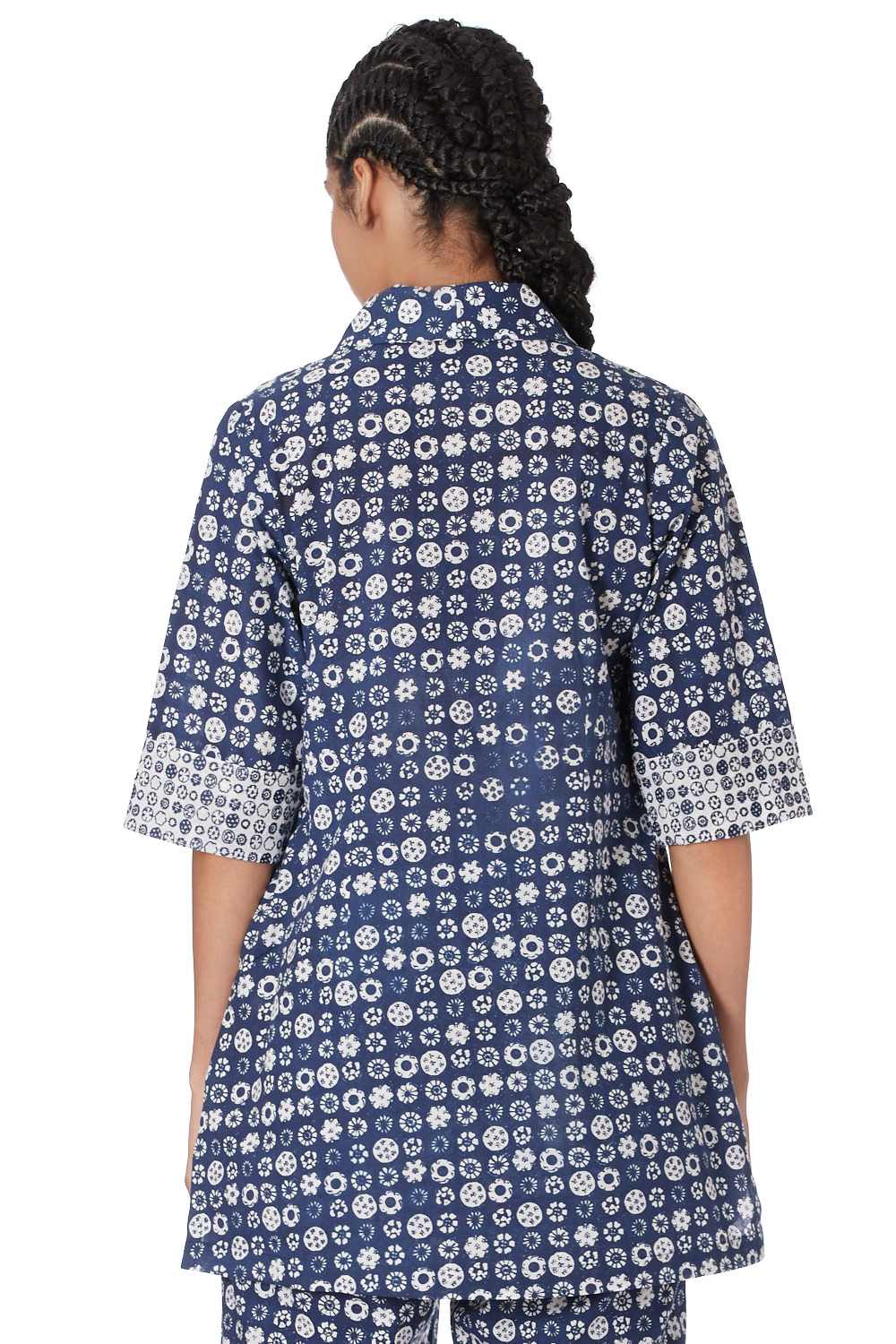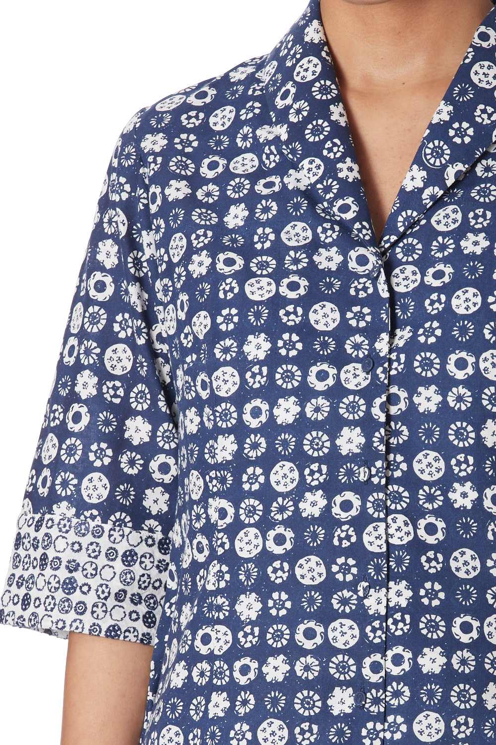 Button Down Shirt. Hand Printed All Over Coromandel Pattern With Specially Made Self Cover Fabric Buttons. Available In Two More Color Options.