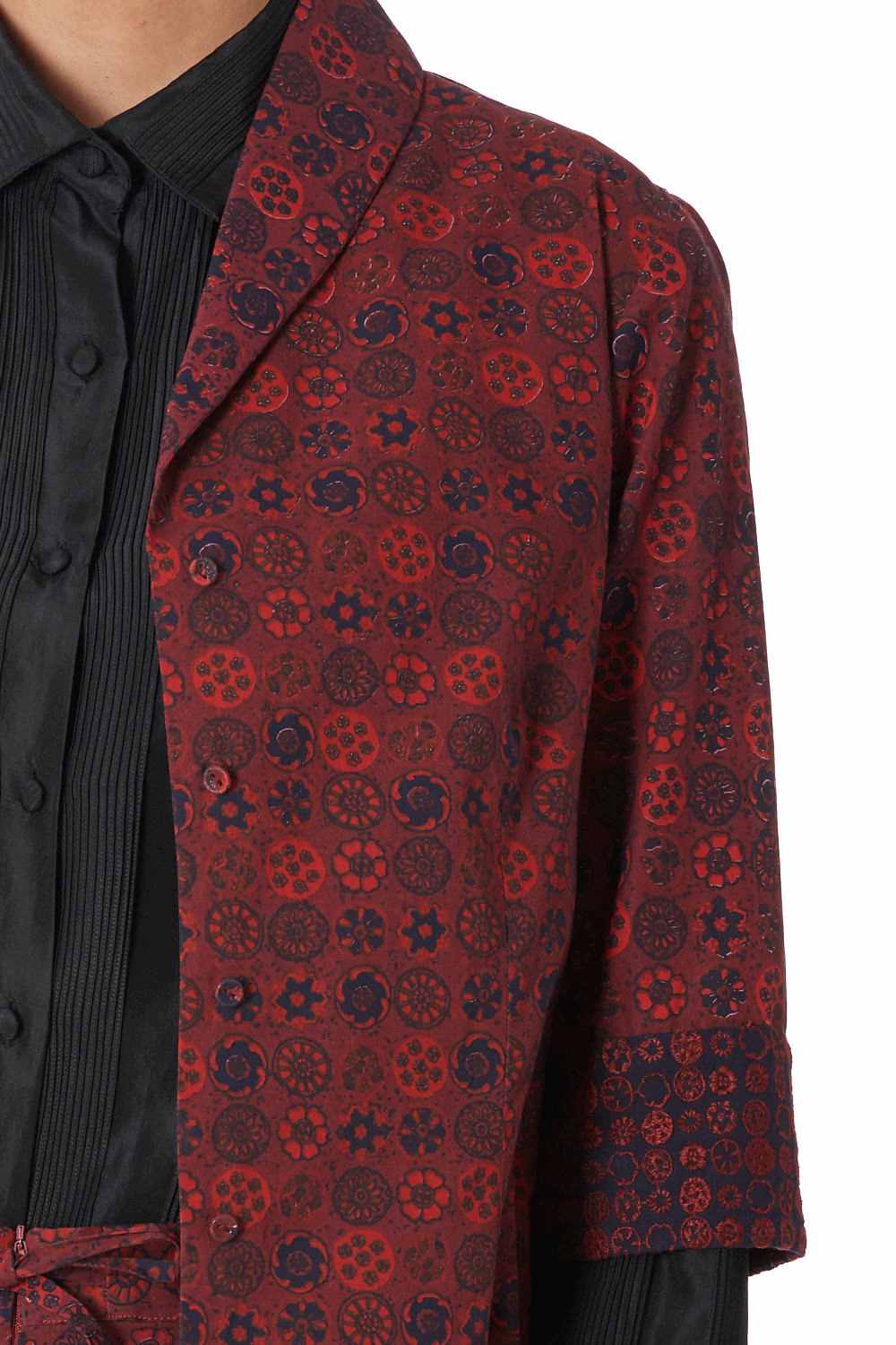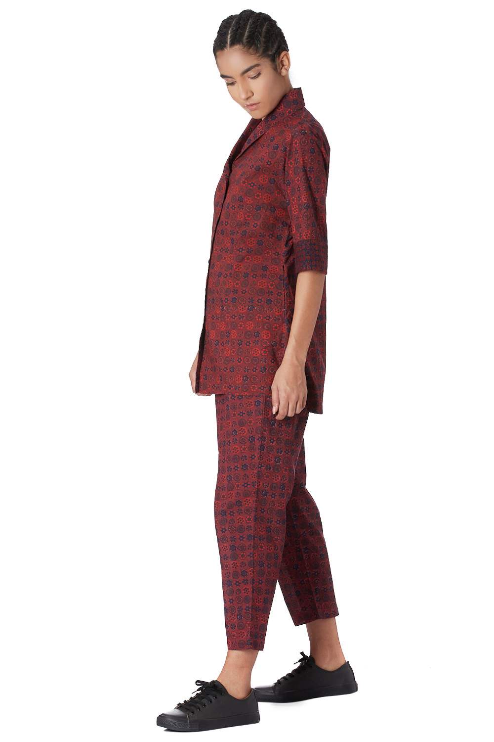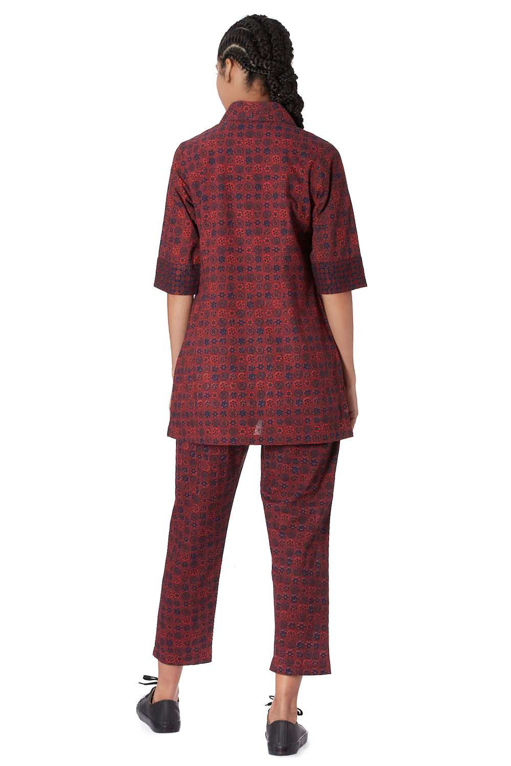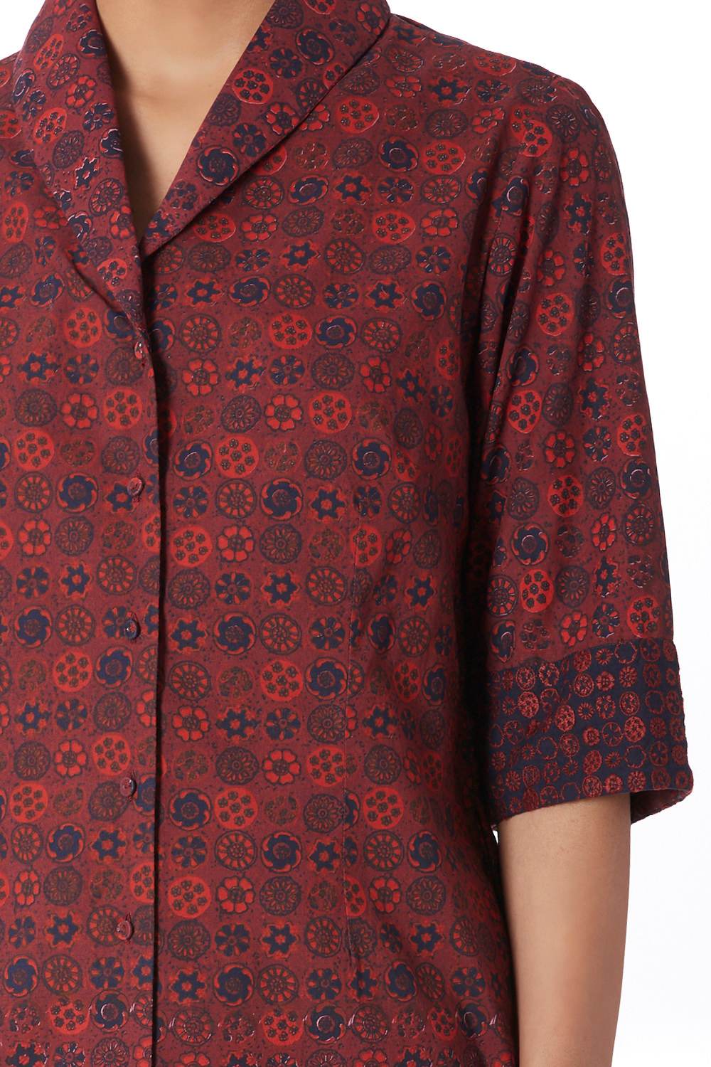 Button Down Shirt. Hand Printed All Over Coromandel Pattern With Specially Made Self Cover Fabric Buttons. Available In Two More Color Options.