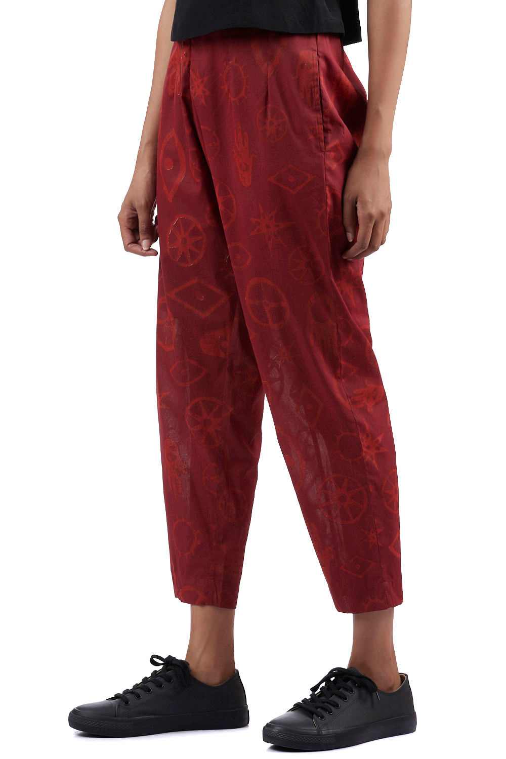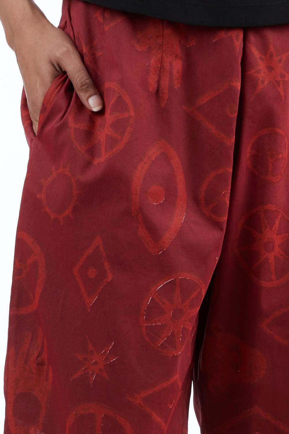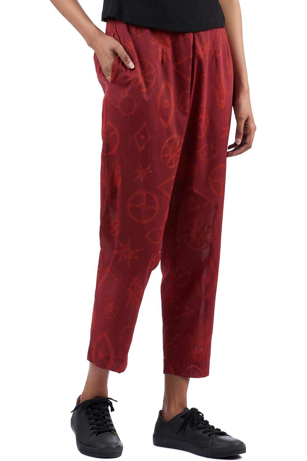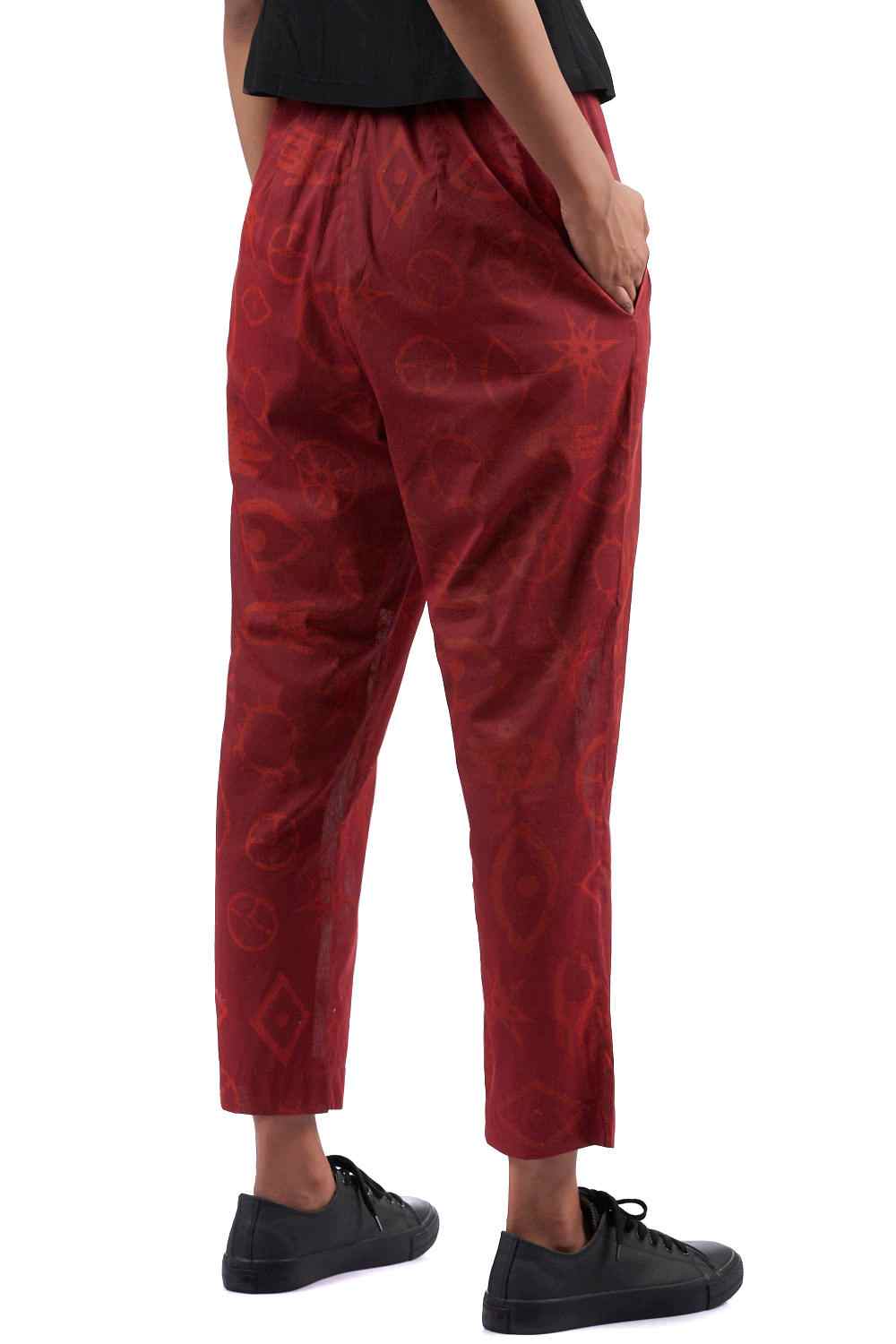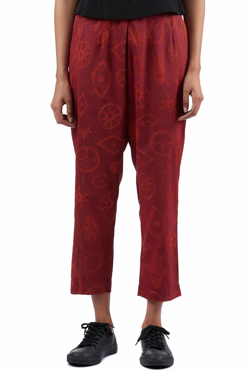 Straight Fit Cropped Pants. Hand Printed All Over Talisman Designs. Pair It With Our Printed Talisman Tunic For A Coordinated Look. Available In One More Color Option.