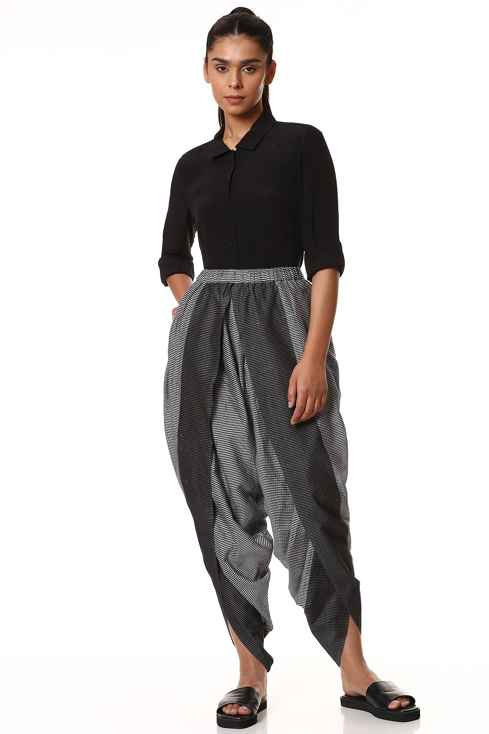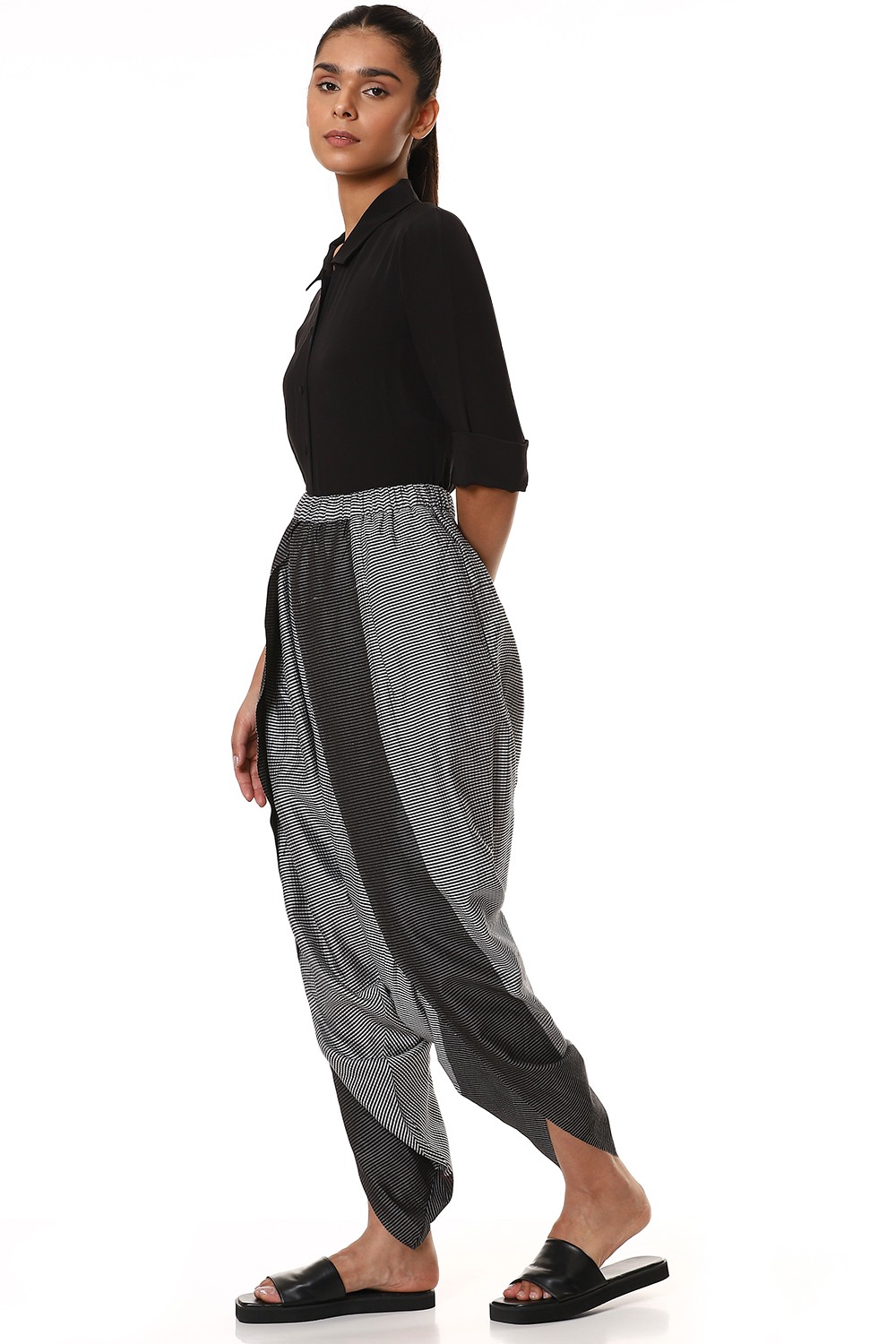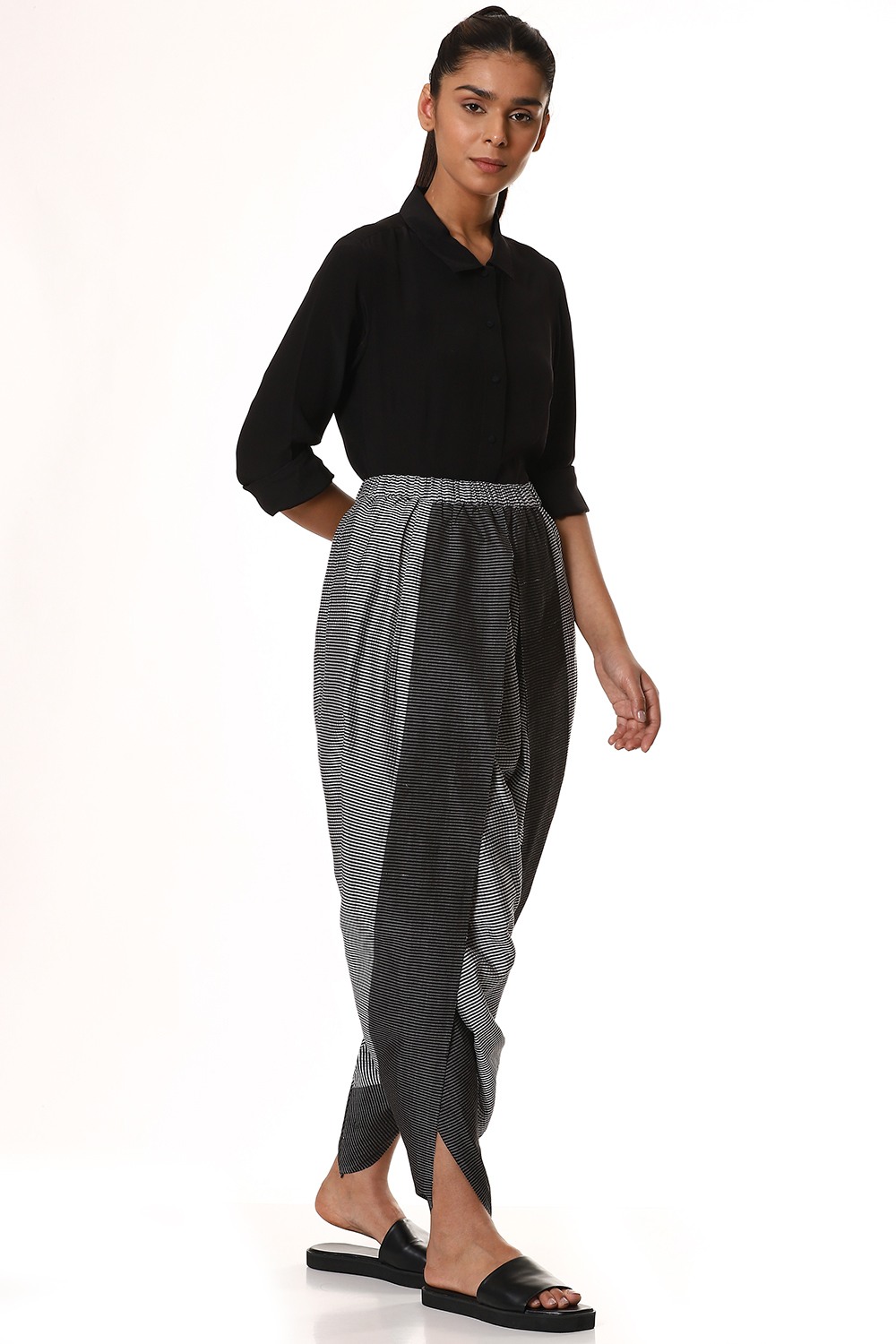Easy Fit Dhoti Pants. Features Allover Mini Check Pattern With Woven Borderâ Adjustable Waistband, Lightly Elasticated At The Back, With Additional Concealed Drawstrings In The Front For A Perfect Fit.