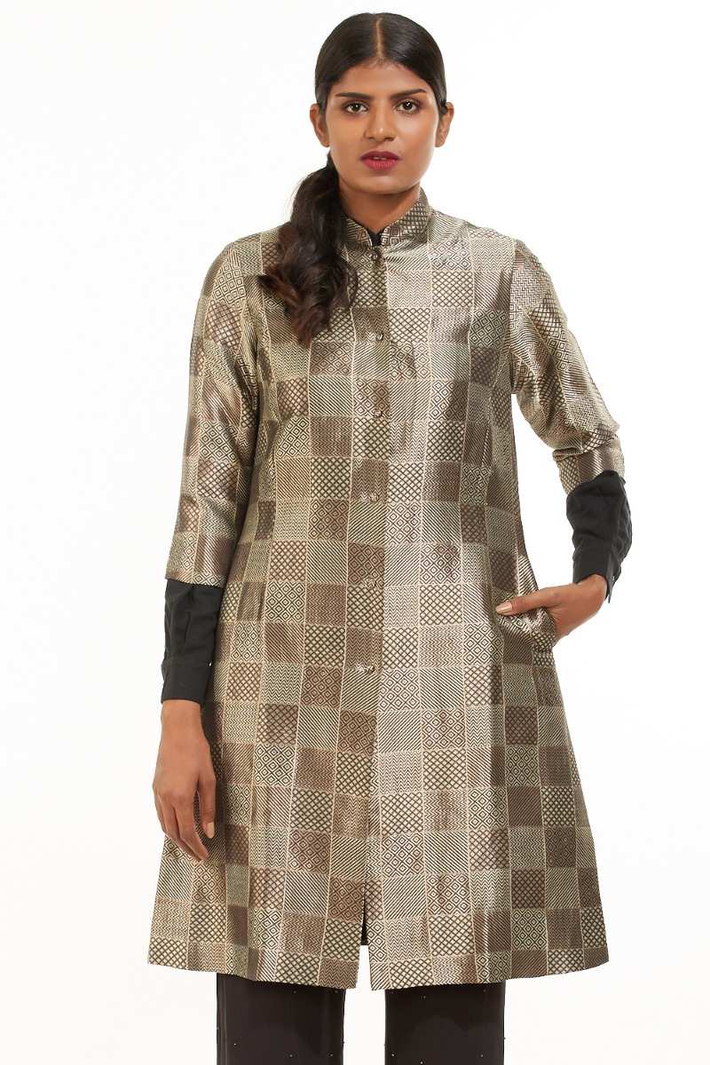 This Specially Designed Jacket Is From Our Limited Catwalk Collection, Showcased In August '18 At Lakme Fashion Week In Mumbai. Features All Over Box Pattern This Handwoven Brocade Fabric Is Specially Commissioned From Varanasi