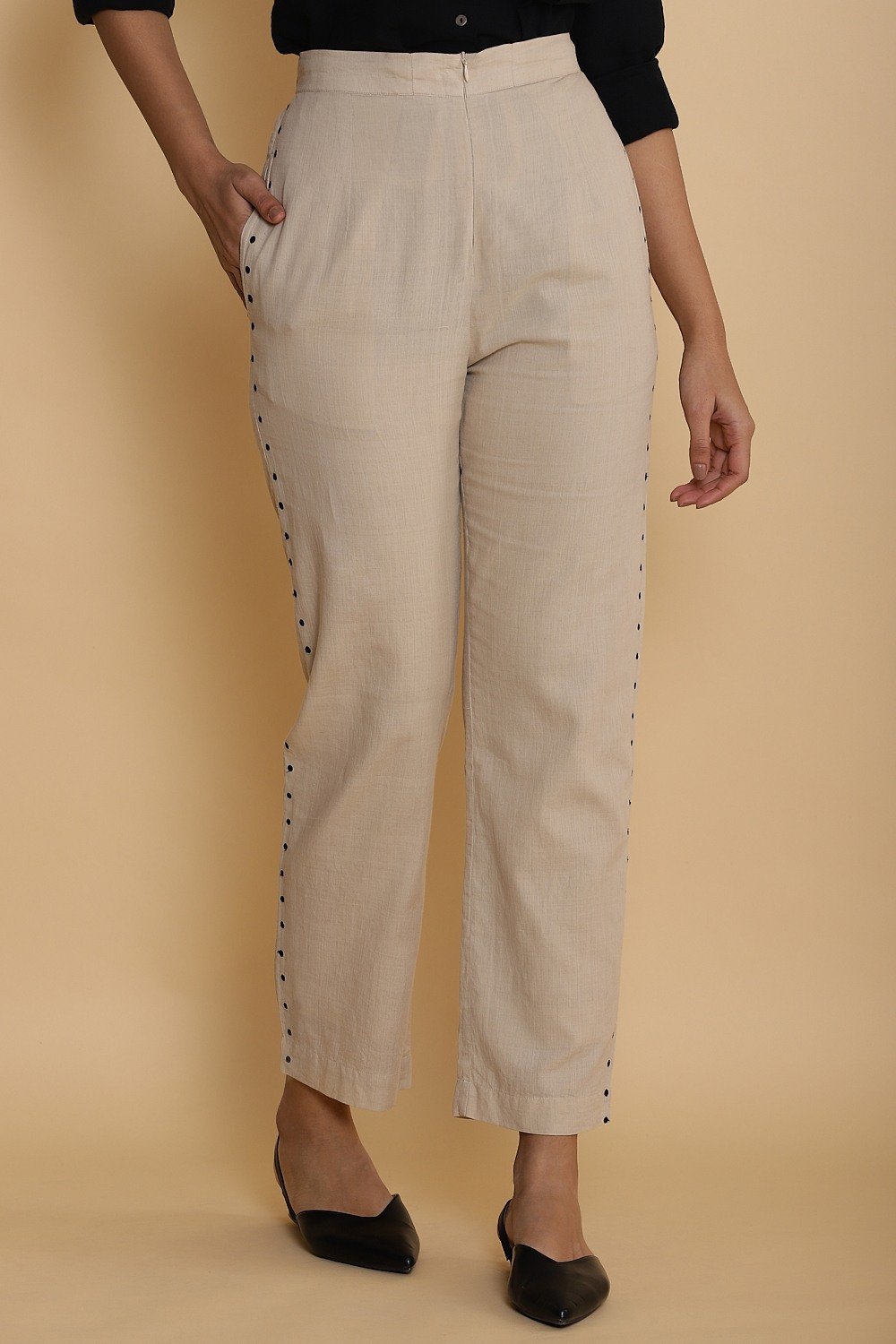 Handloom Woven Cotton With Handblock Printed Engineered Dots.