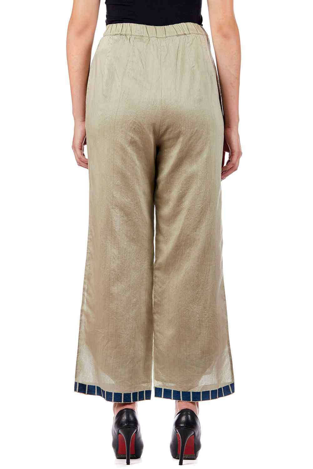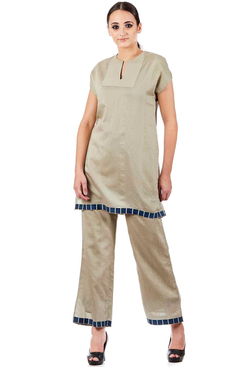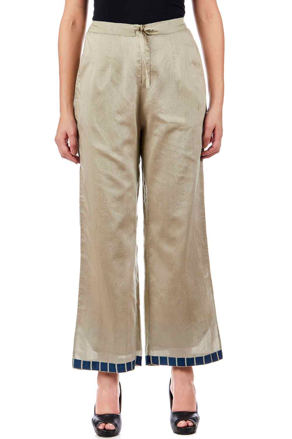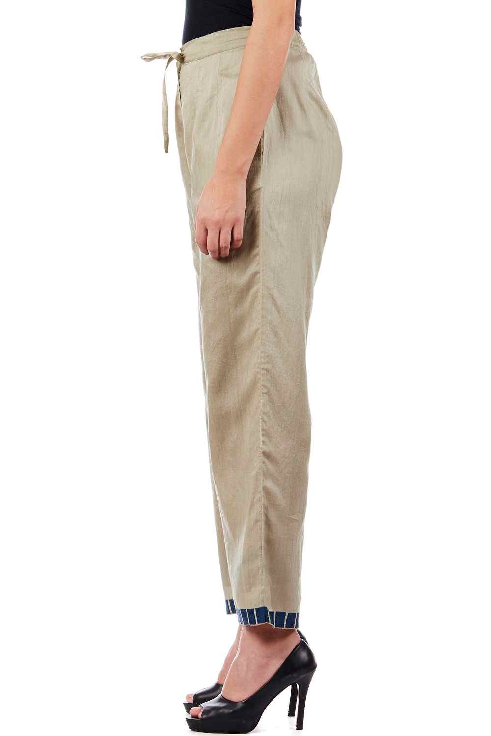 Straight Fit Pants. Handwoven Cotton Silk Maheshwar With Exclusively Handwoven Border. Available In Two More Colour Options. Pair It With Maheshwar Jacket And Short Kurta From Our Collection For A Crisp Coordinated Workwear Look.