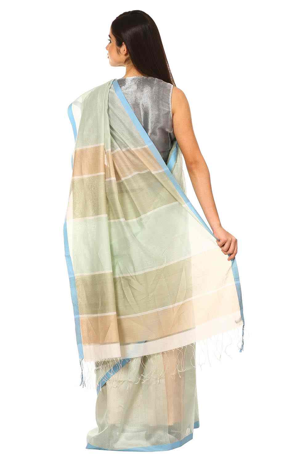 Handwoven Maheshwari Silk Cotton Saree. Exclusively Handwoven Silk Cotton Maheshwari Saree With All Over Woven Stripes
